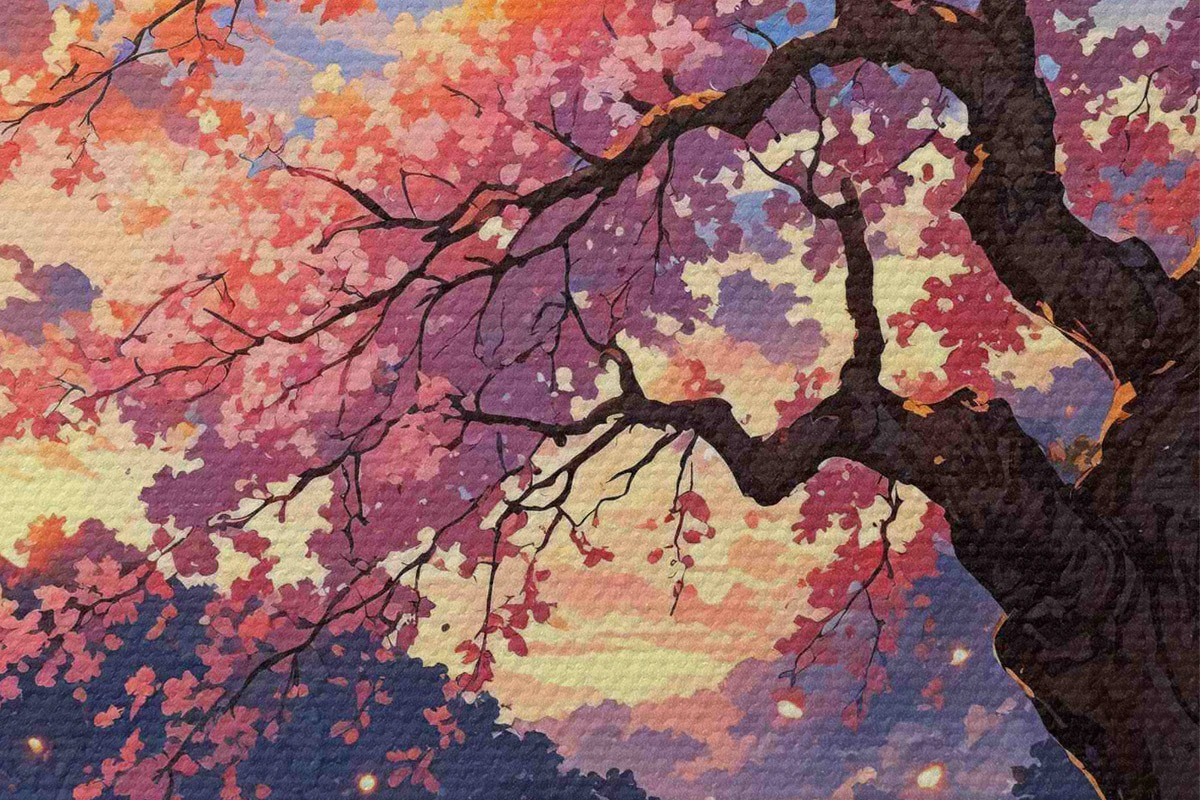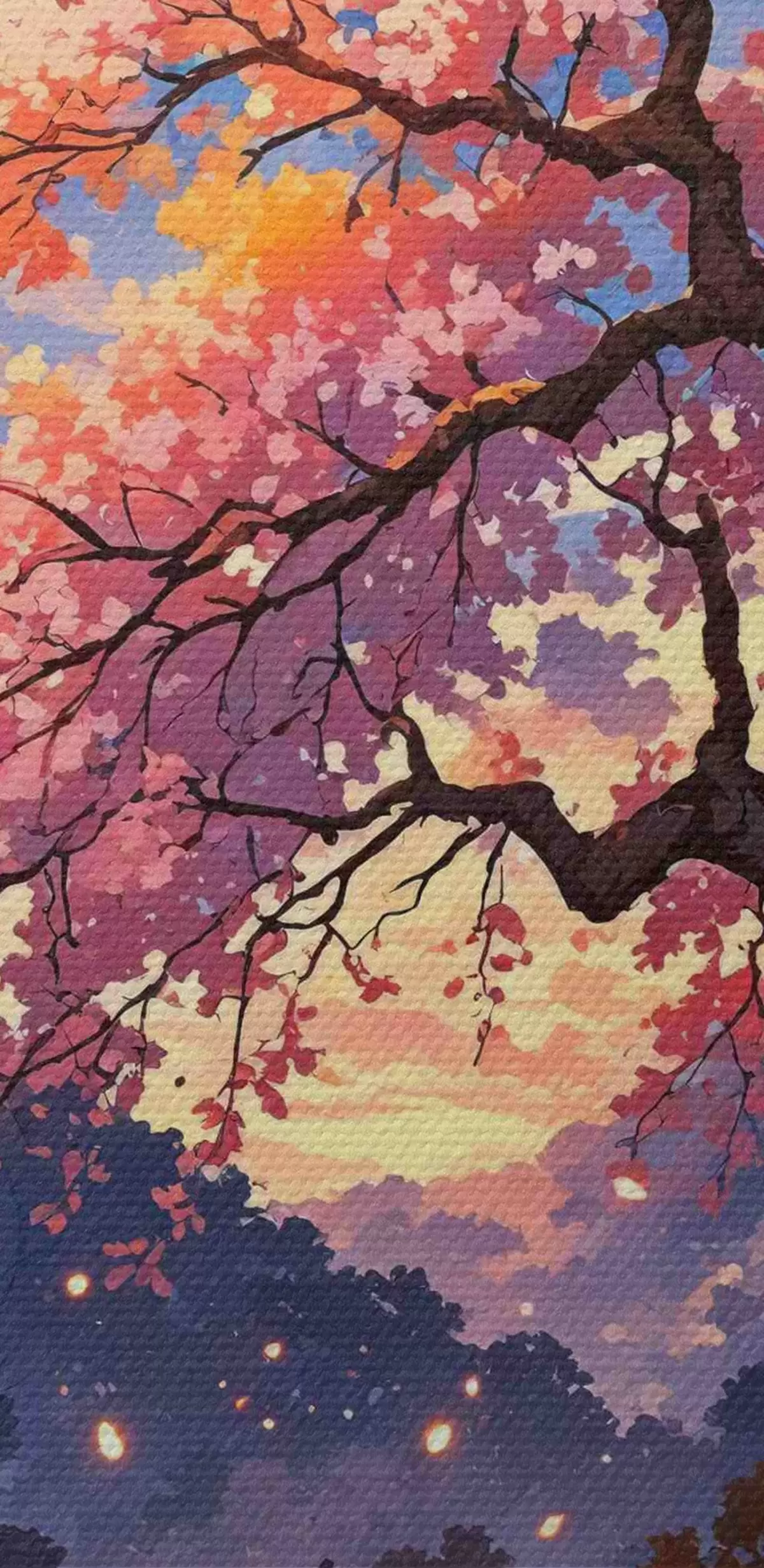 Bild Ein Baum mit rosa Blüten, durch den ein Fluss fließt Nr r38645