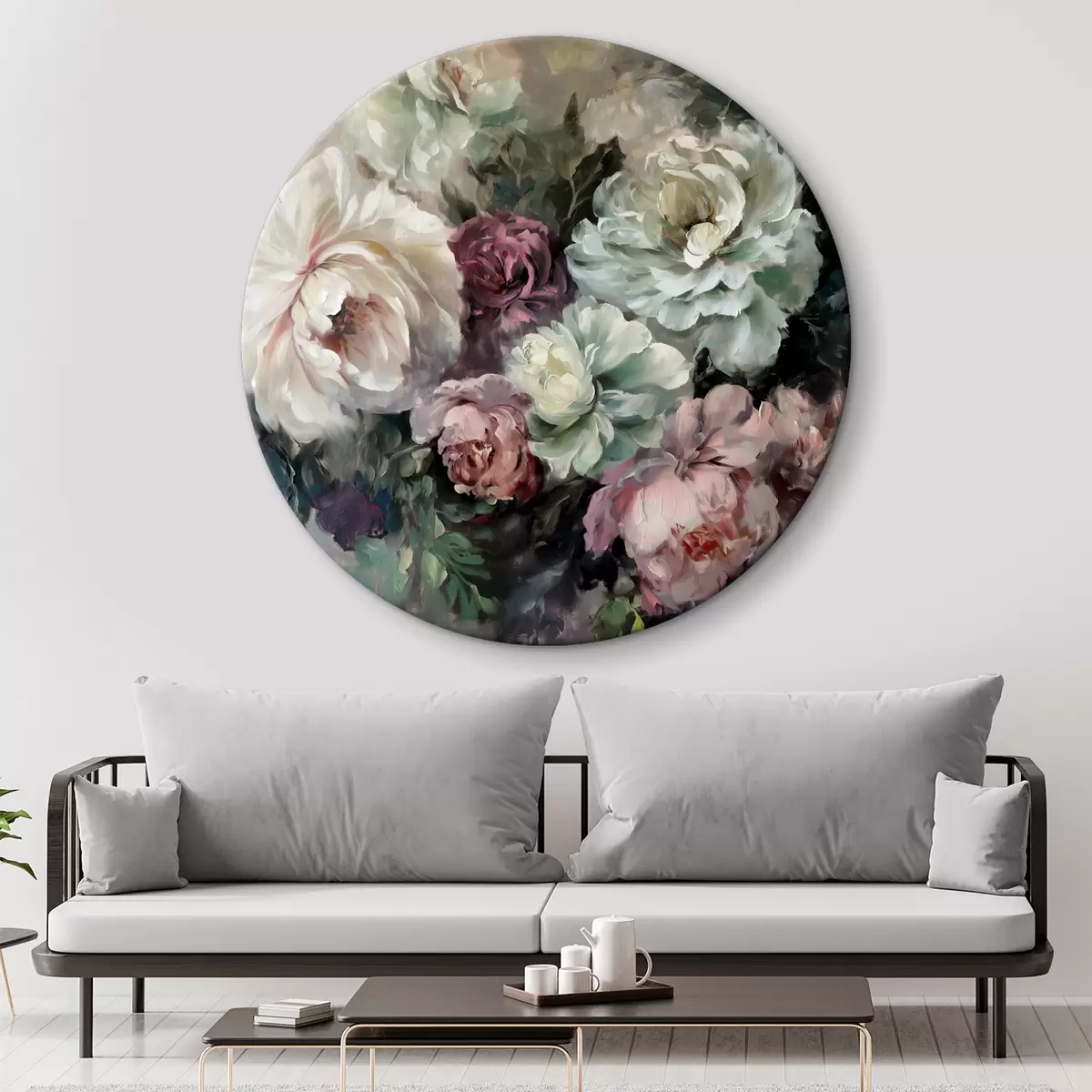 Runde Gemälde Ein Haufen bunter Pfingstrosen r38646