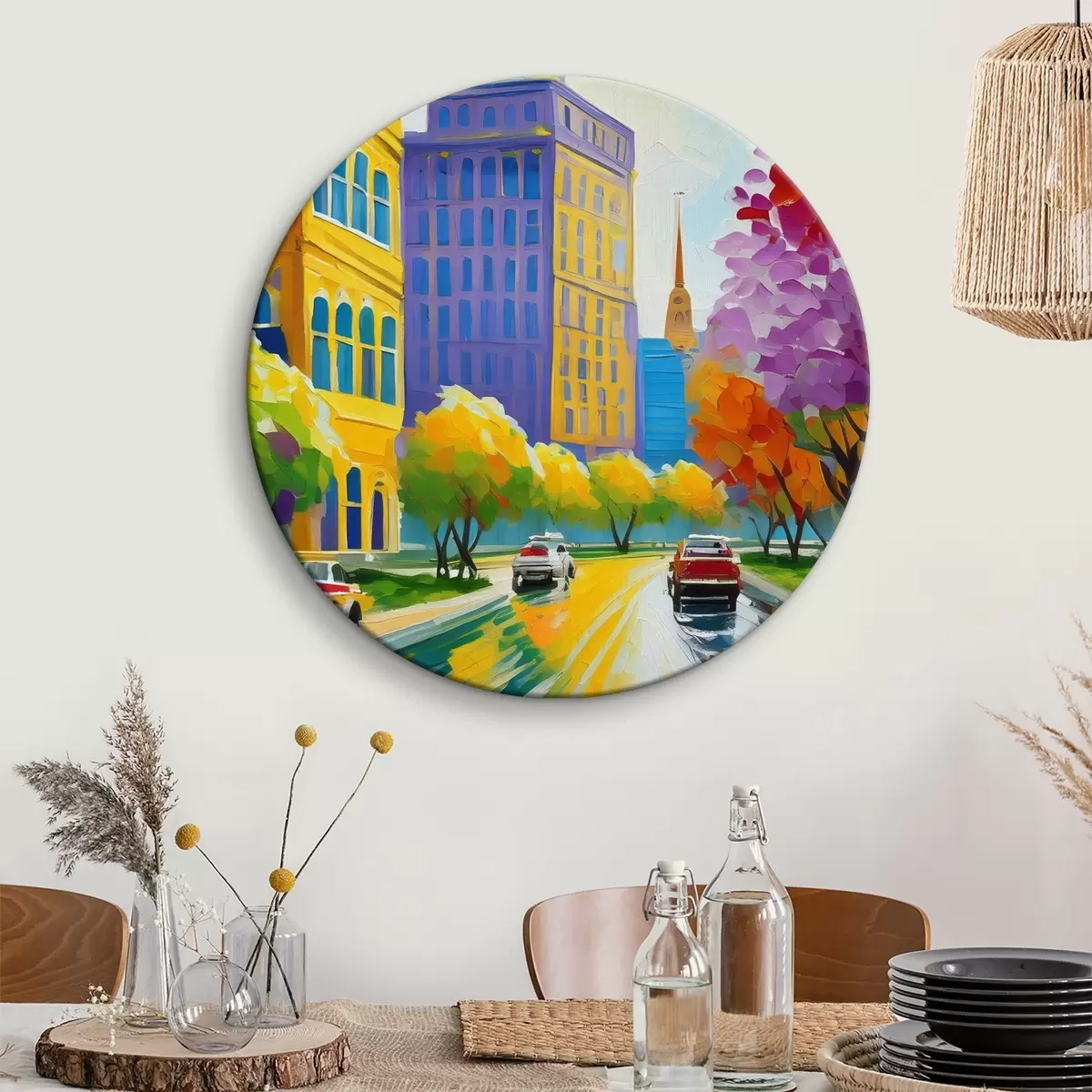 Runde Gemälde Bild einer Stadtstraße mit Autos und Bäumen r38657
