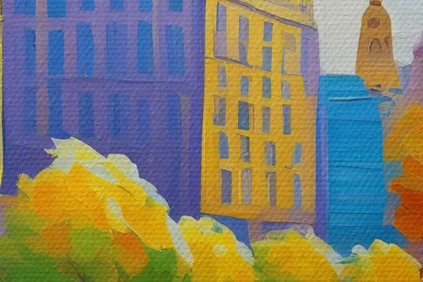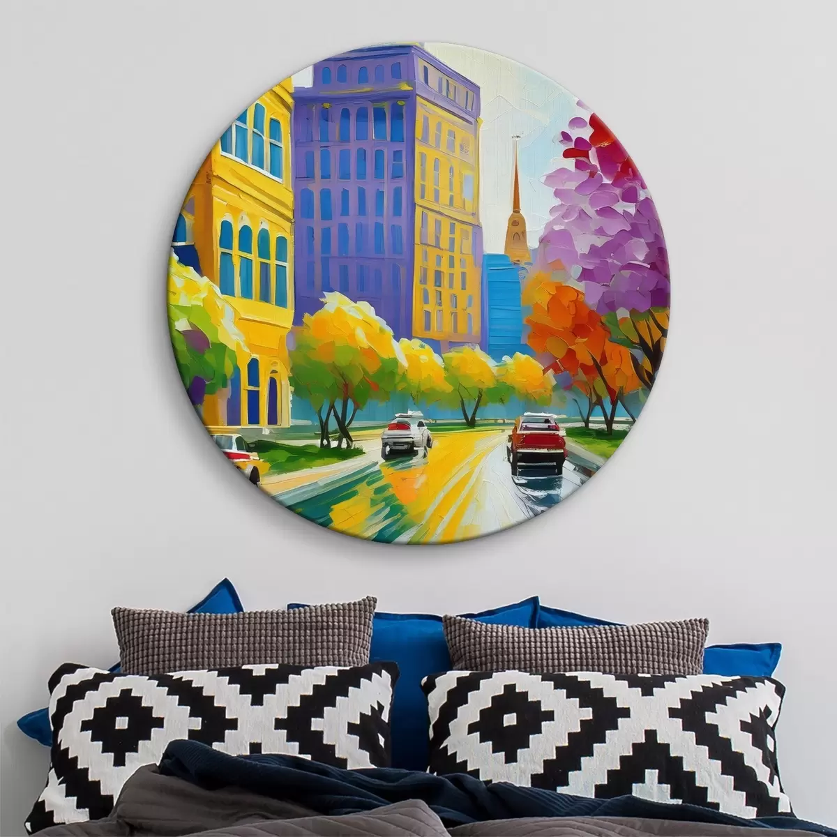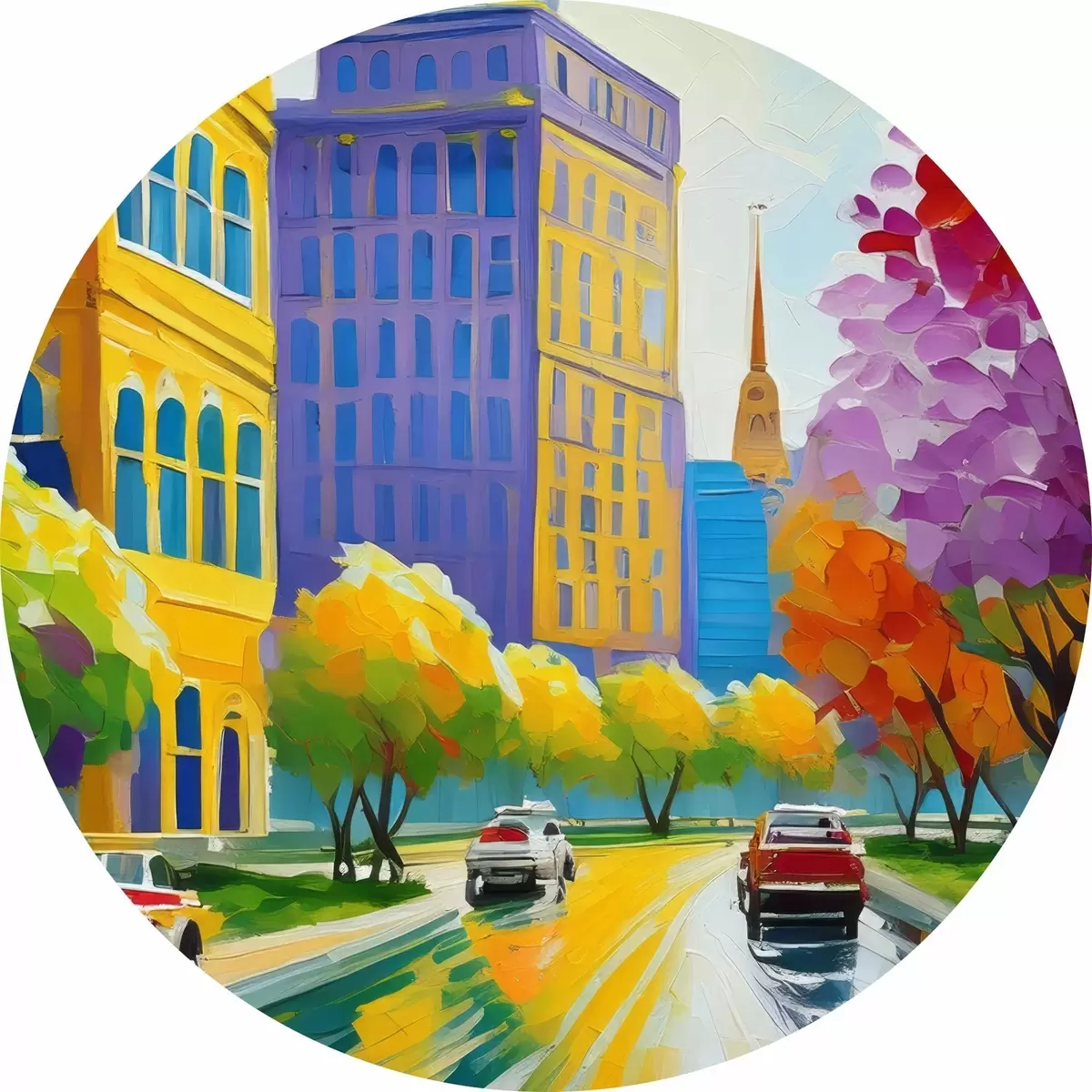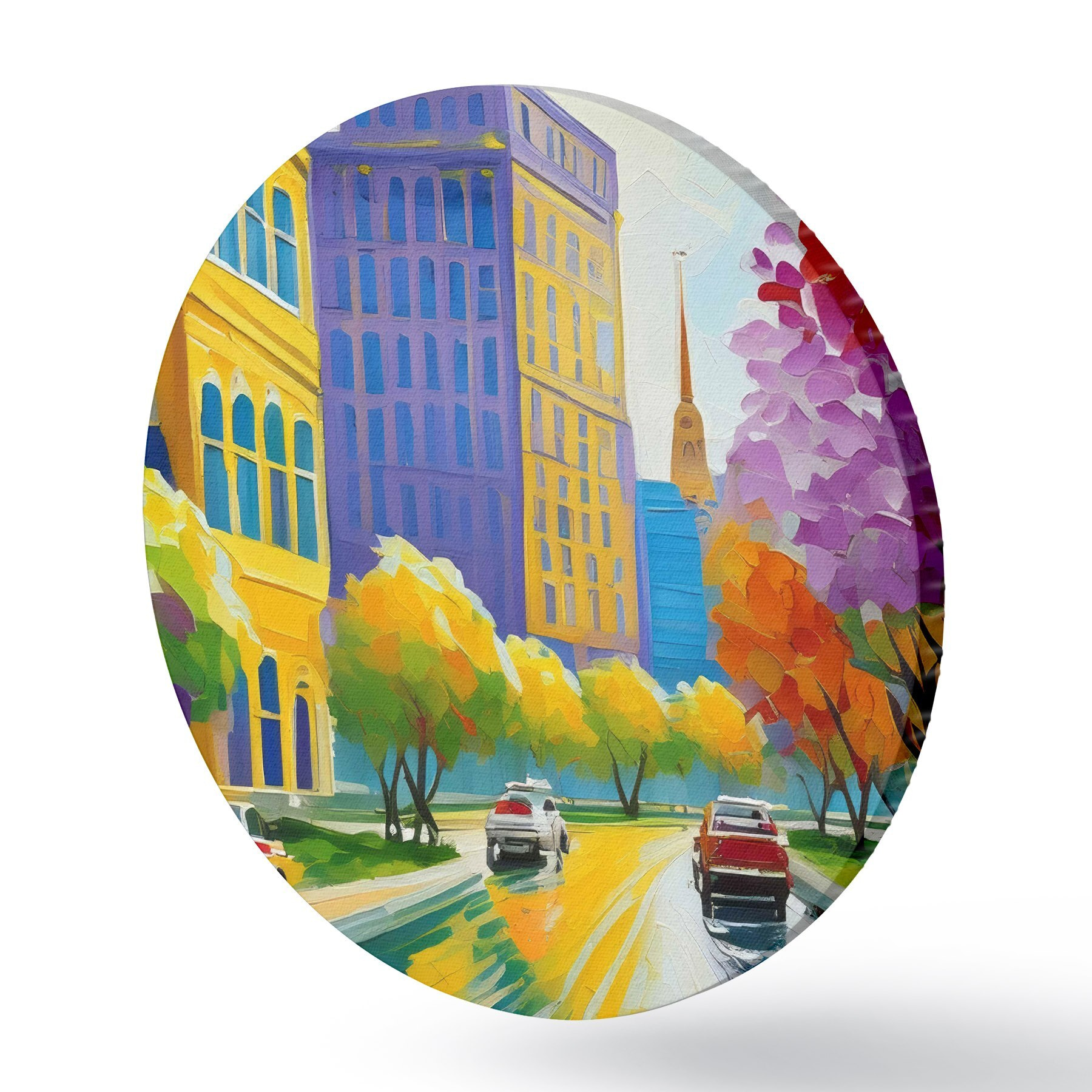Runde Gemälde Bild einer Stadtstraße mit Autos und Bäumen r38657