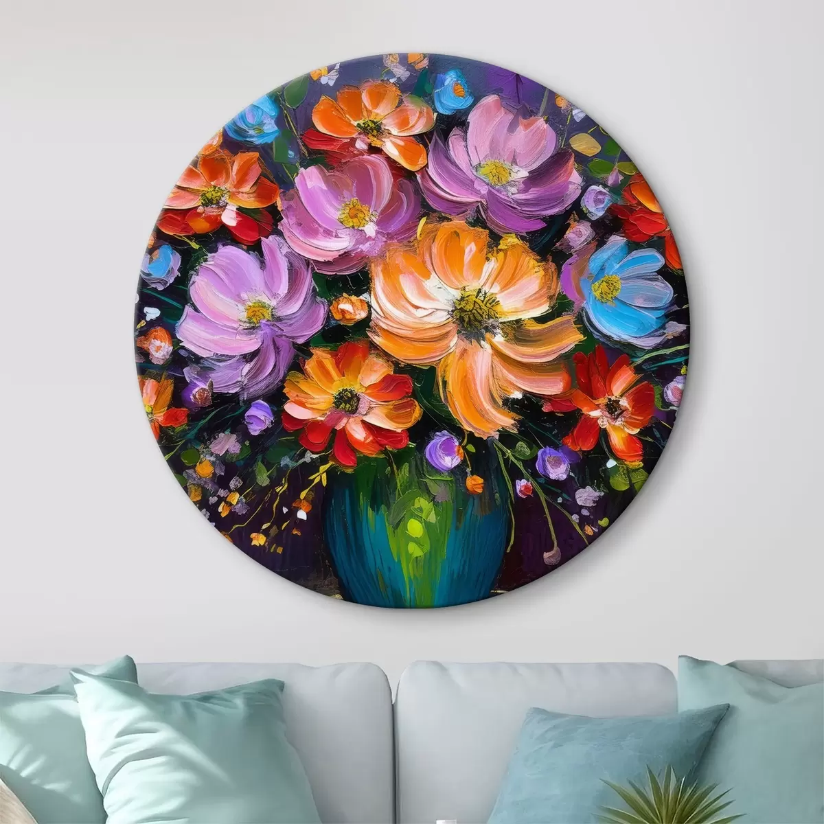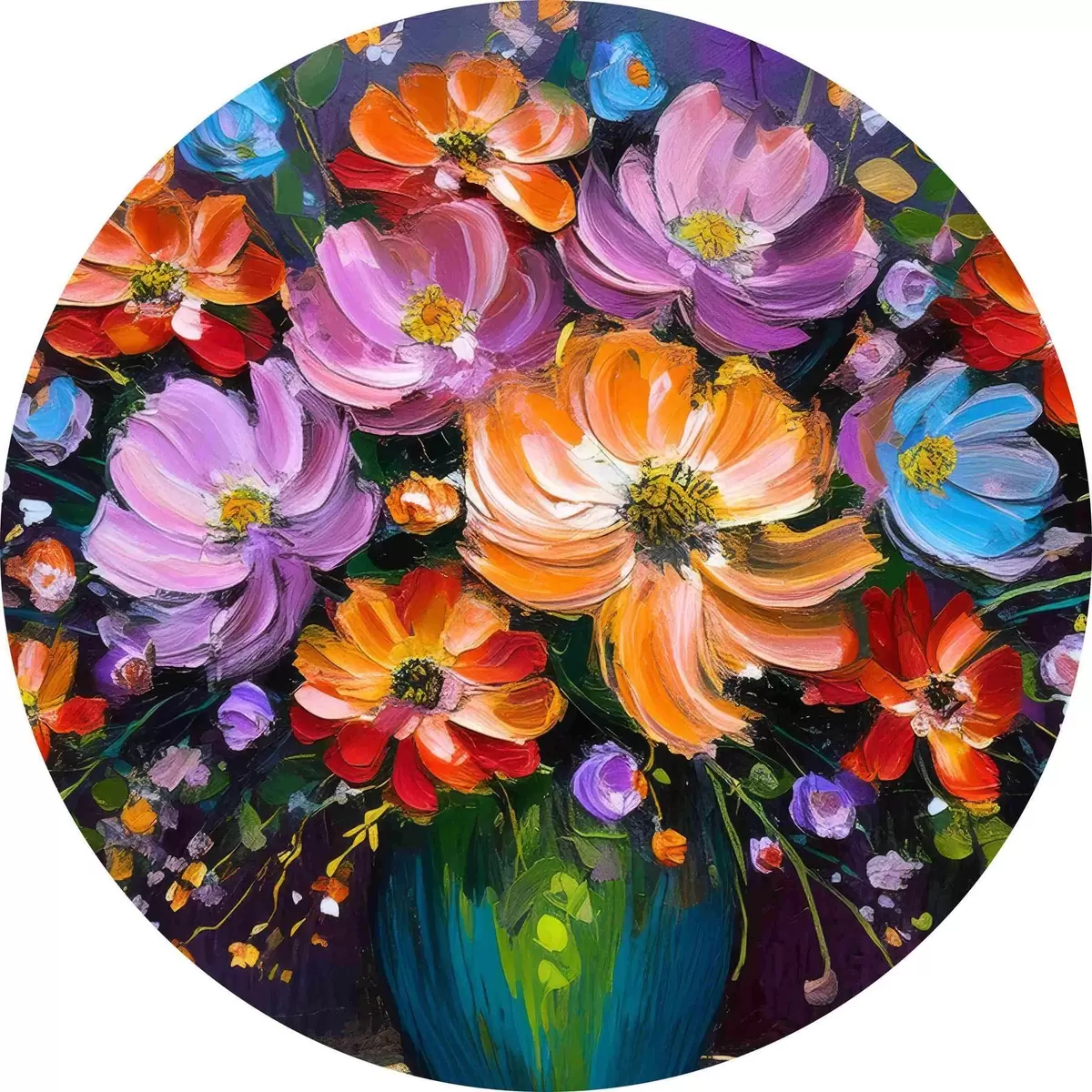 Runde Gemälde Malen von Blumen in einer Vase r38660