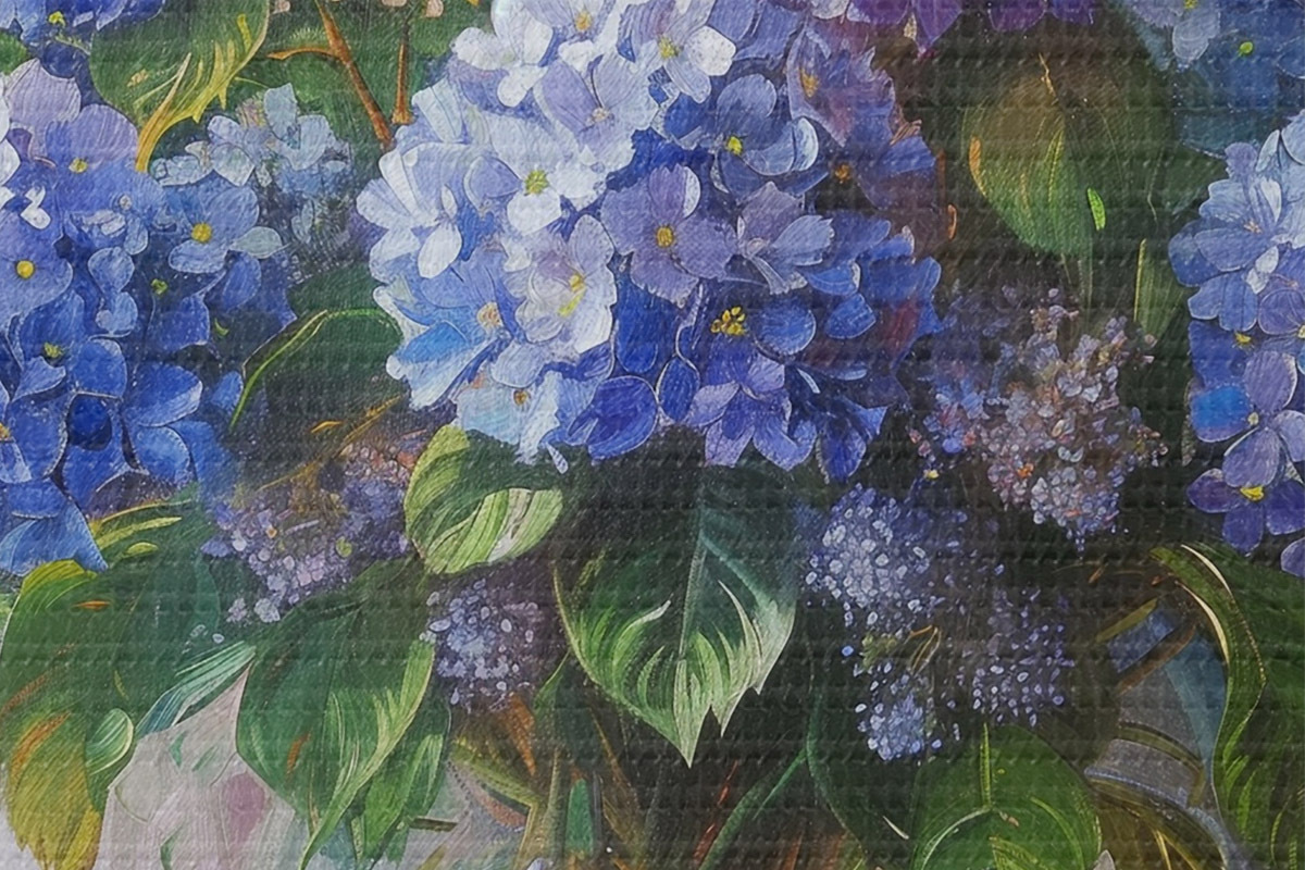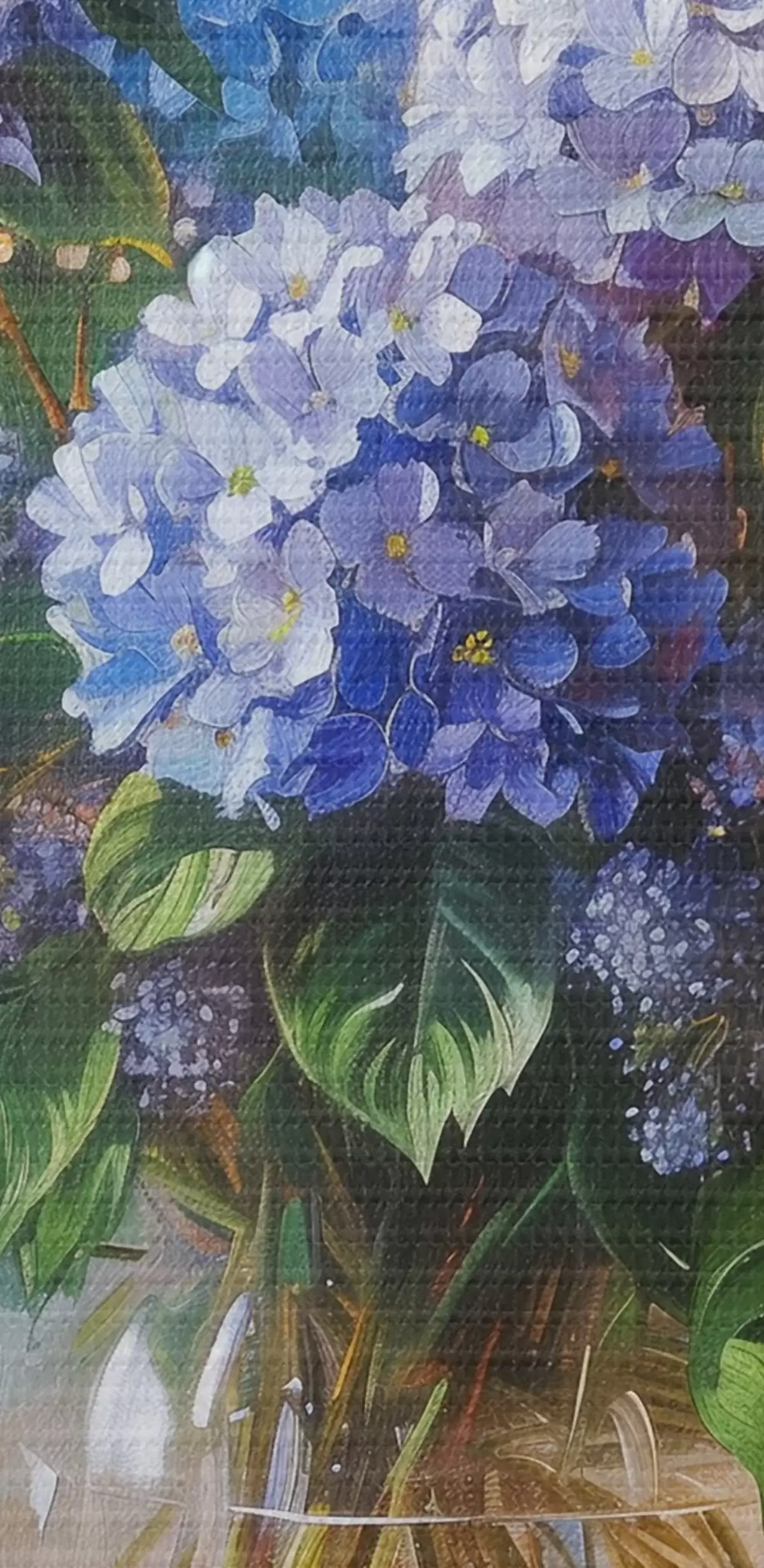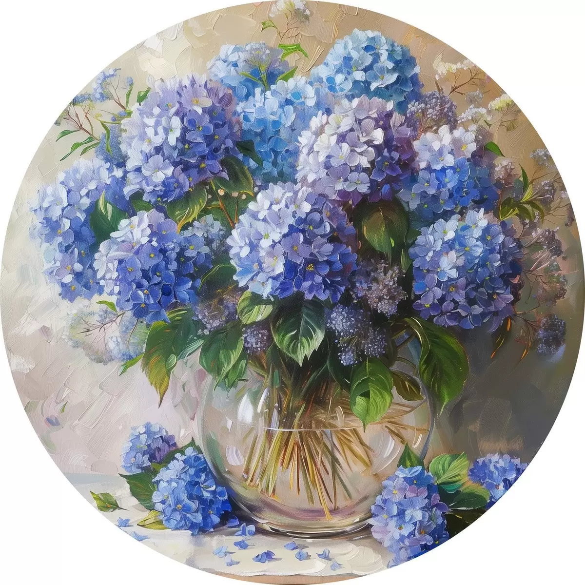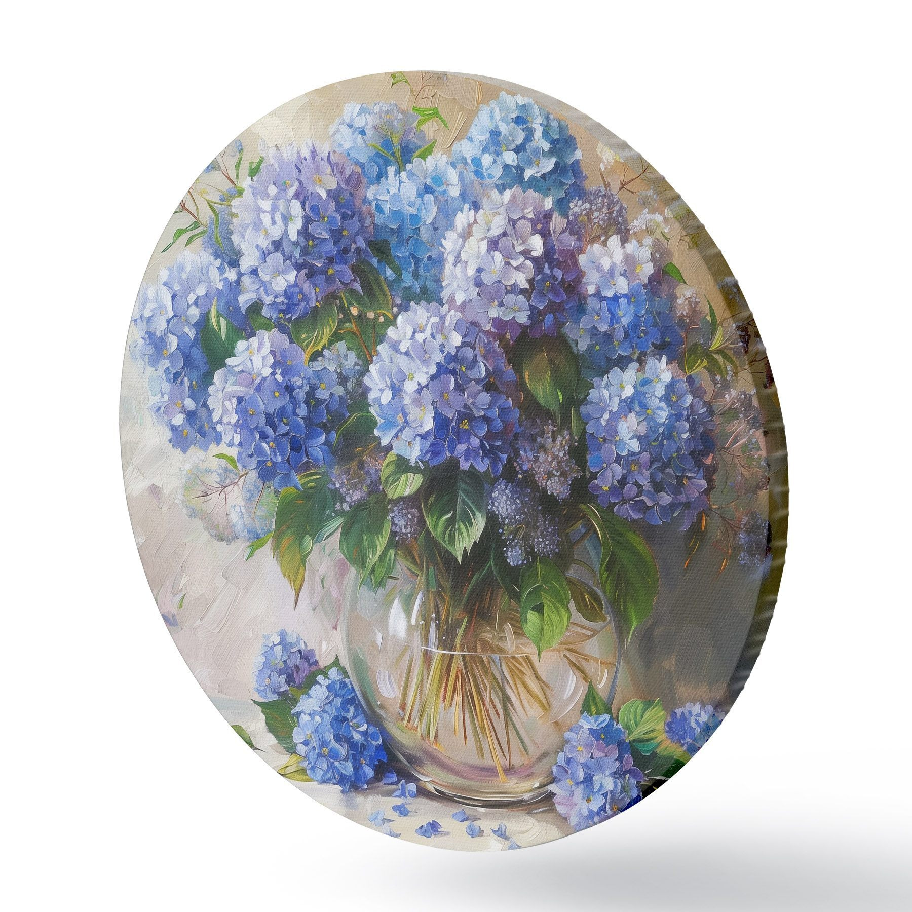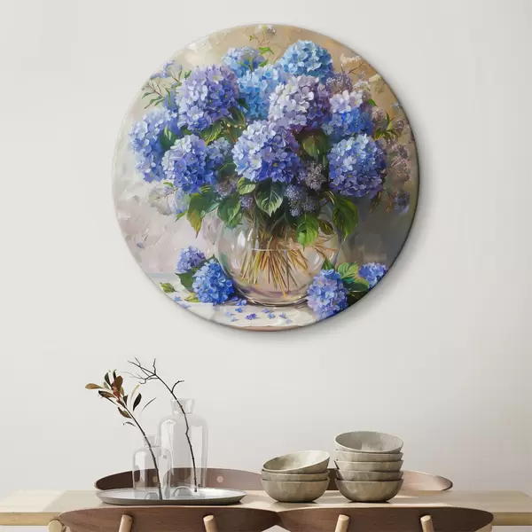 Runde Gemälde Blaue Hortensien auf dem Tisch r38709