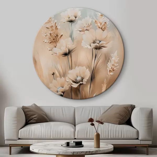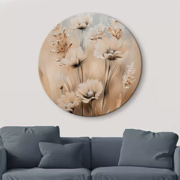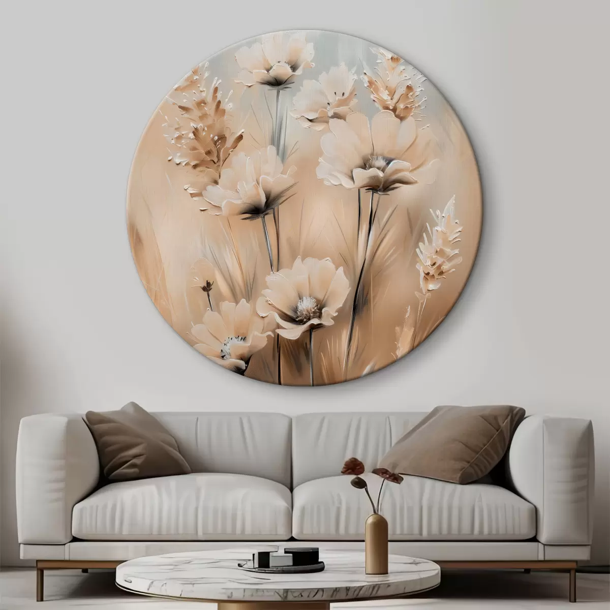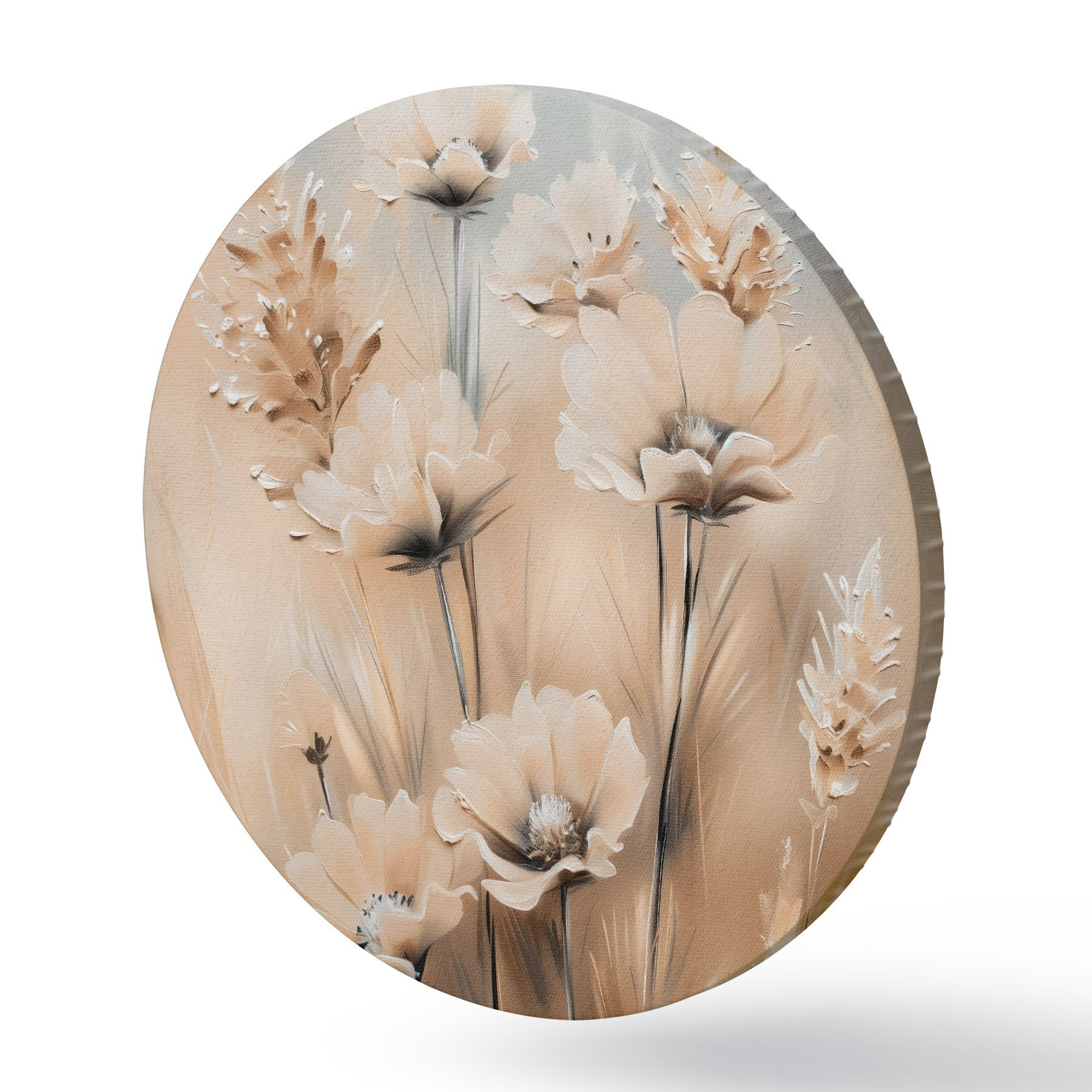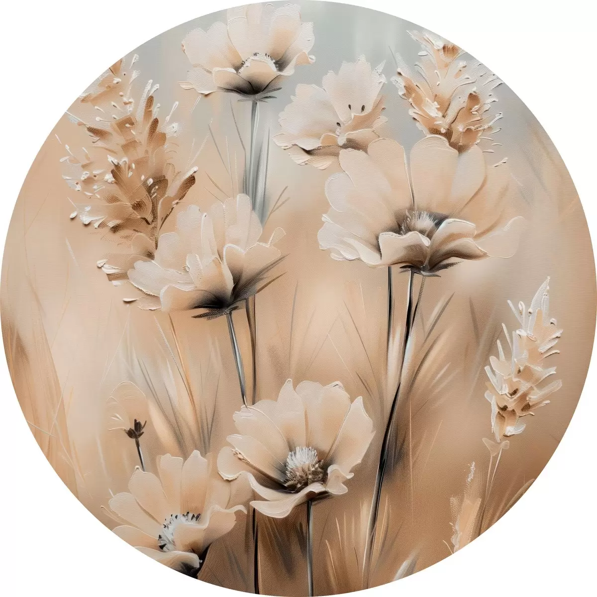 Runde Gemälde Blumen auf dem Feld in Beigetönen r38720