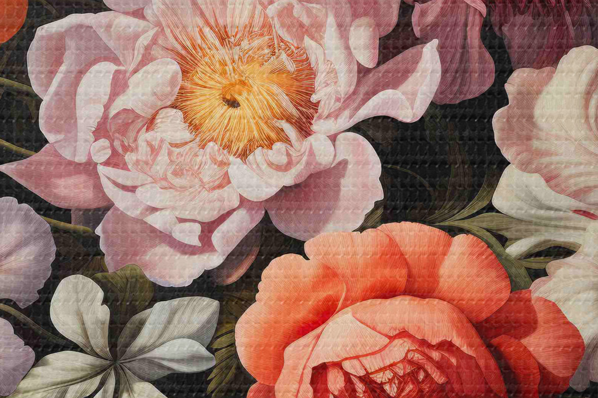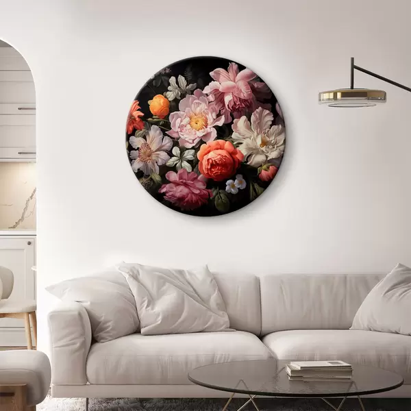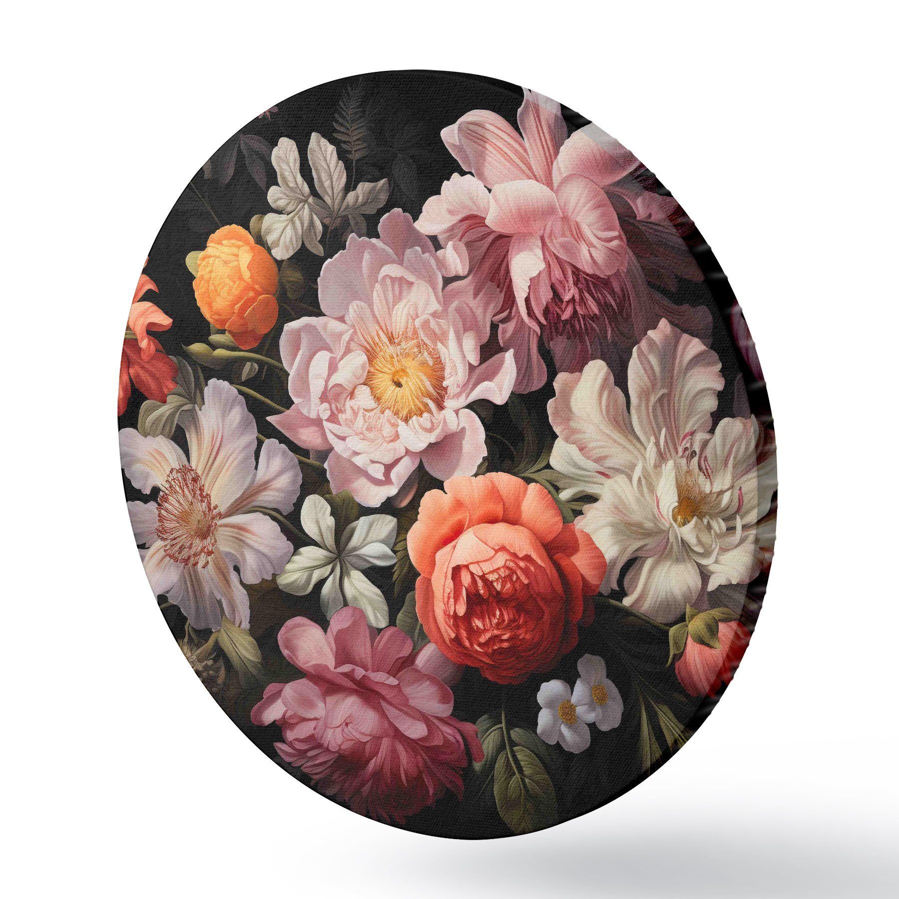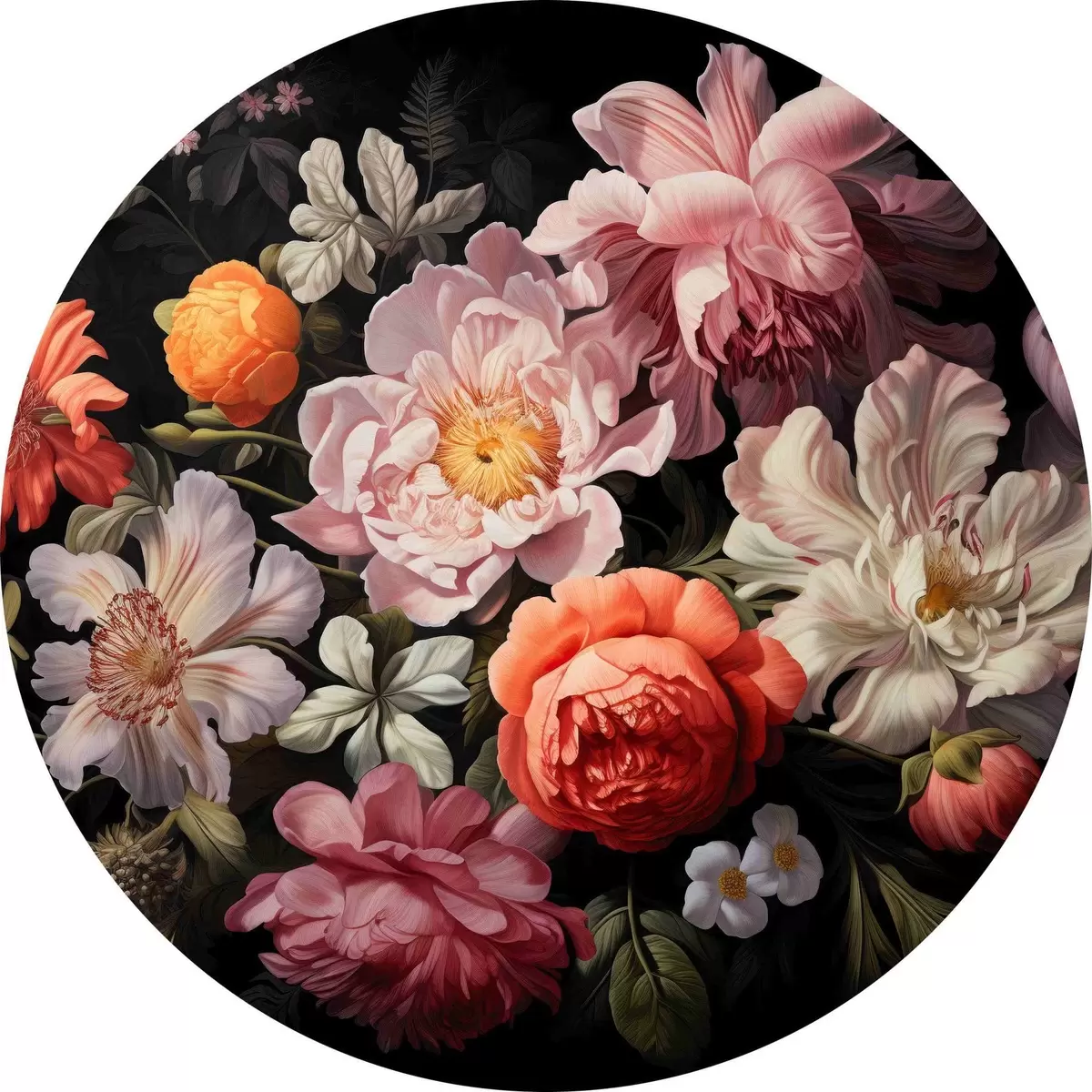 Runde Gemälde Bild von Blumen auf einem schwarzen Hintergrund r38721