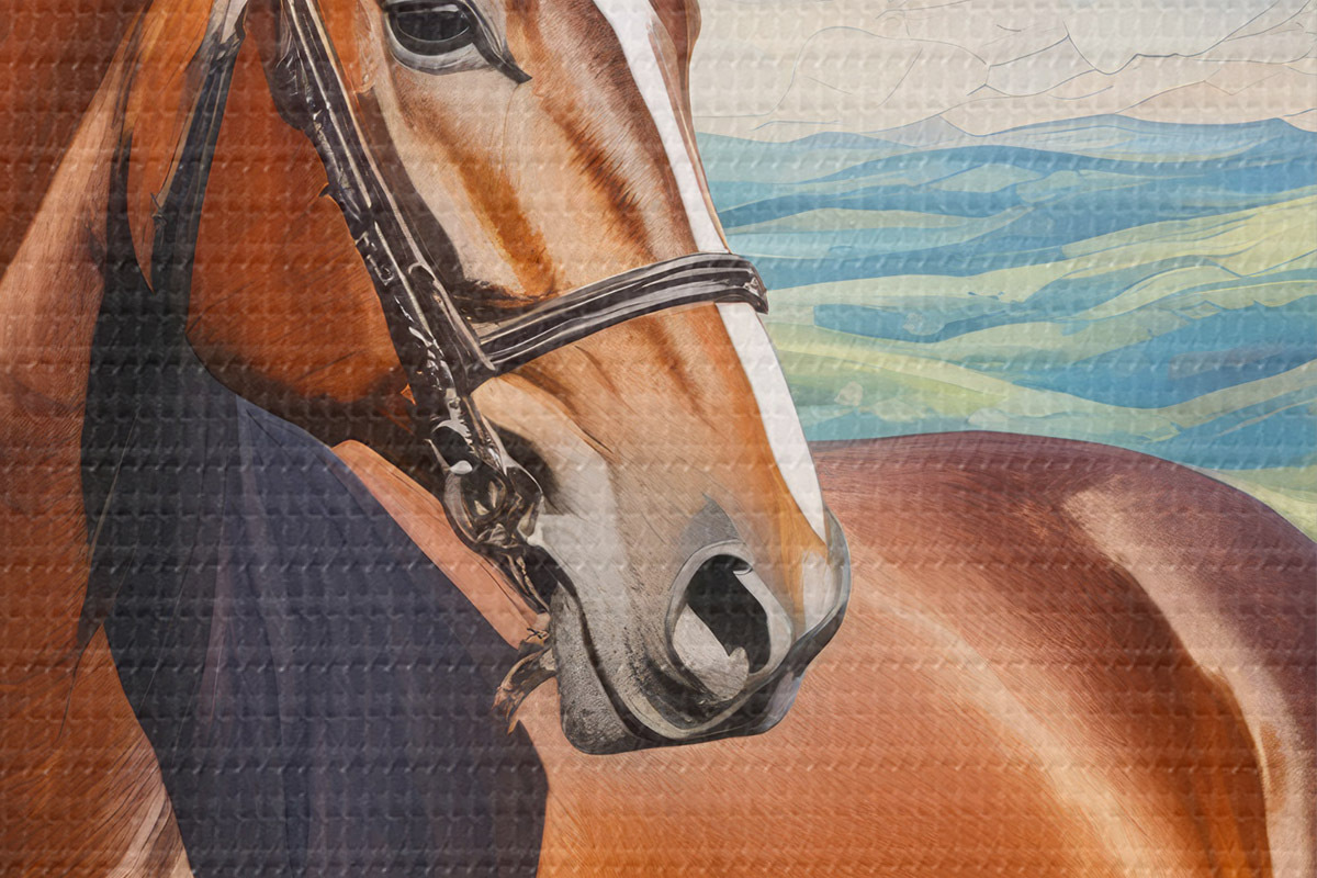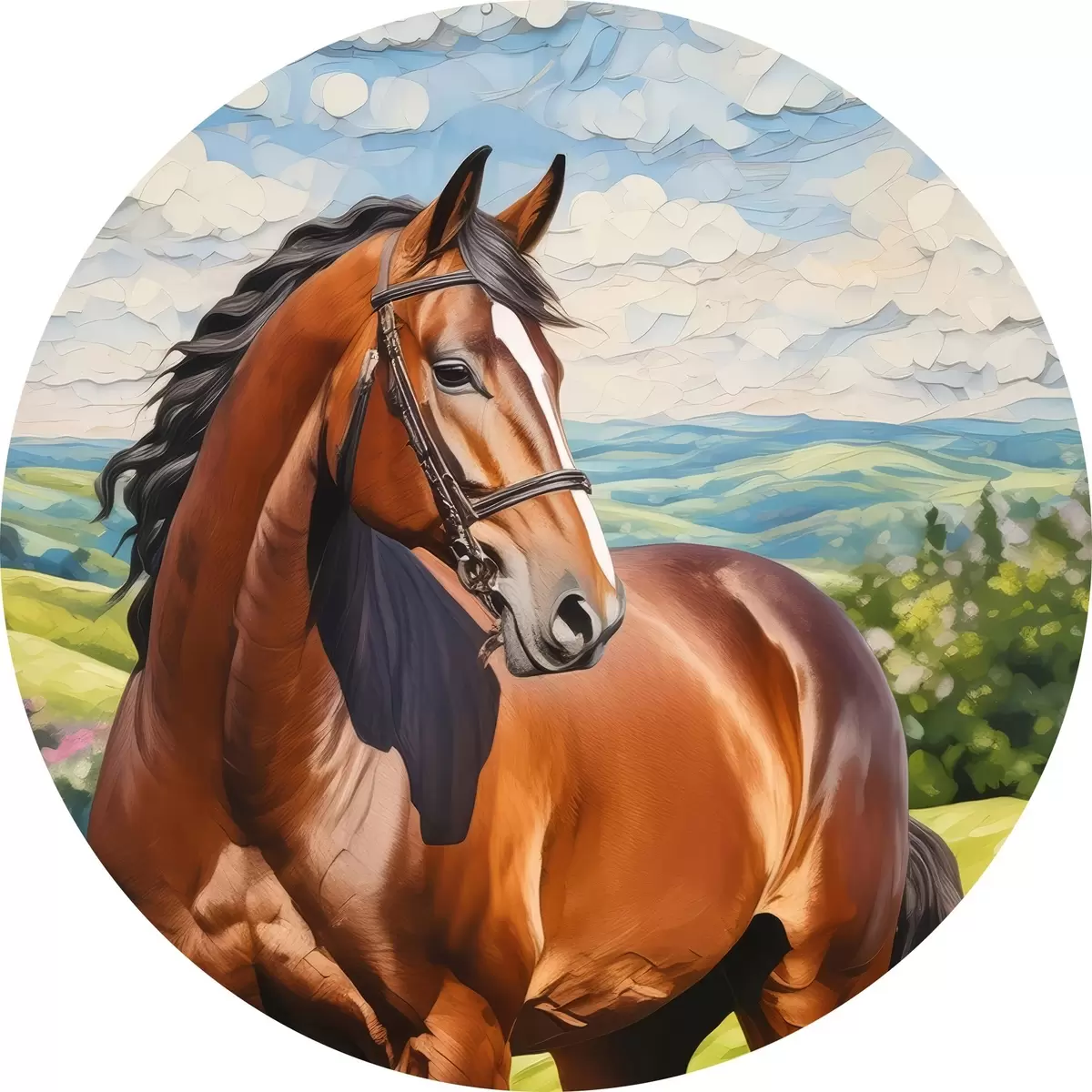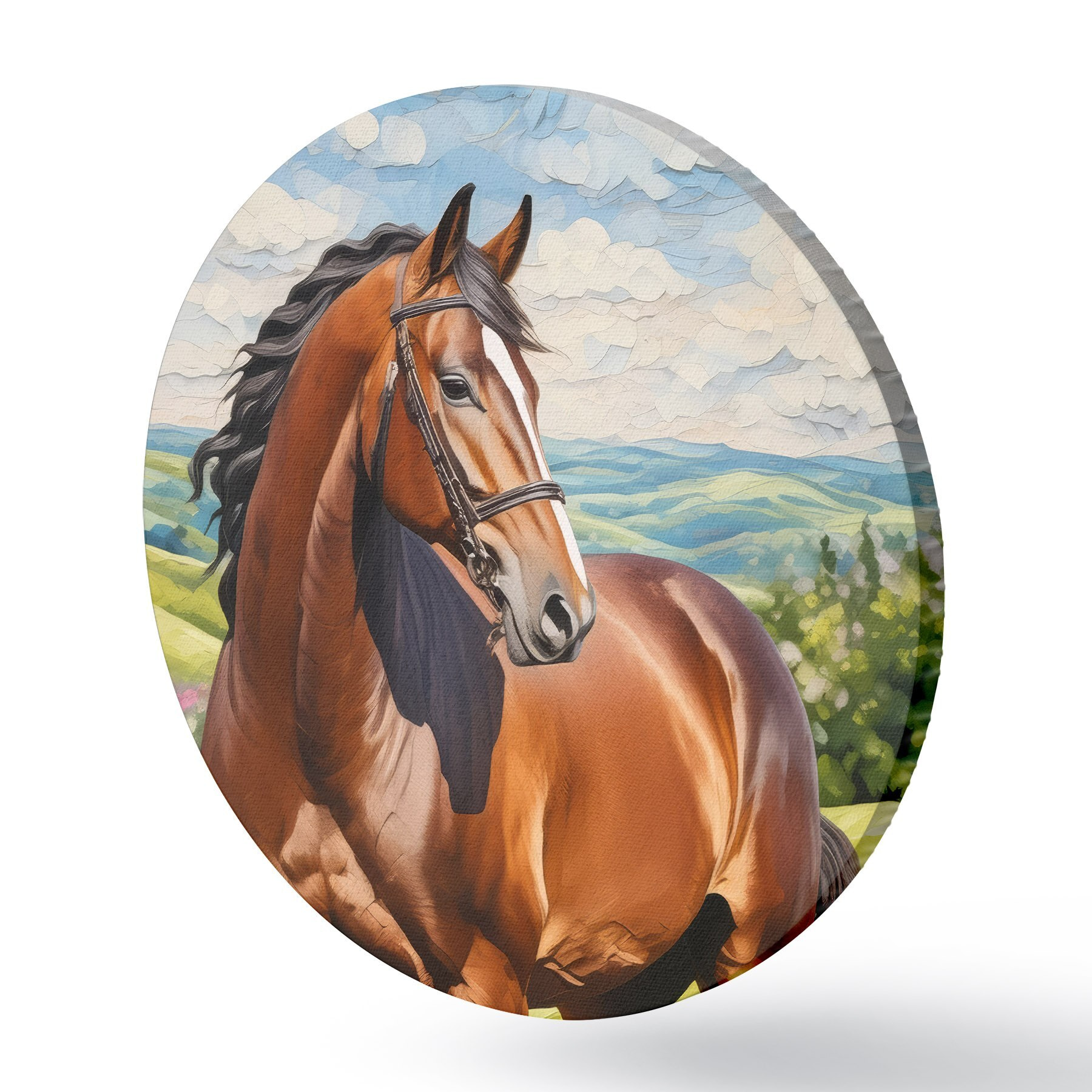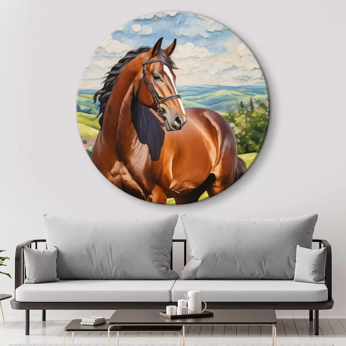 Runde Gemälde Schönes Pferd auf dem Rasen, blauer Himmel r38727