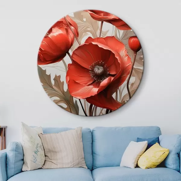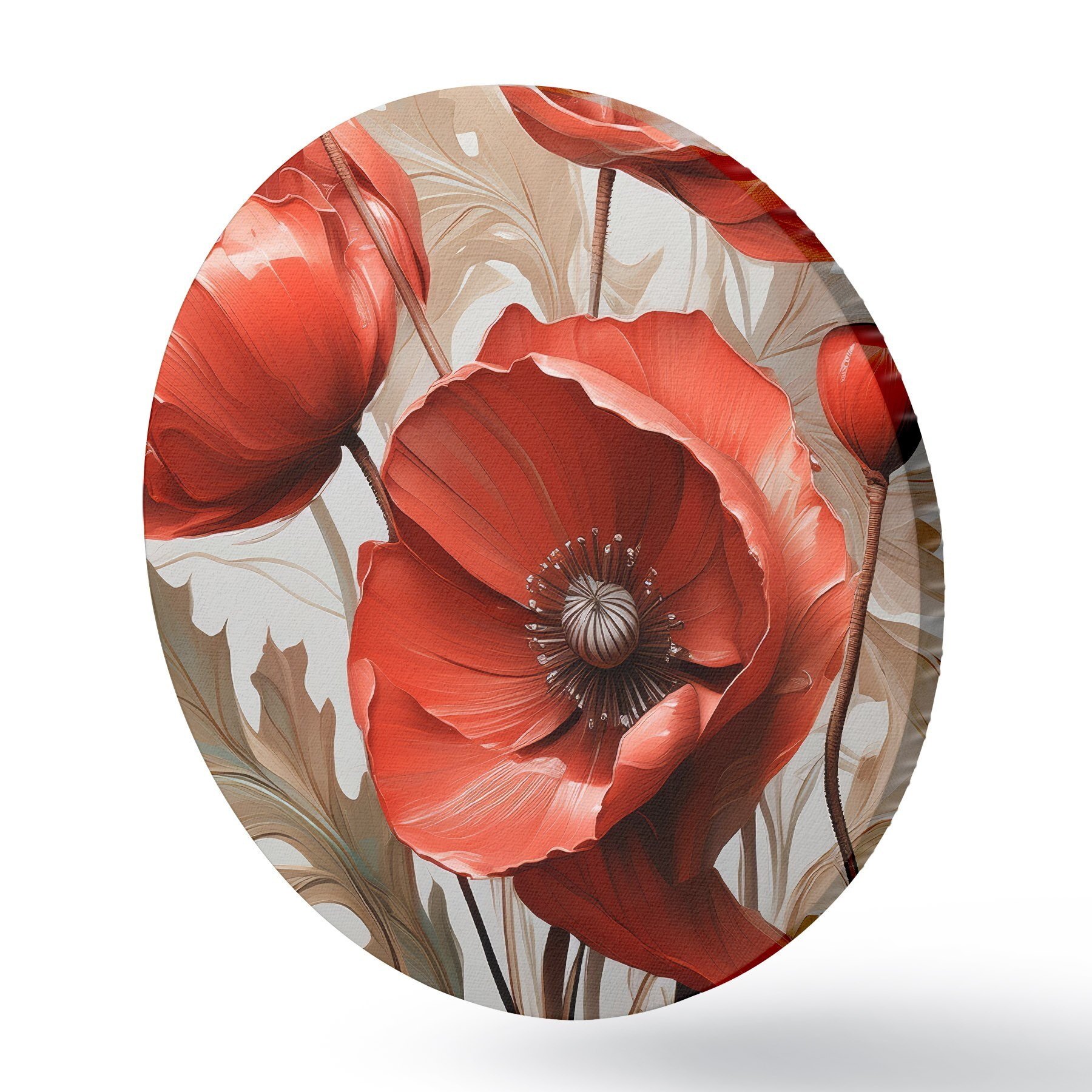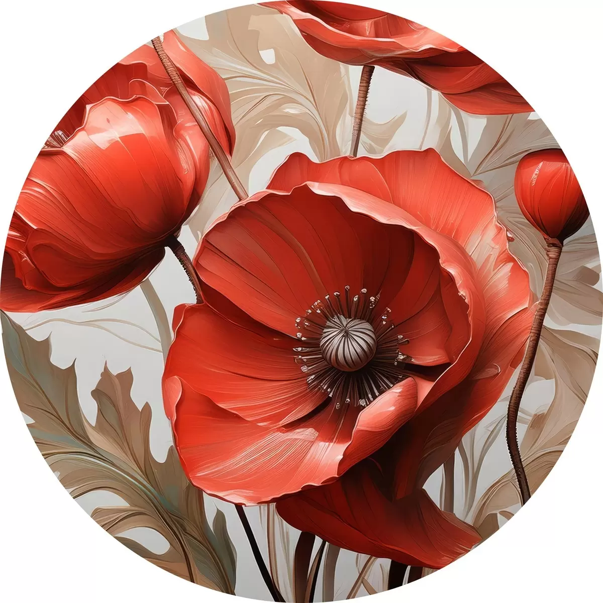 Runde Gemälde Große rote Mohnblumen mit Ölfarben r38732