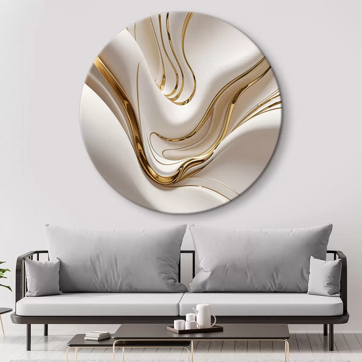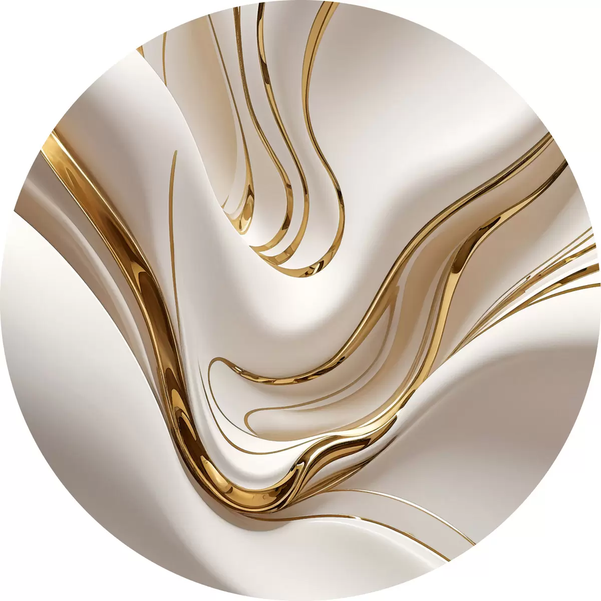 Runde Gemälde Fließende weiße abstrakte Formen, die an flüssiges oder geschmolzenes Metall erinnern, dynamische Komposition r38767