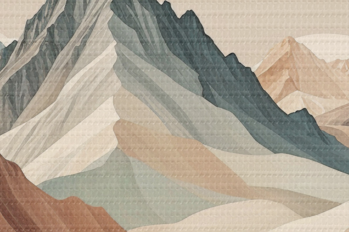 Bild Minimalistische Berglandschaft mit felsigen Gipfeln und sanften Hügeln in Beige Nr r38770