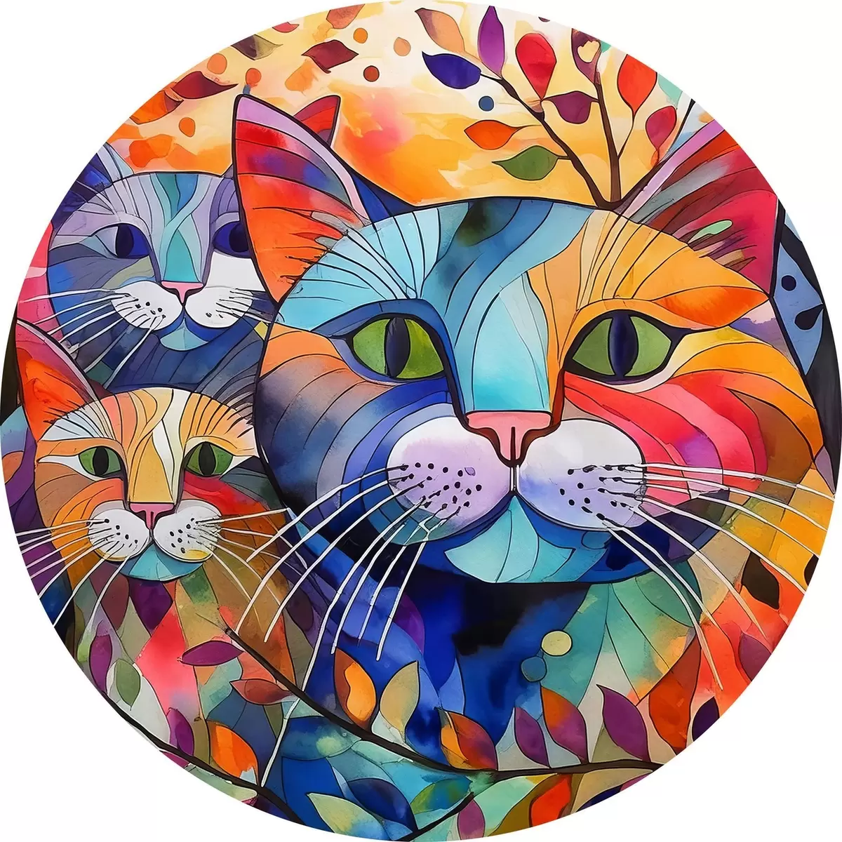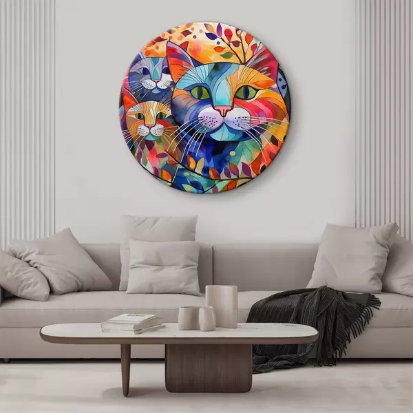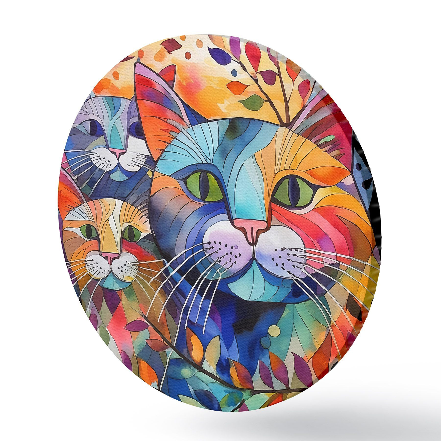 Runde Gemälde Mehrfarbige Abstraktion mit Katzen r38814