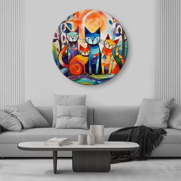 Runde Gemälde Mehrfarbige Abstraktion mit interessanten Katzen r38815