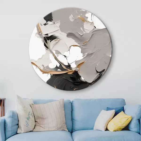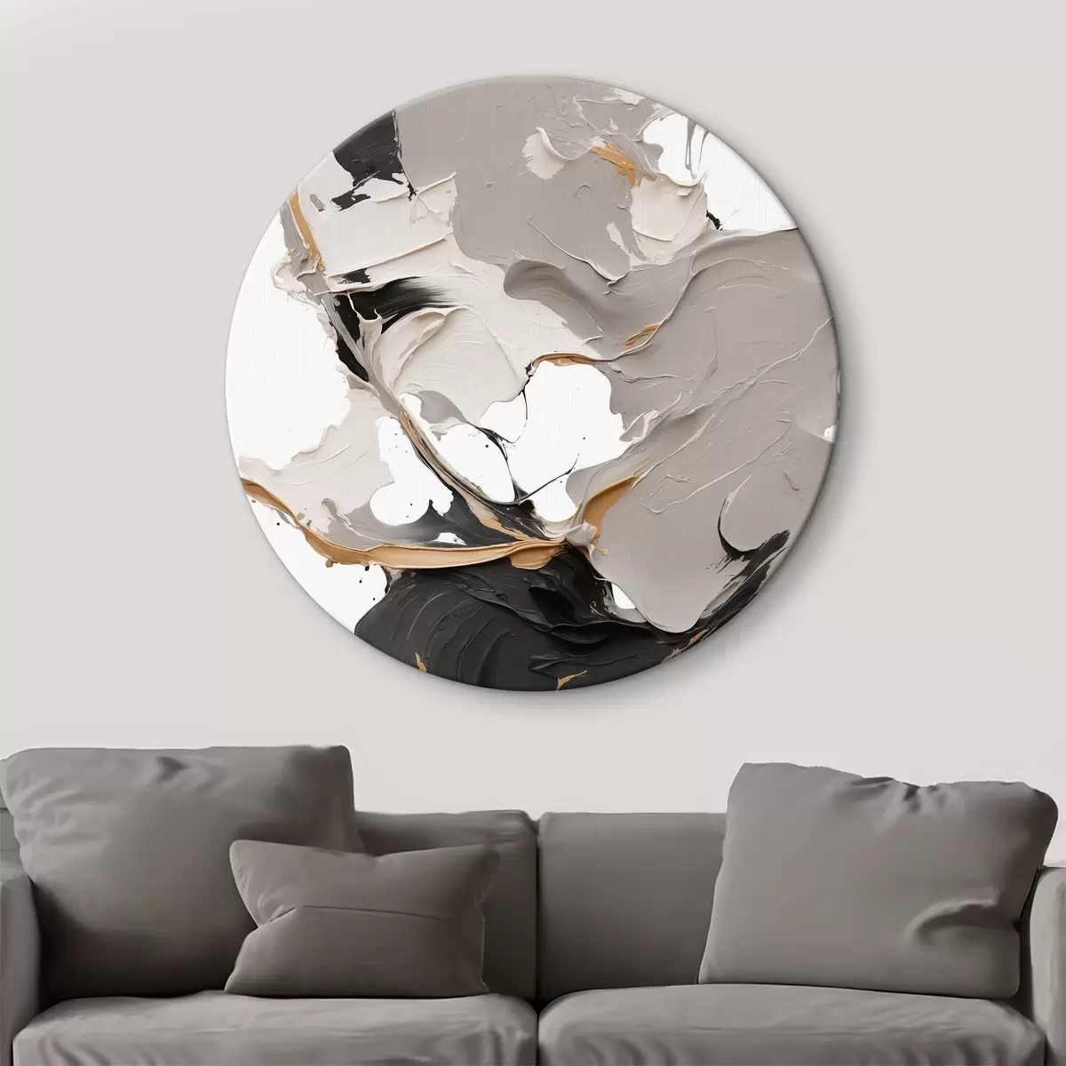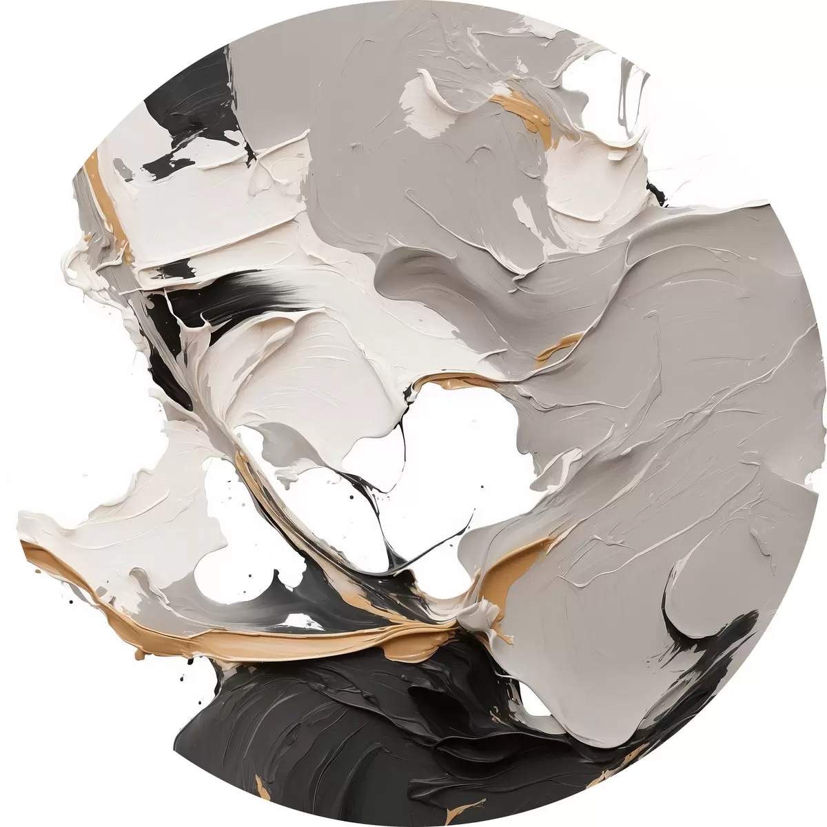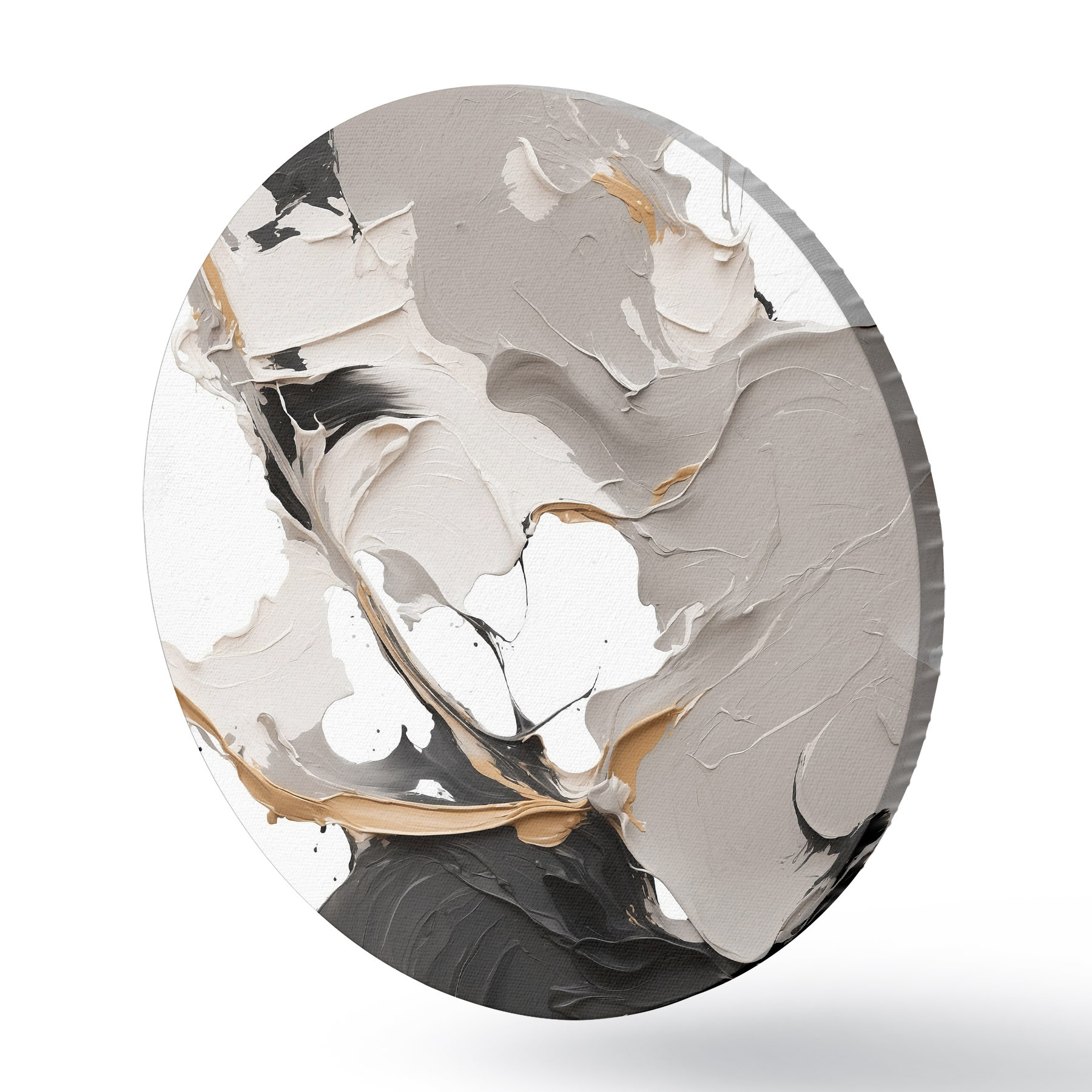Runde Gemälde Abstraktes Gemälde in Weiß- und Grautönen r38855