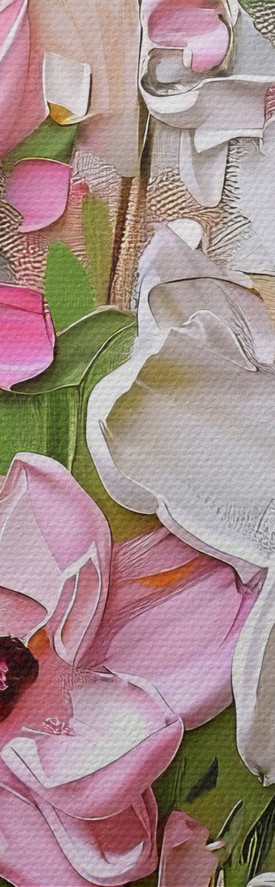 Drei Materialtypen stehen zur Verfügung: Economic Canvas - ein dichtes und haltbares Material für den Digitaldruck, identisch mit Malerleinwand, wasserfeste Oberfläche, realistische Wiedergabe von Details, mittelkörniges Material. Premium Canvas - die Textur ähnelt der einer Malerleinwand (verwobene kleine Fäden). Weiche, detaillierte Wiedergabe des Bildes auf einer matten Oberfläche. Eco-Premium - hochwertiges Gewebe aus 100% Baumwolle. Dank der natürlichen Baumwollfasern ist das Material langlebig und verschleißfest. Hervorragende Farbwiedergabe und Detailtreue.