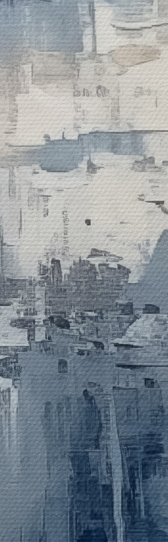 Bild Abstraktes minimalistisches Ölgemälde, gerieben, geometrisch, Flecken, blaue und weiße Farbe Nr r38906