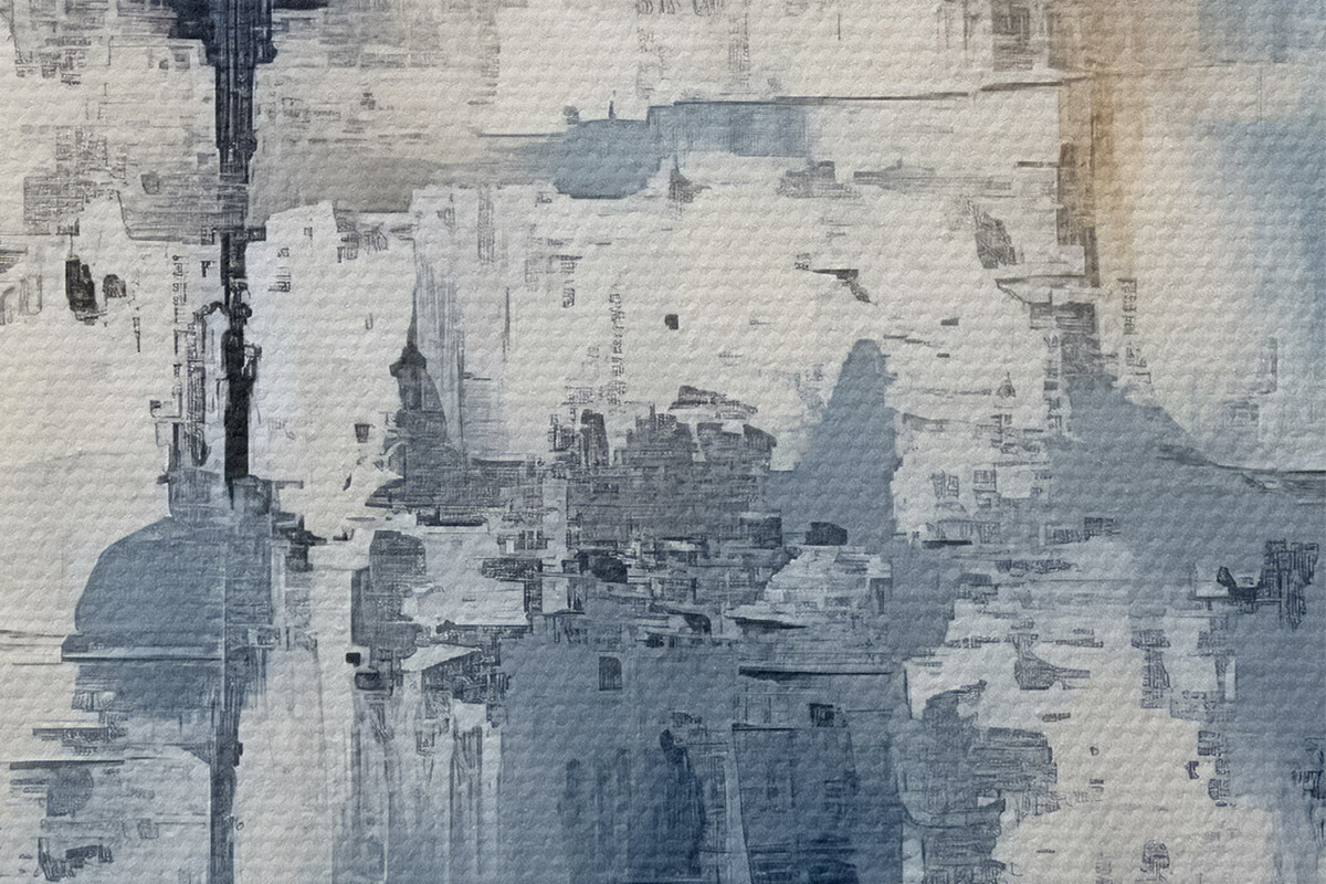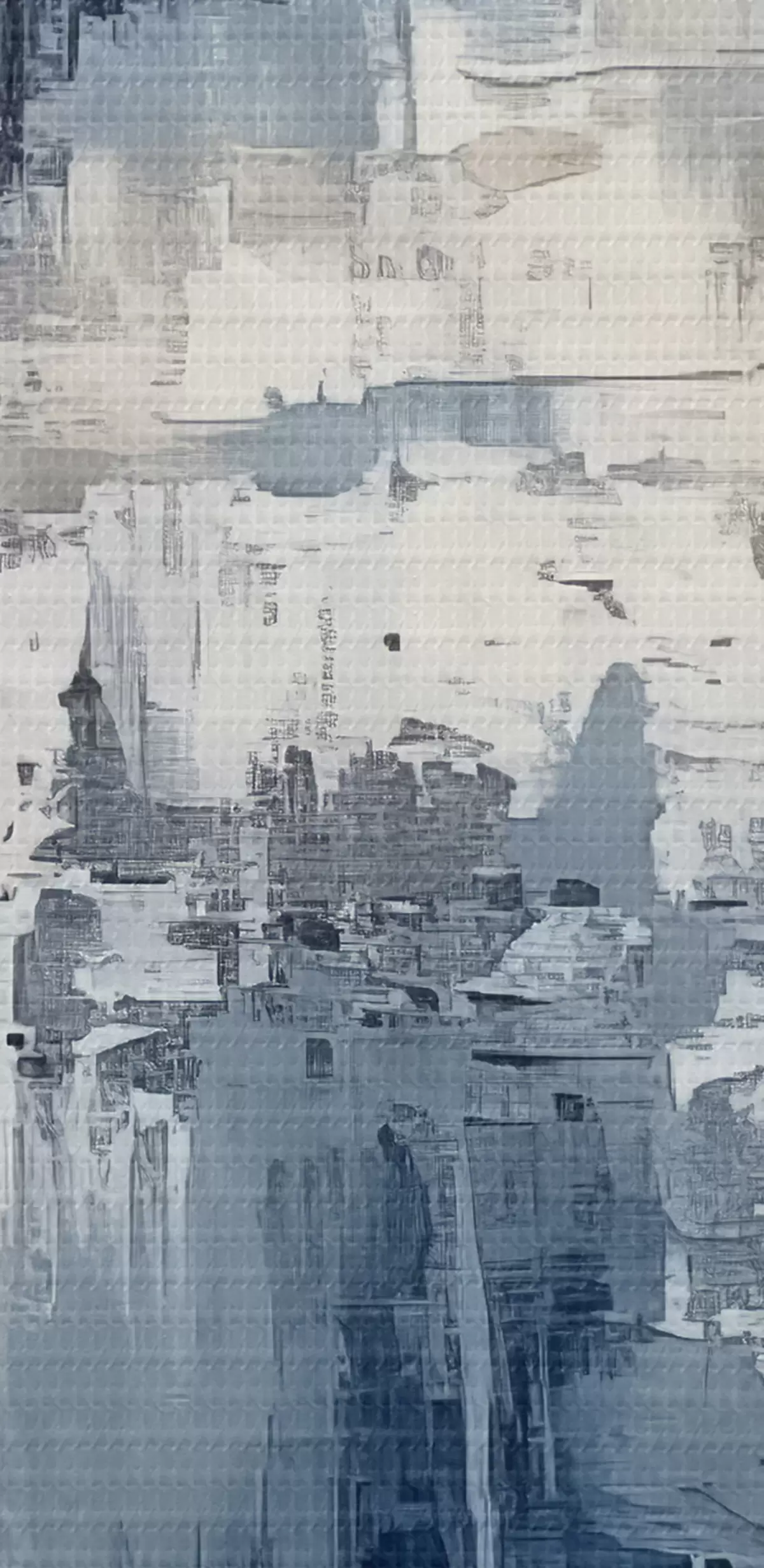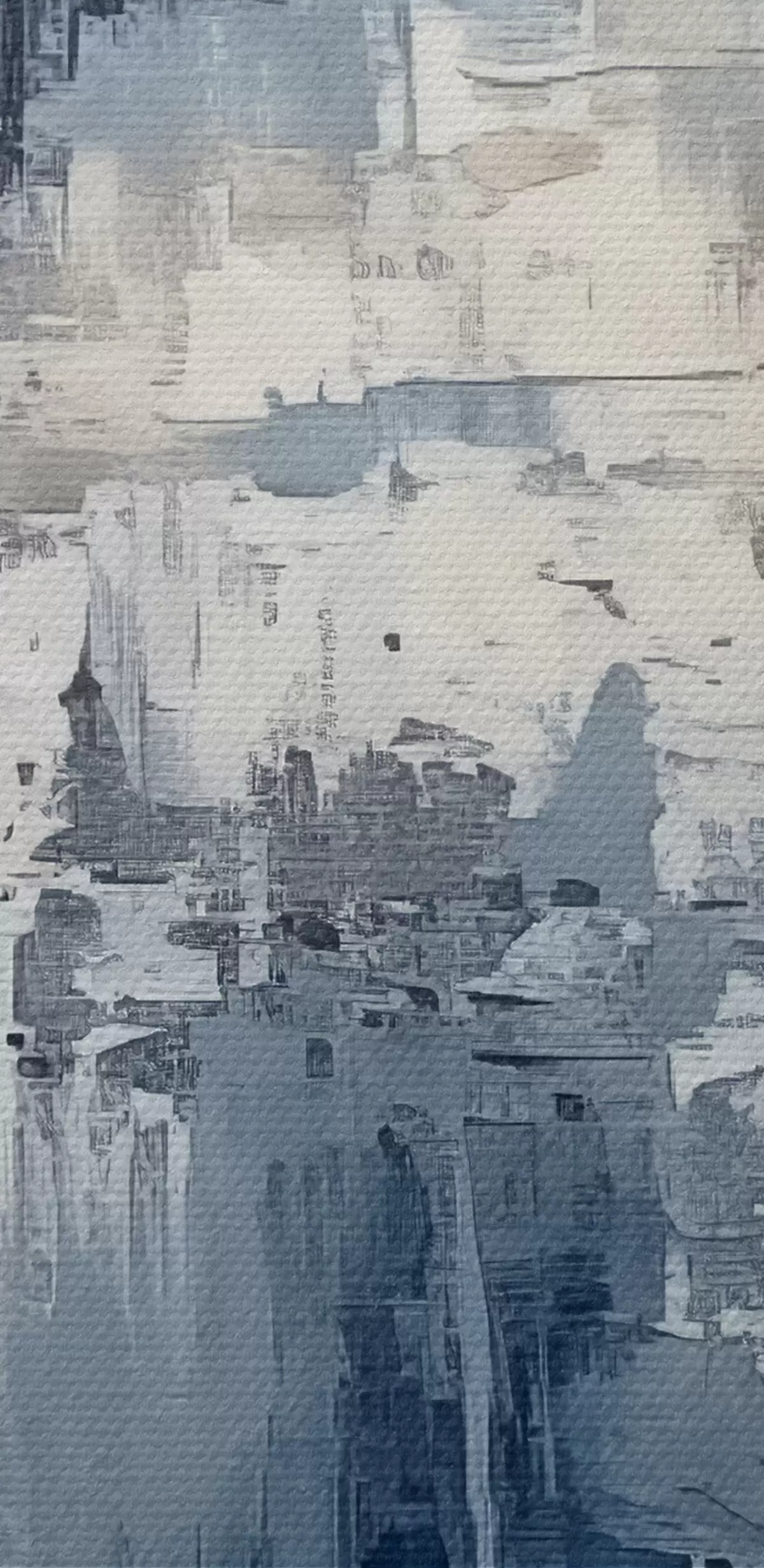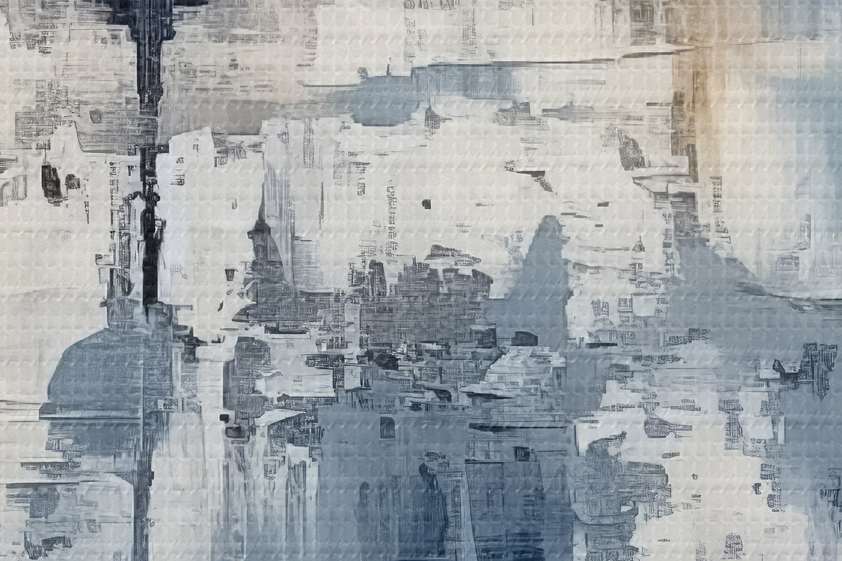 Bild Abstraktes minimalistisches Ölgemälde, gerieben, geometrisch, Flecken, blaue und weiße Farbe Nr r38906