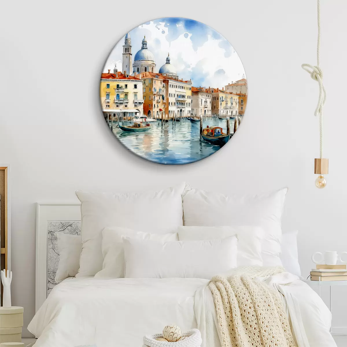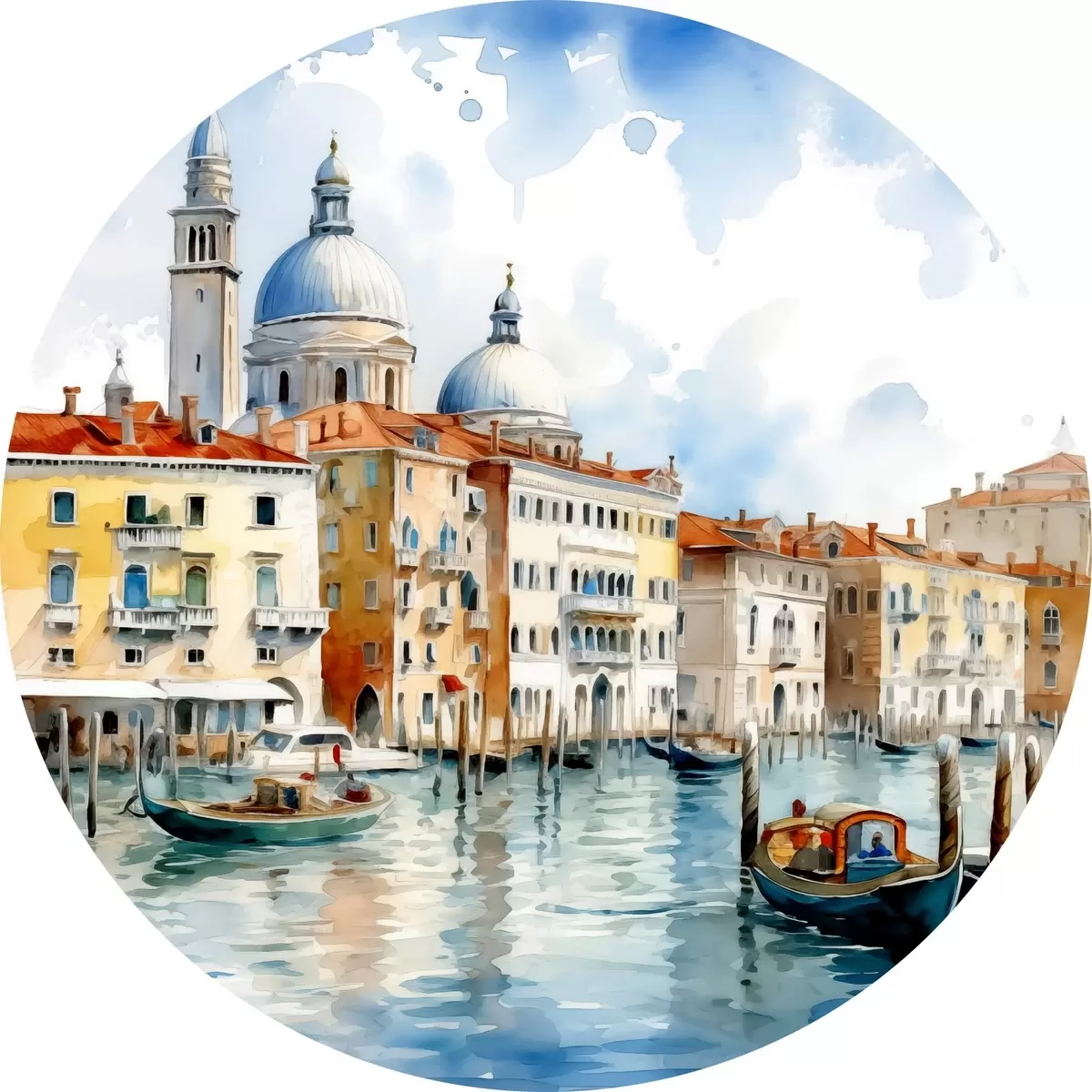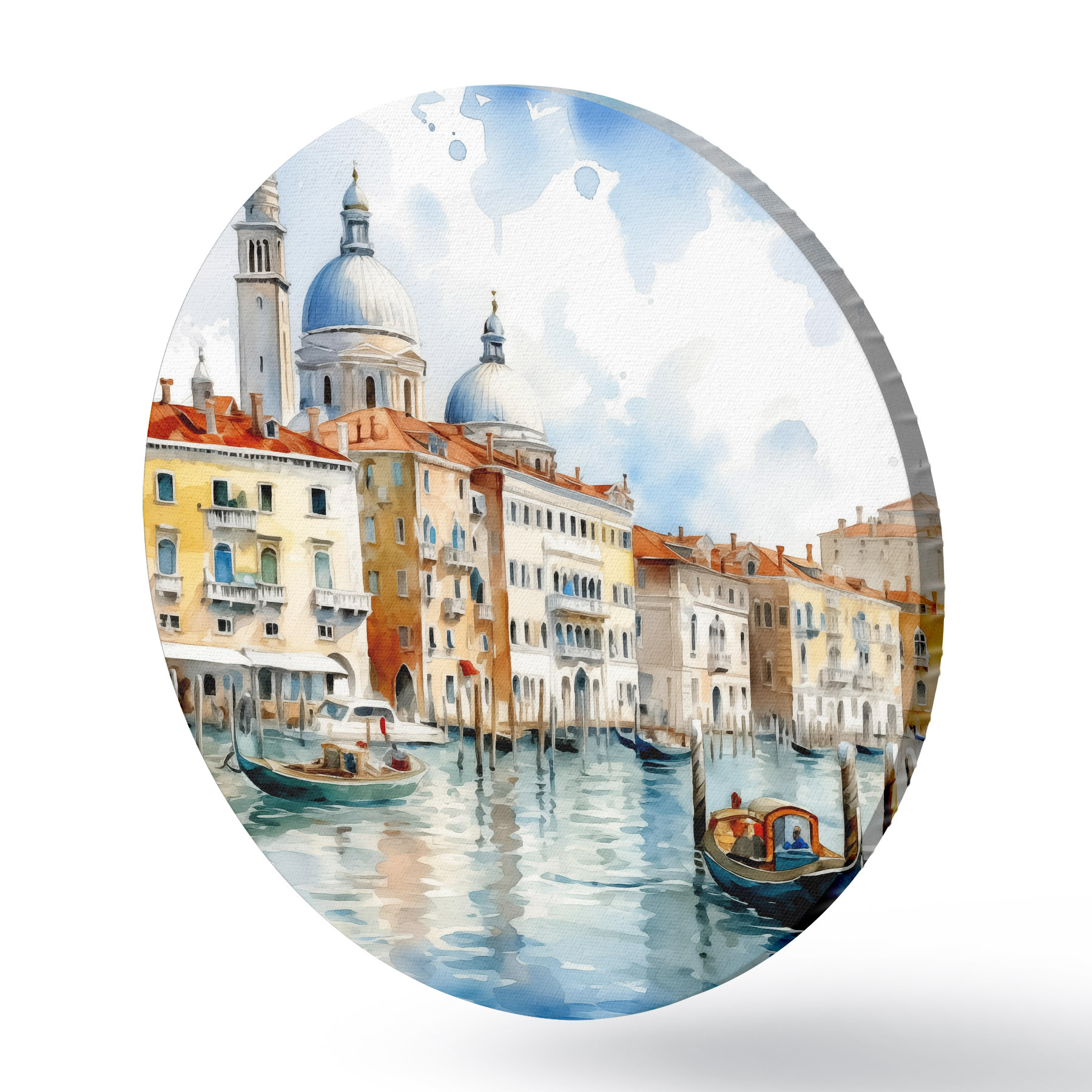 Runde Gemälde Aquarelllandschaft Venedig, Bucht, Fluss, Architektur, Landschaft, Boote, Gondel r38908