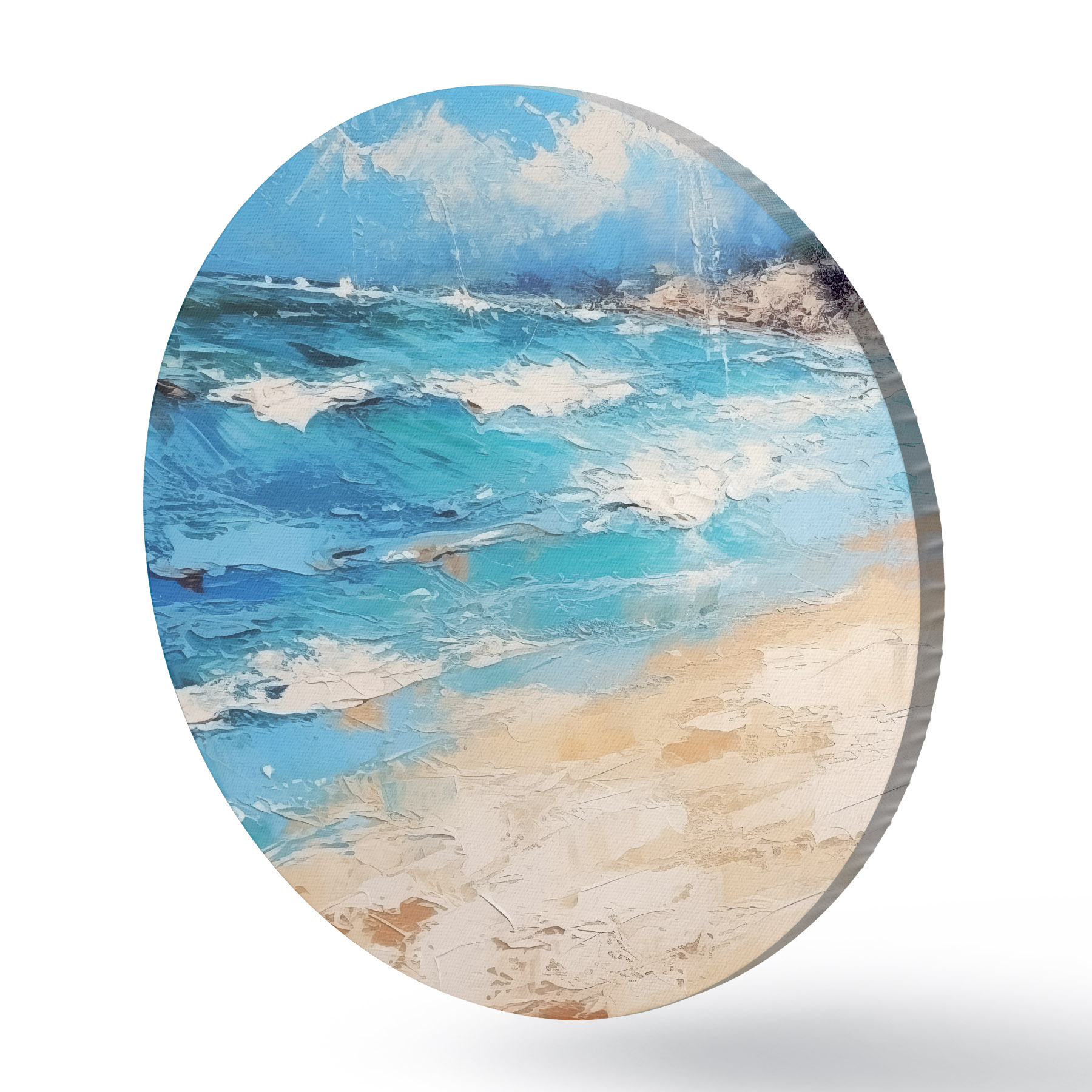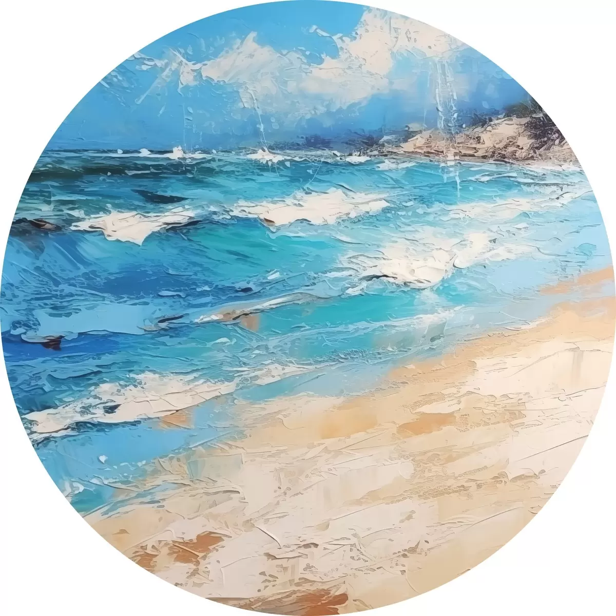 Runde Gemälde Meer, Wellen, Strand, Sand, Ölgemälde, Abstraktion, Landschaft, Landscape r38910