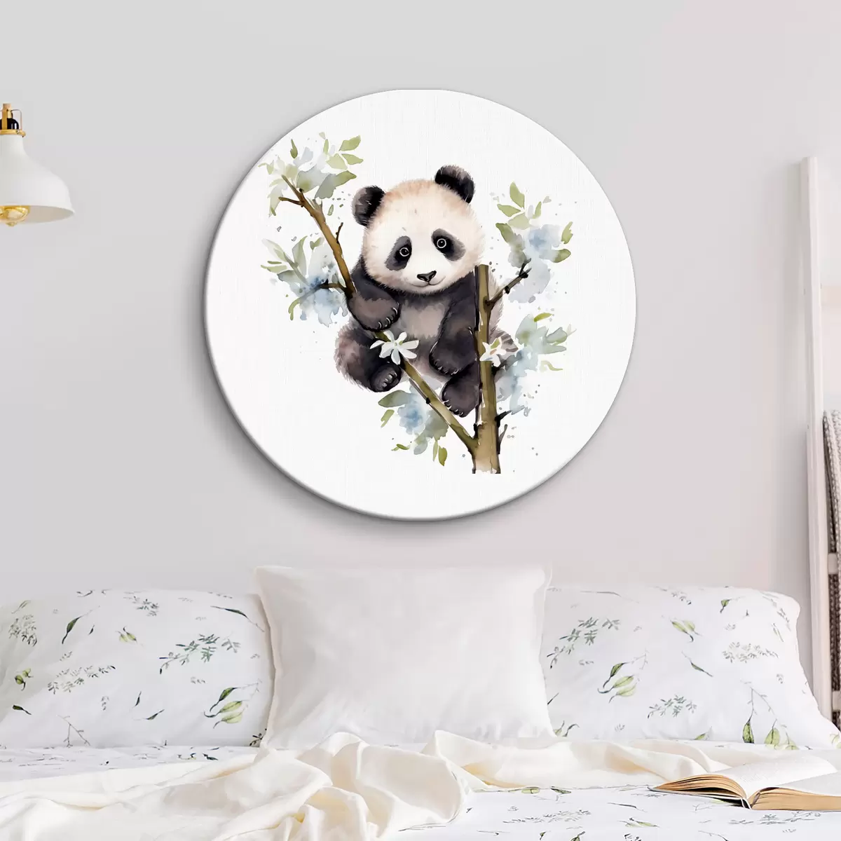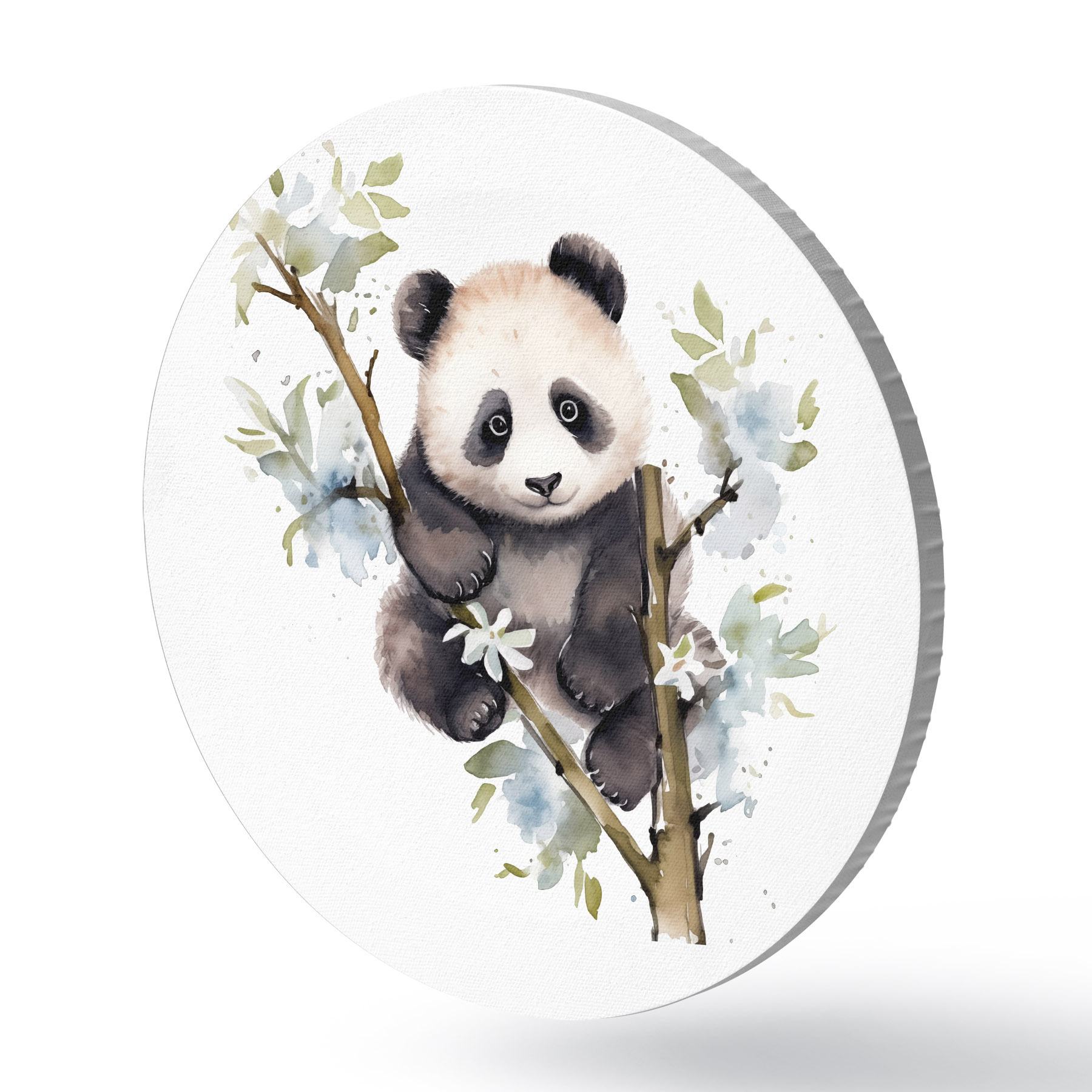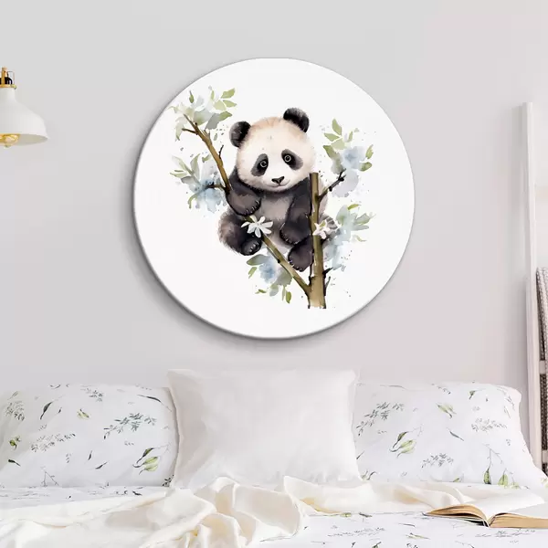 Runde Gemälde Panda sitzt verspielt zwischen Blumen r38924
