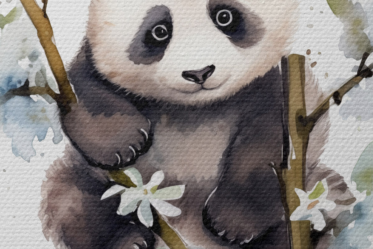 Bild Panda sitzt verspielt zwischen Blumen Nr r38924