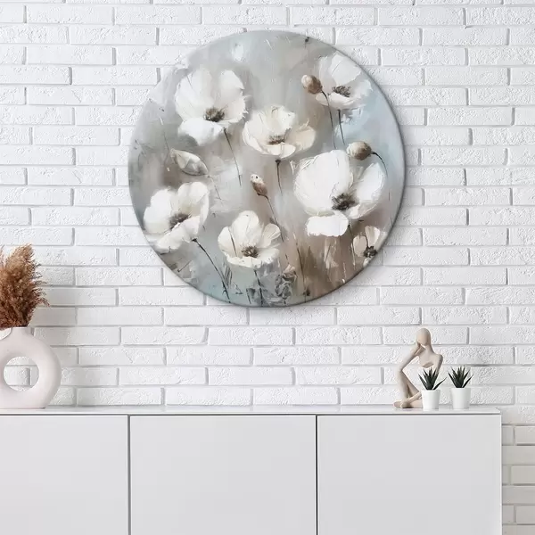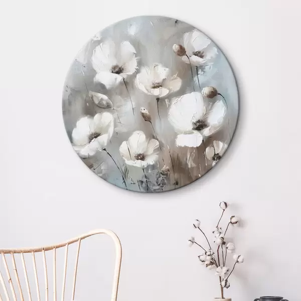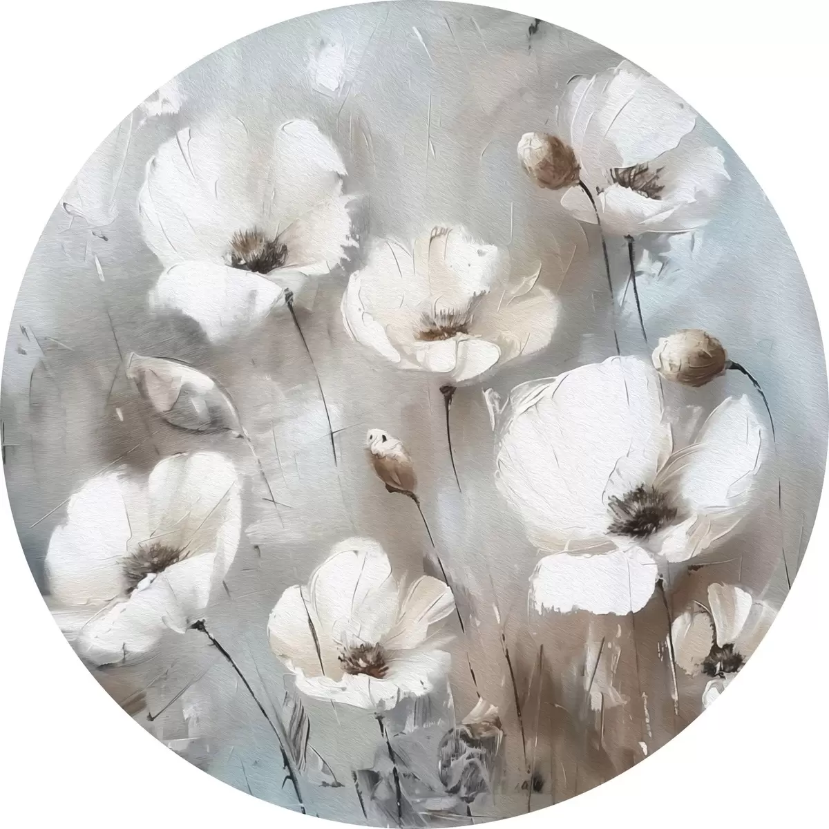 Runde Gemälde Weiße Wildblumen Pflanze gedruckt Textur r38925