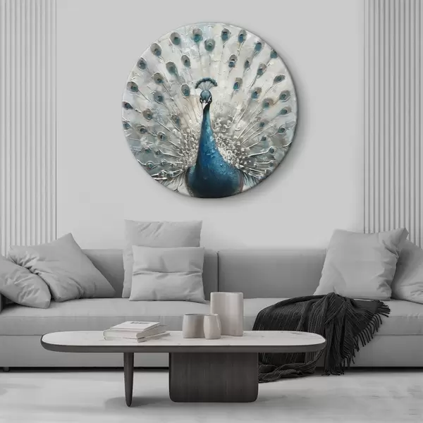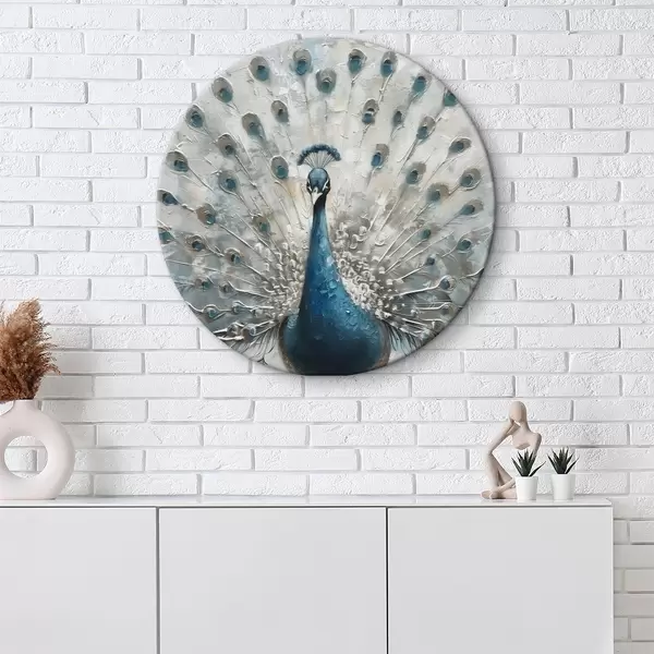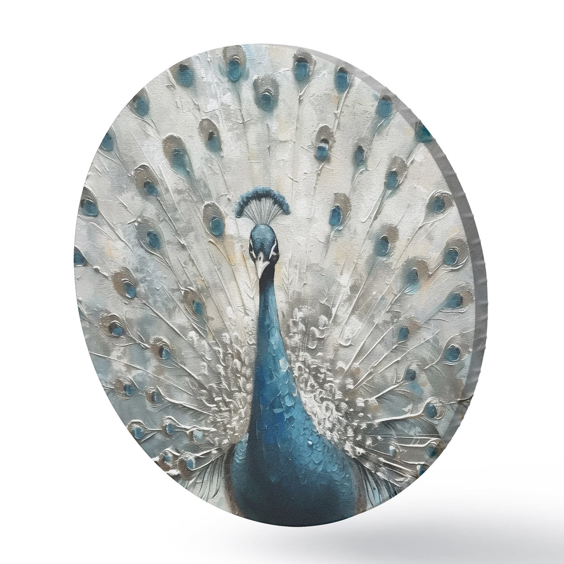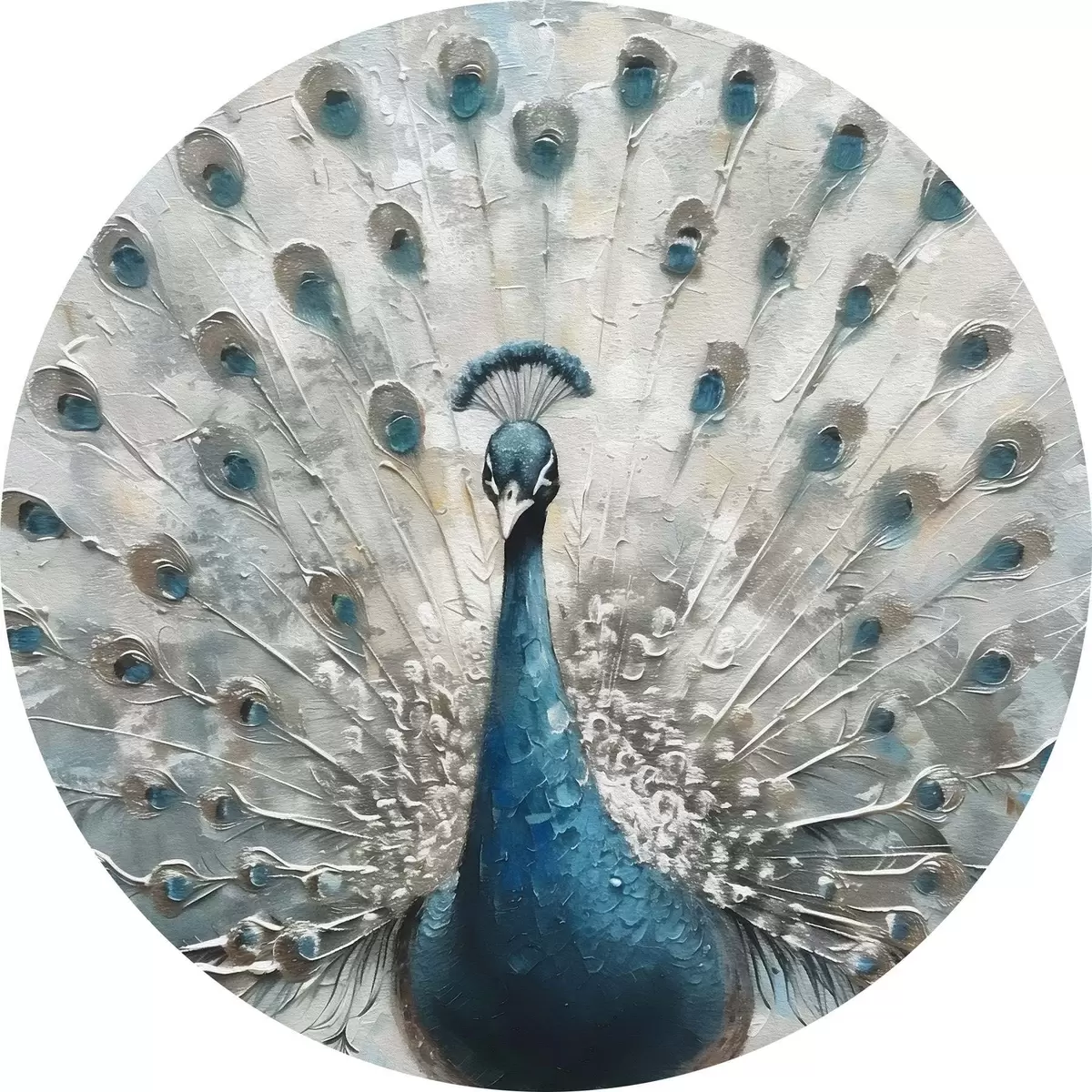 Runde Gemälde Blauer Pfau mit Federn bedruckter Textur r38931