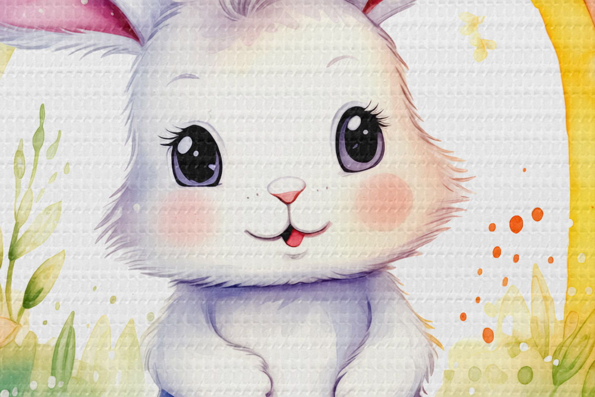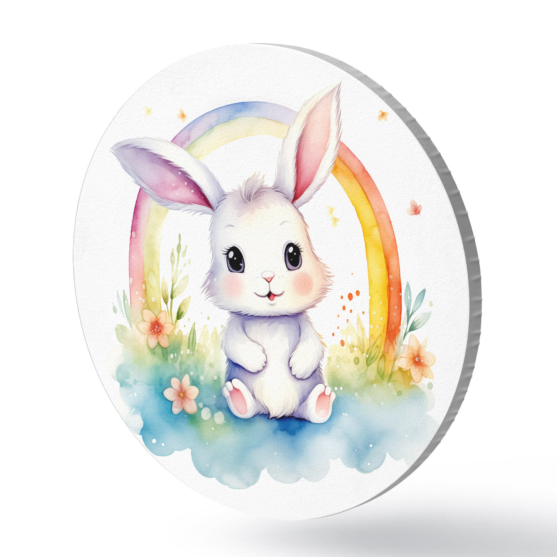 Runde Gemälde Häschen unter einem skurrilen Regenbogen r38940