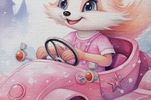 Bild Kleiner Fuchs fährt ein rosa Auto Aquarell-Illustration für Kinder Nr r38943