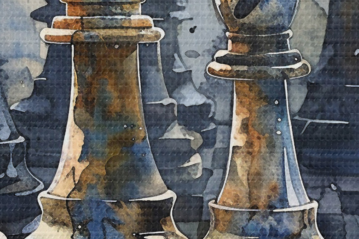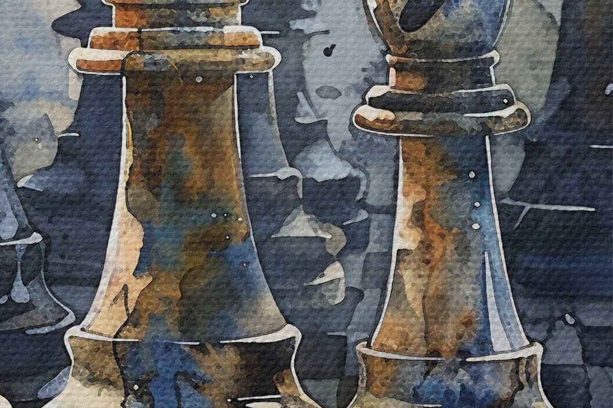 Bild Aquarellmalerei, Nahaufnahme eines Schachspiels aus Metall oder Stein, mit detaillierten Designs und Texturen Nr r38960