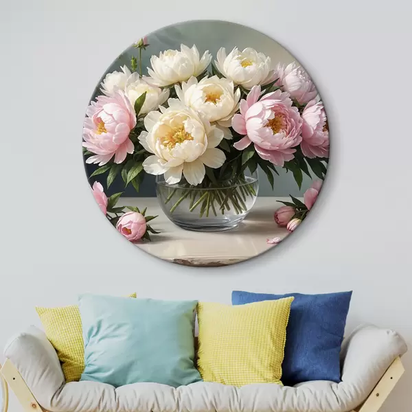 Runde Gemälde Vase mit weißen und rosa Pfingstrosen r38967