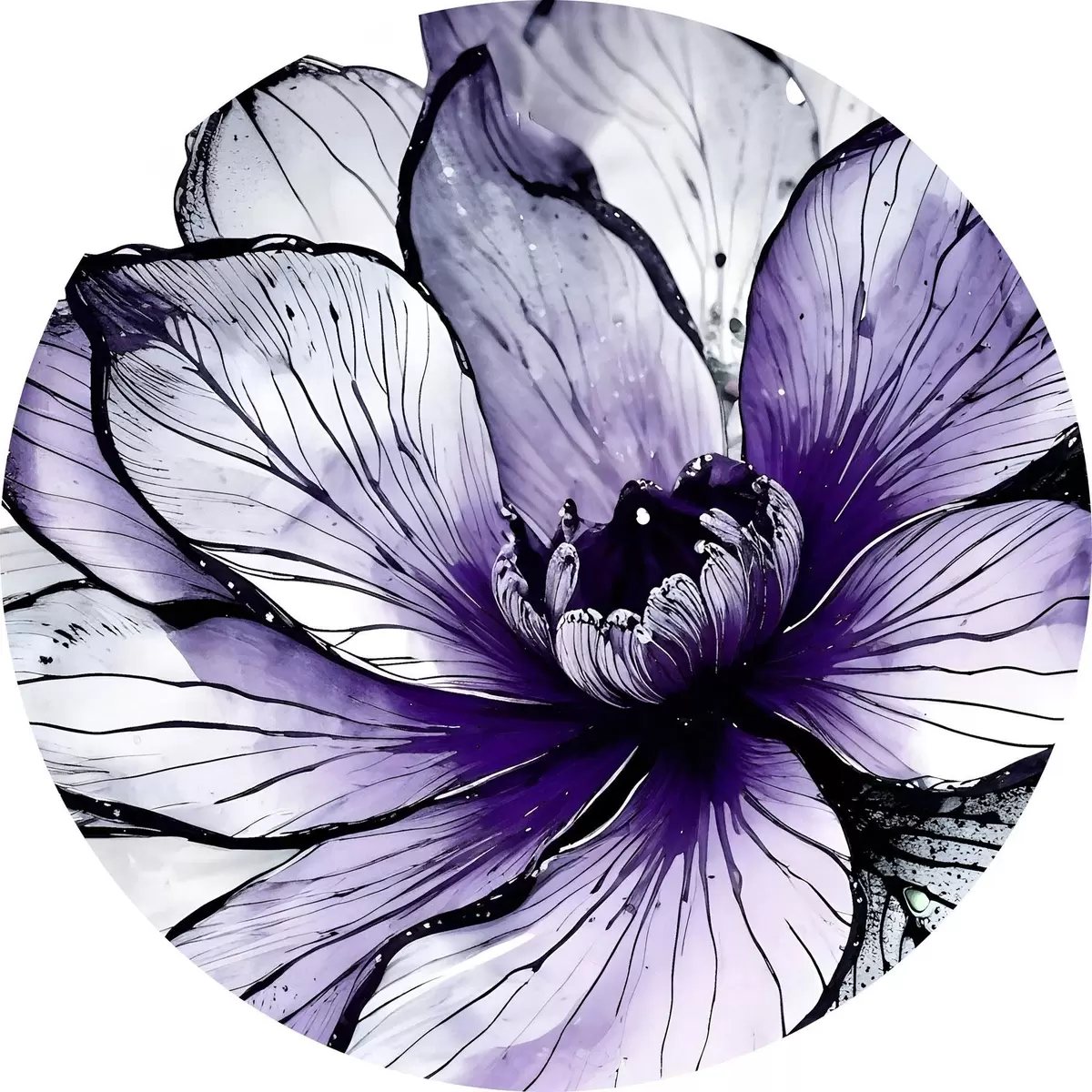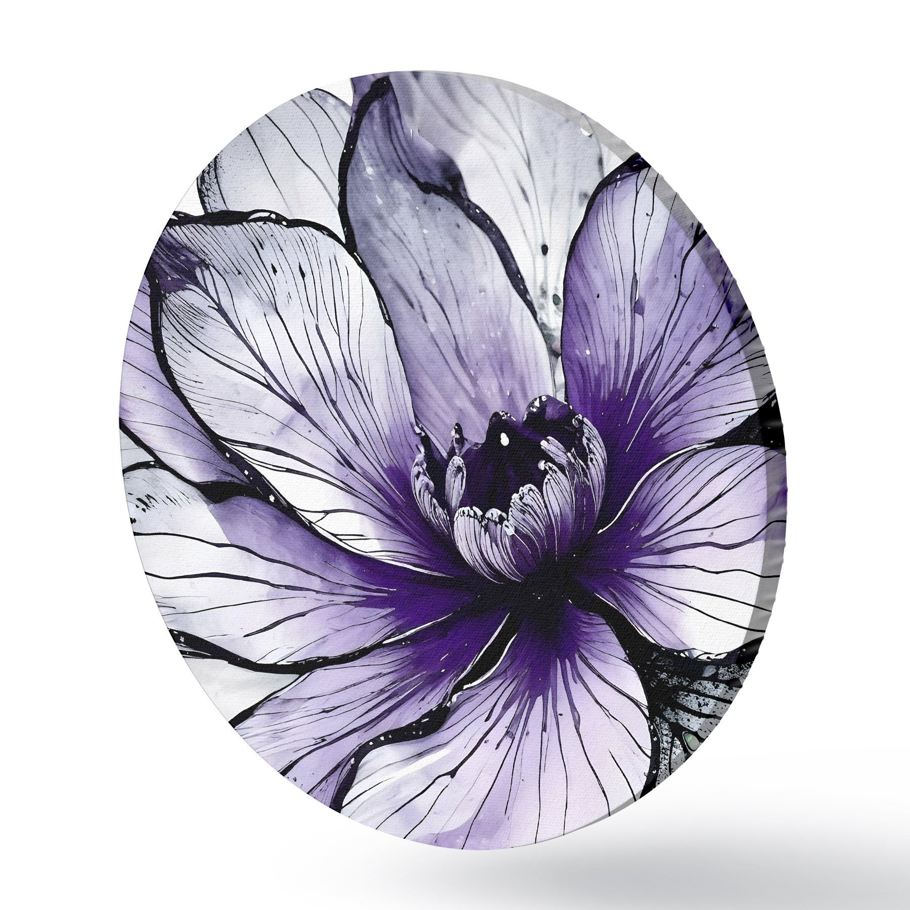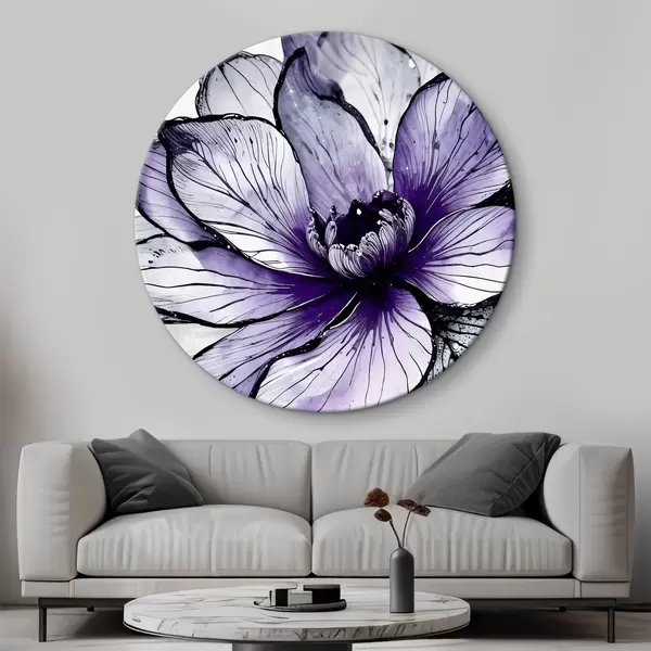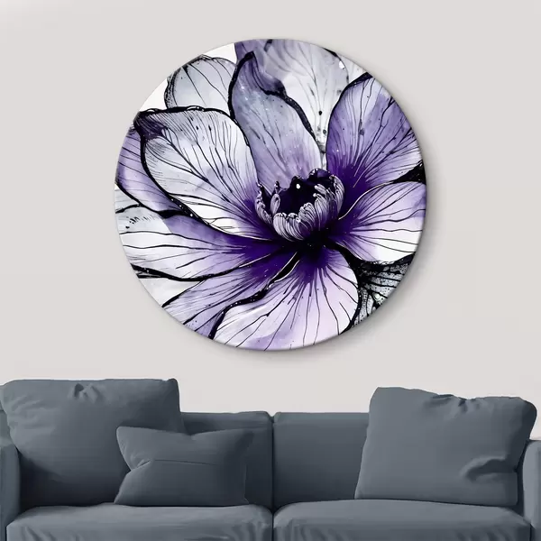 Runde Gemälde Eine große, leuchtend violette Blume mit zarten, kunstvollen Blütenblättern vor einem dunklen Hintergrund r38982