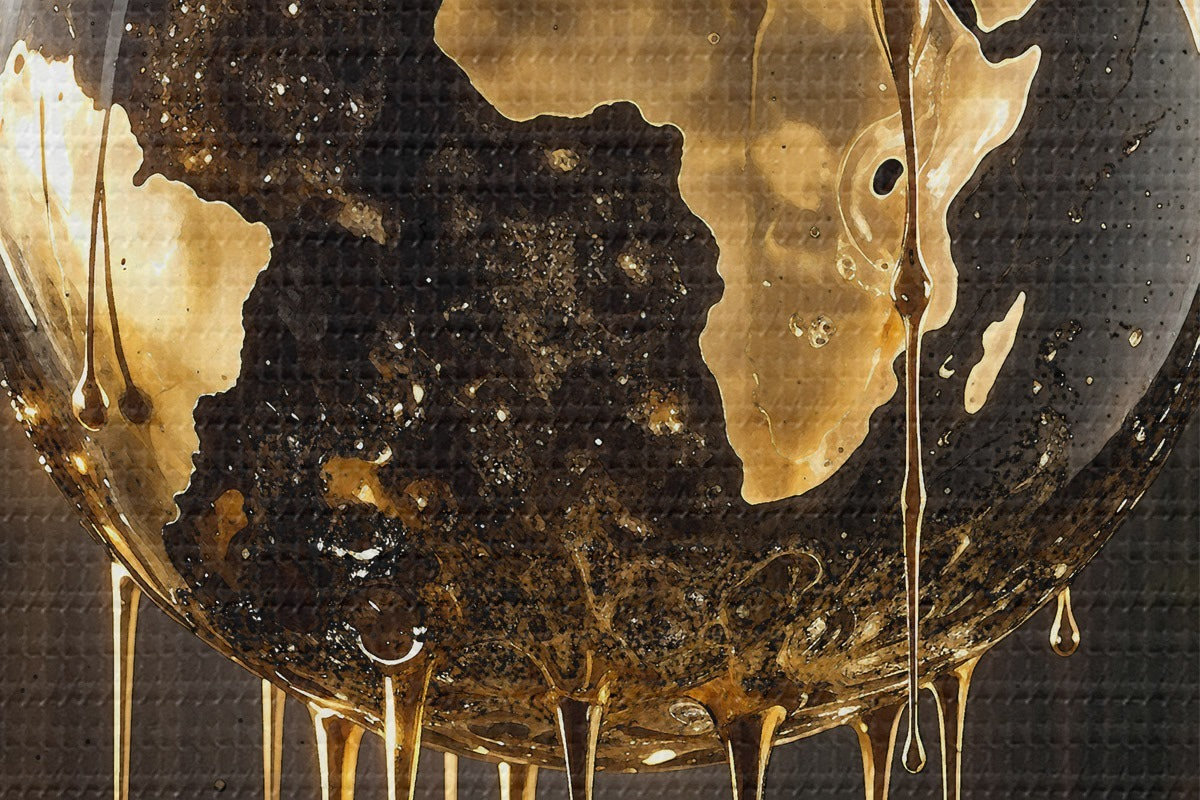 Bild Ein glühender Globus, der die Erde inmitten einer tropfenden Flüssigkeit vor einem dunklen Hintergrund darstellt Nr r38983