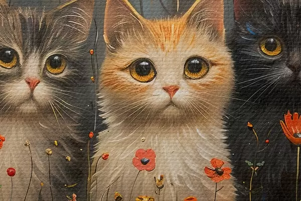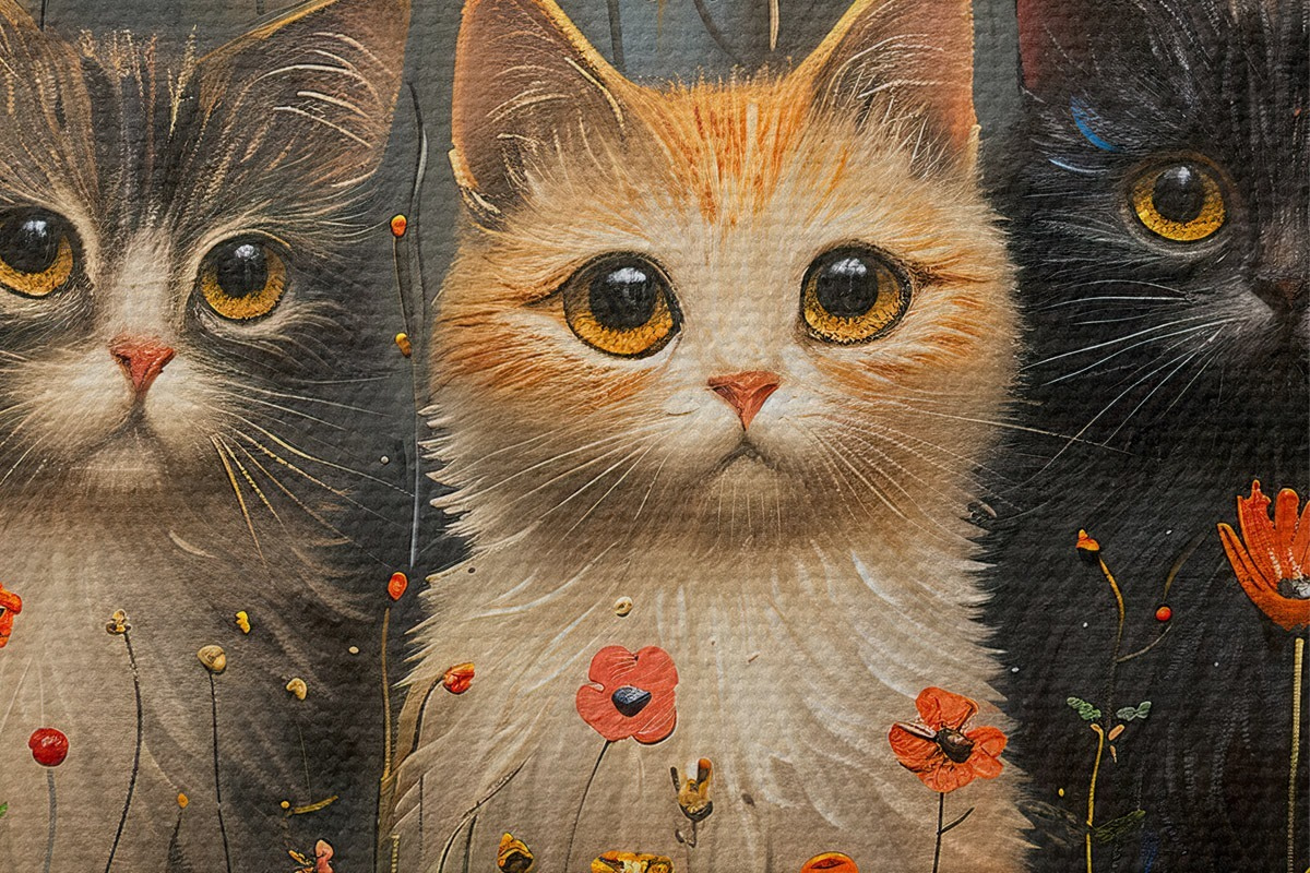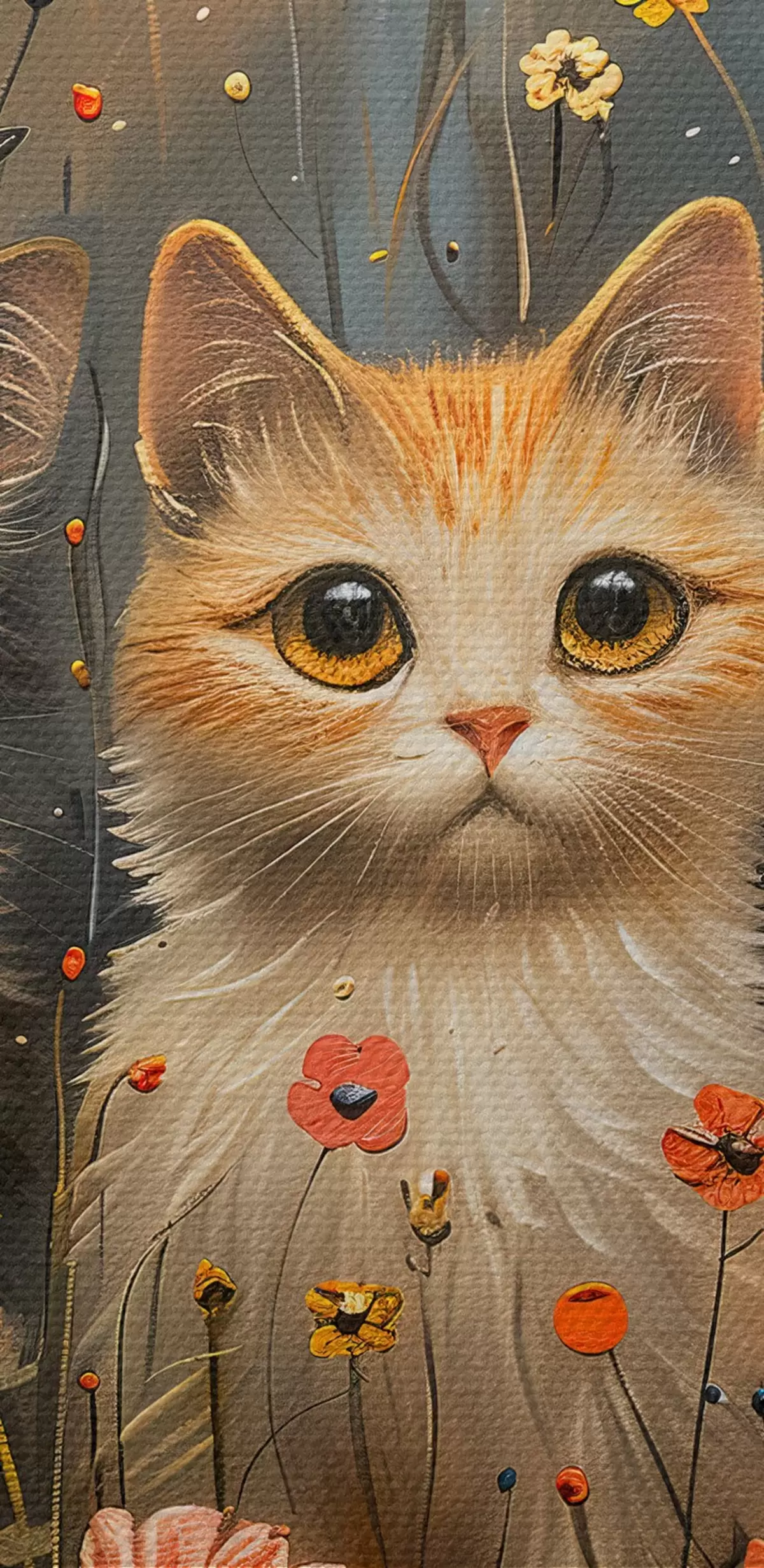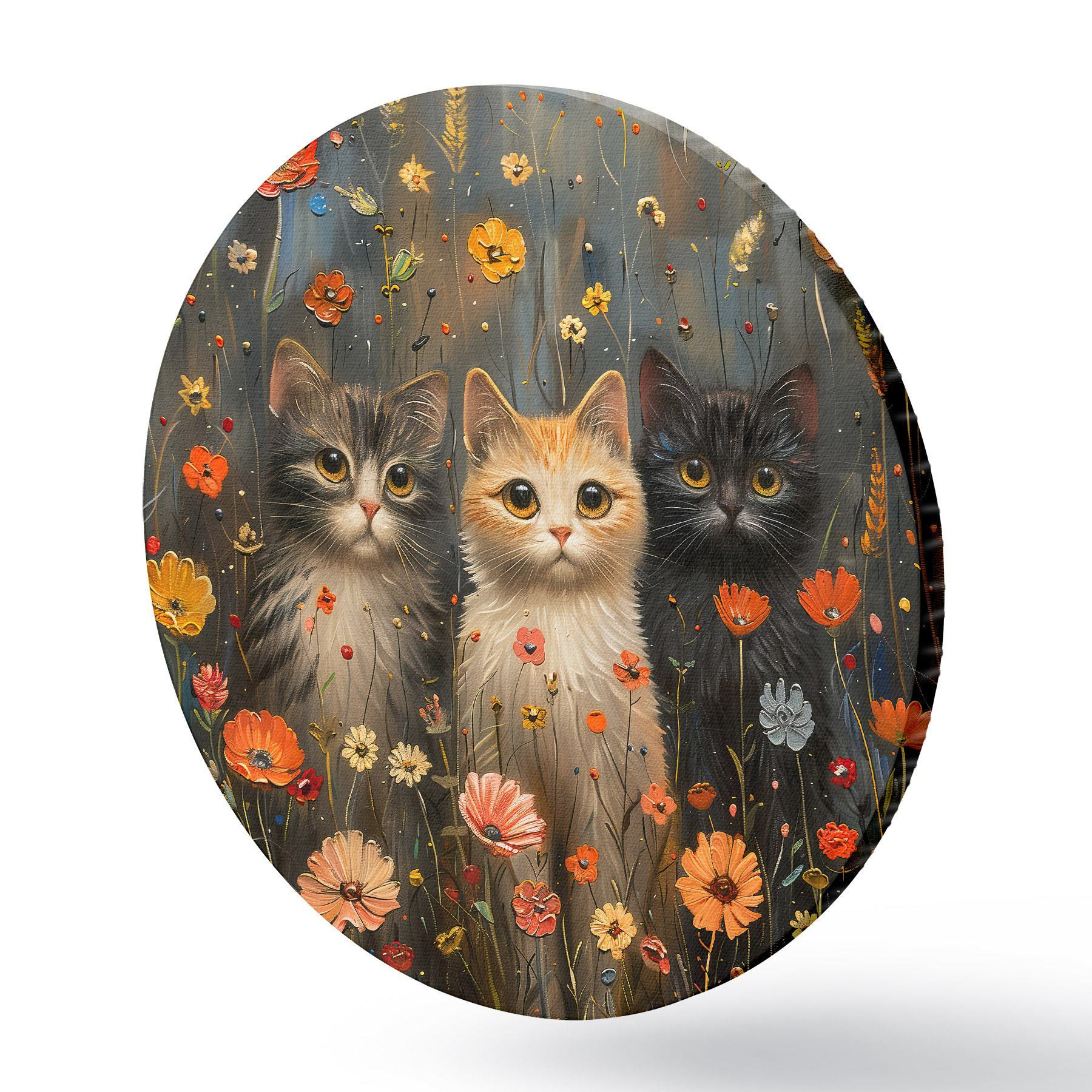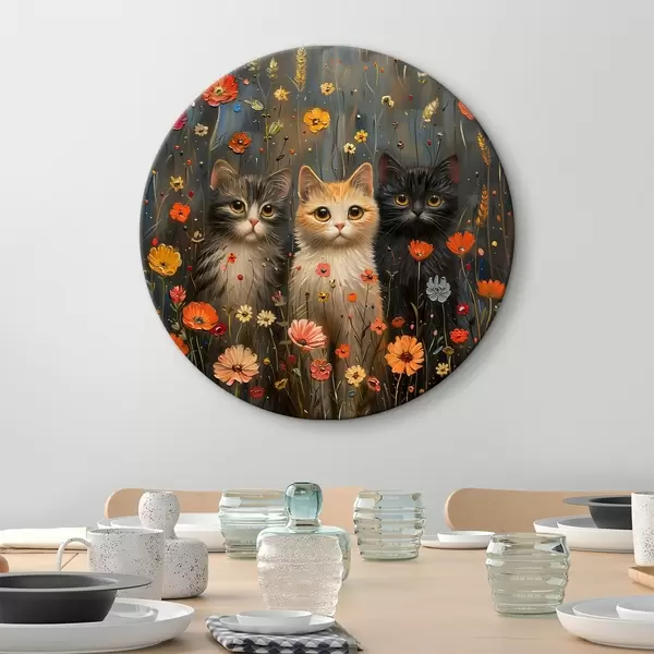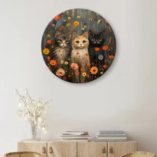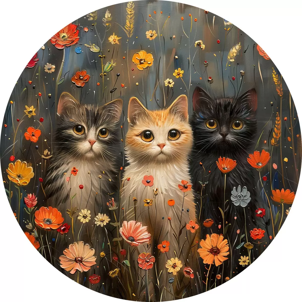 Runde Gemälde Drei Katzen in Wildblumen r39012