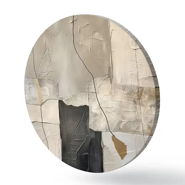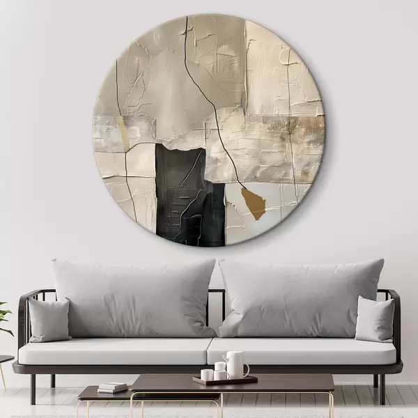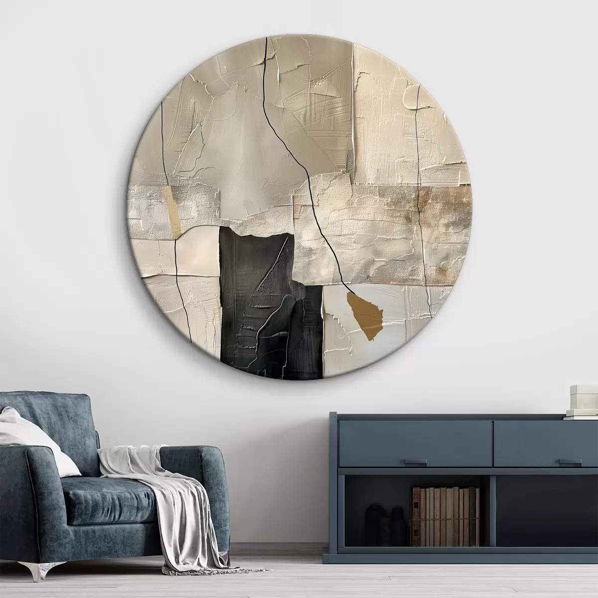 Runde Gemälde Geometrische Abstraktion in Beige und Schwarz r39016