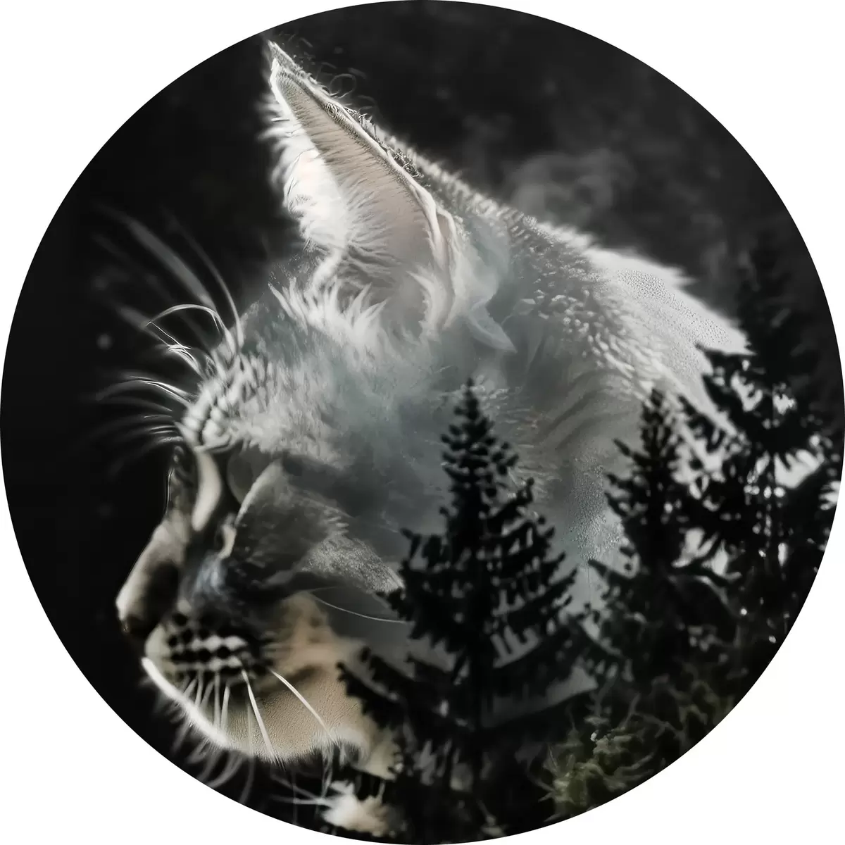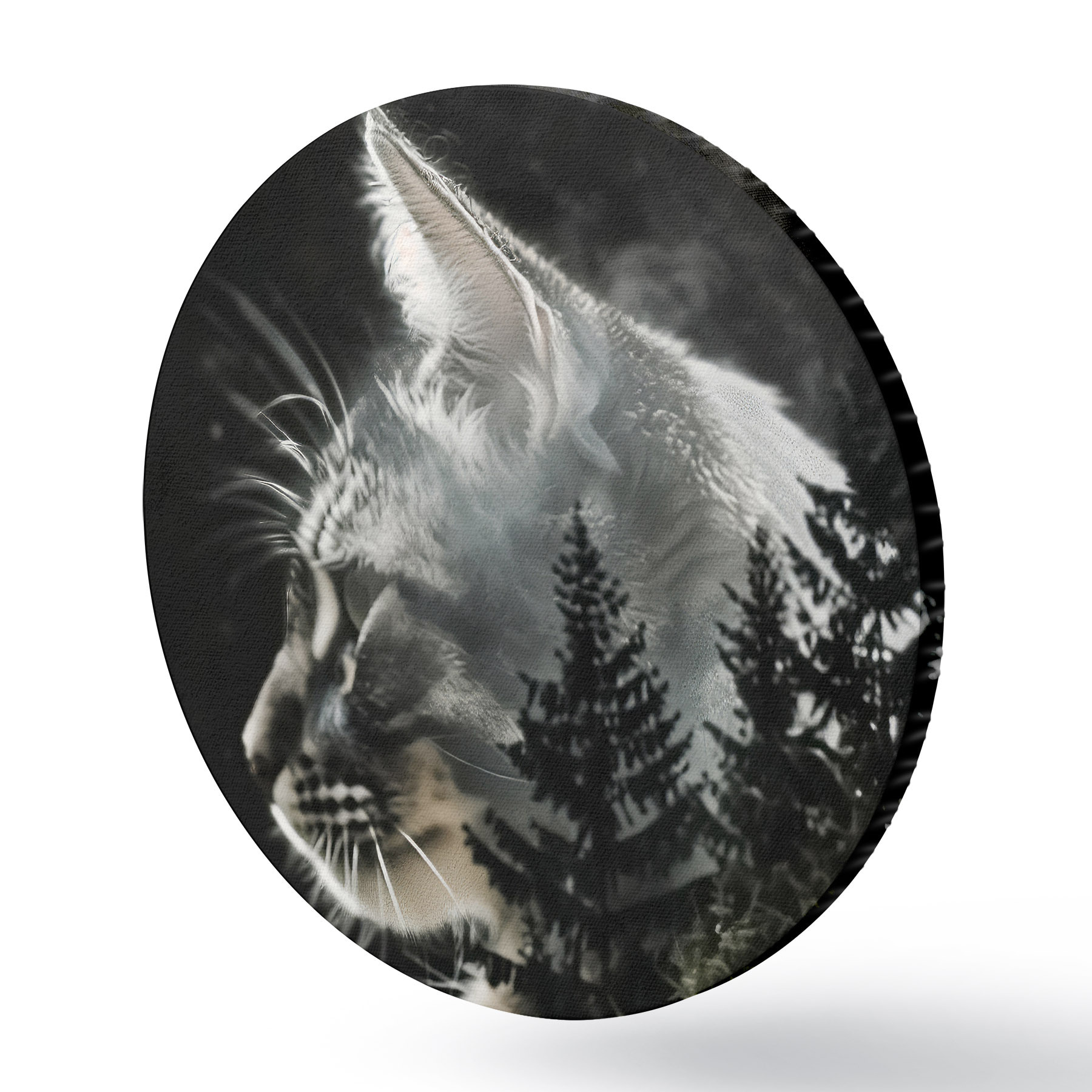 Runde Gemälde Katze mit Weihnachtsbäumen r39028