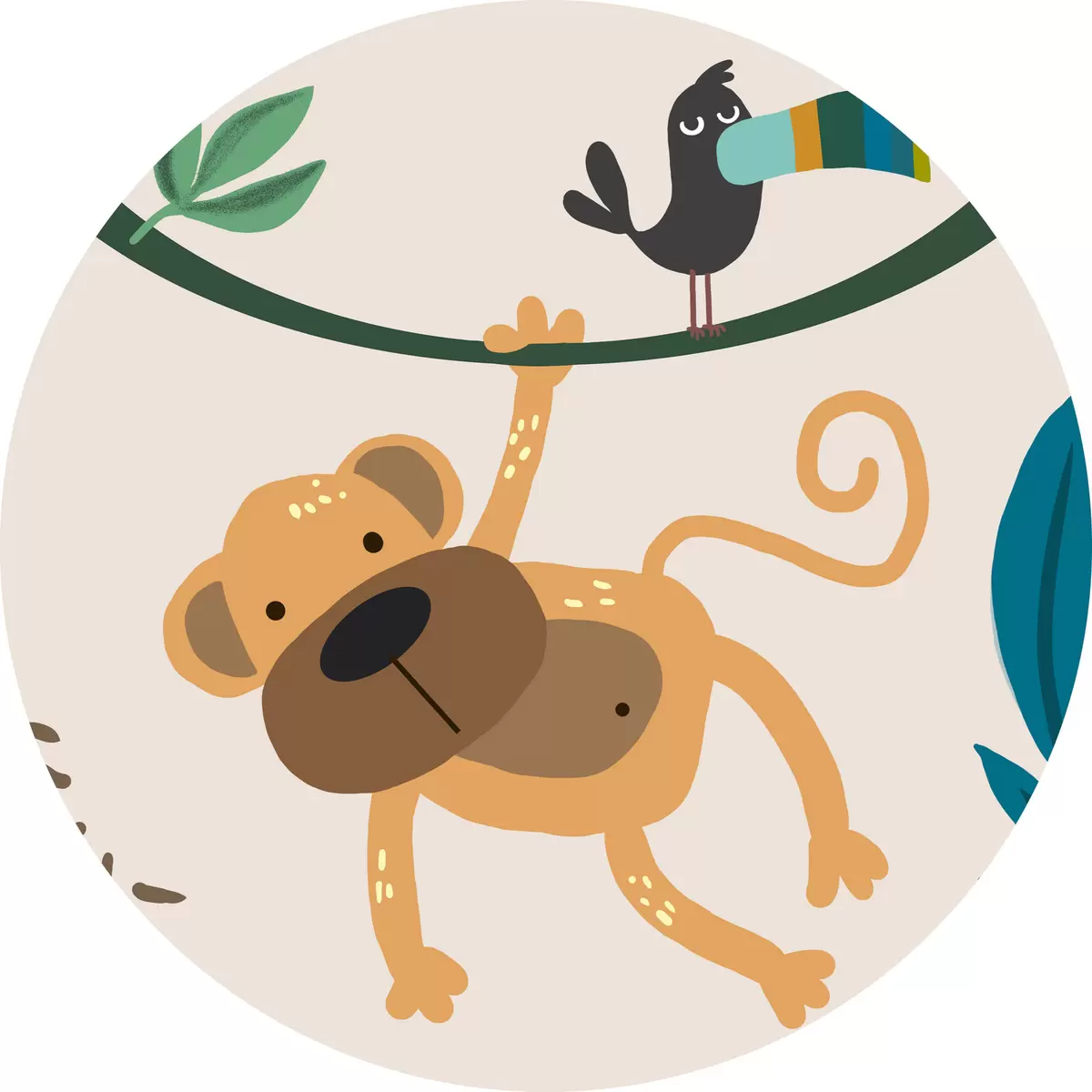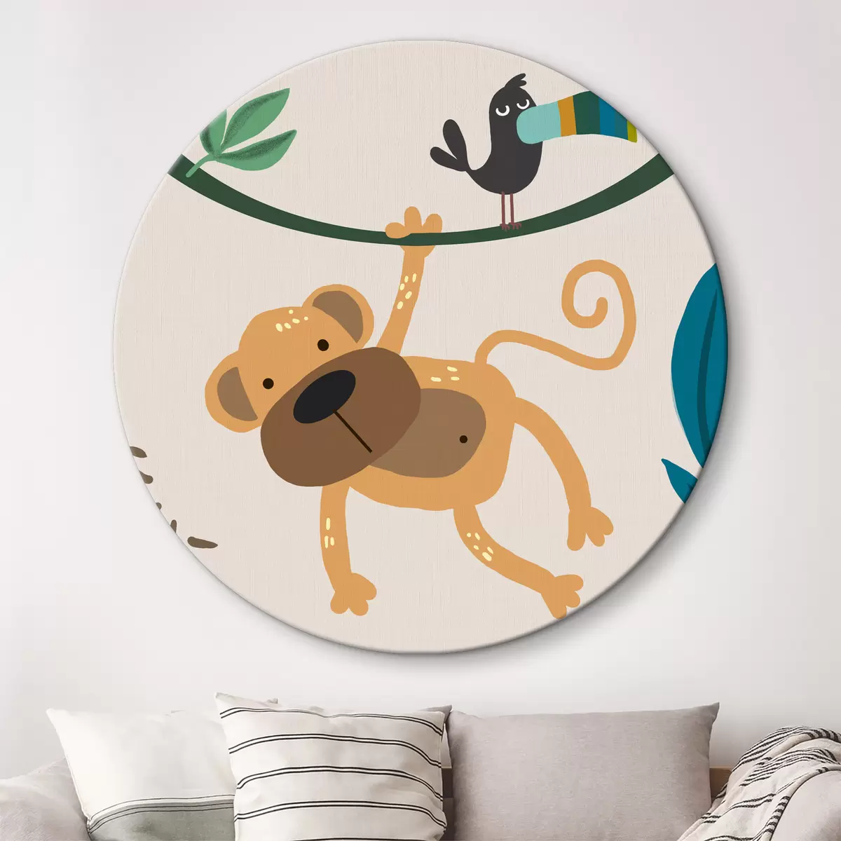 Runde Gemälde Affe im Dschungel im Safari-Stil, Boho r39094