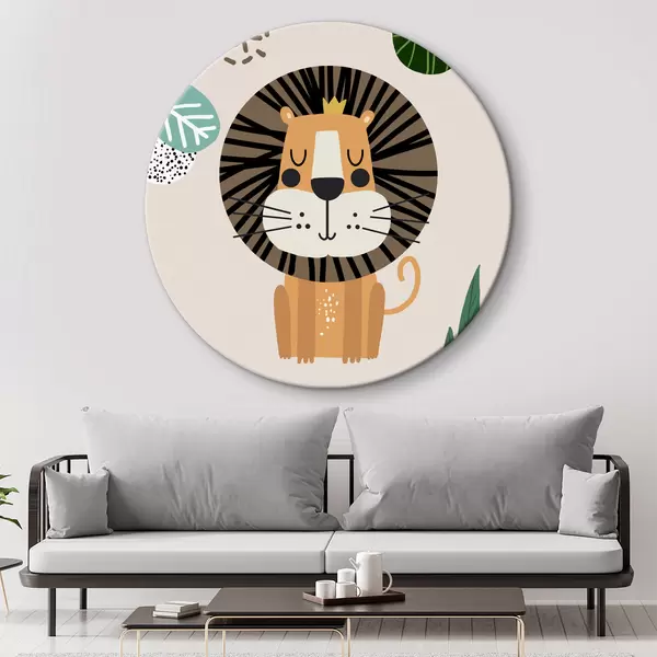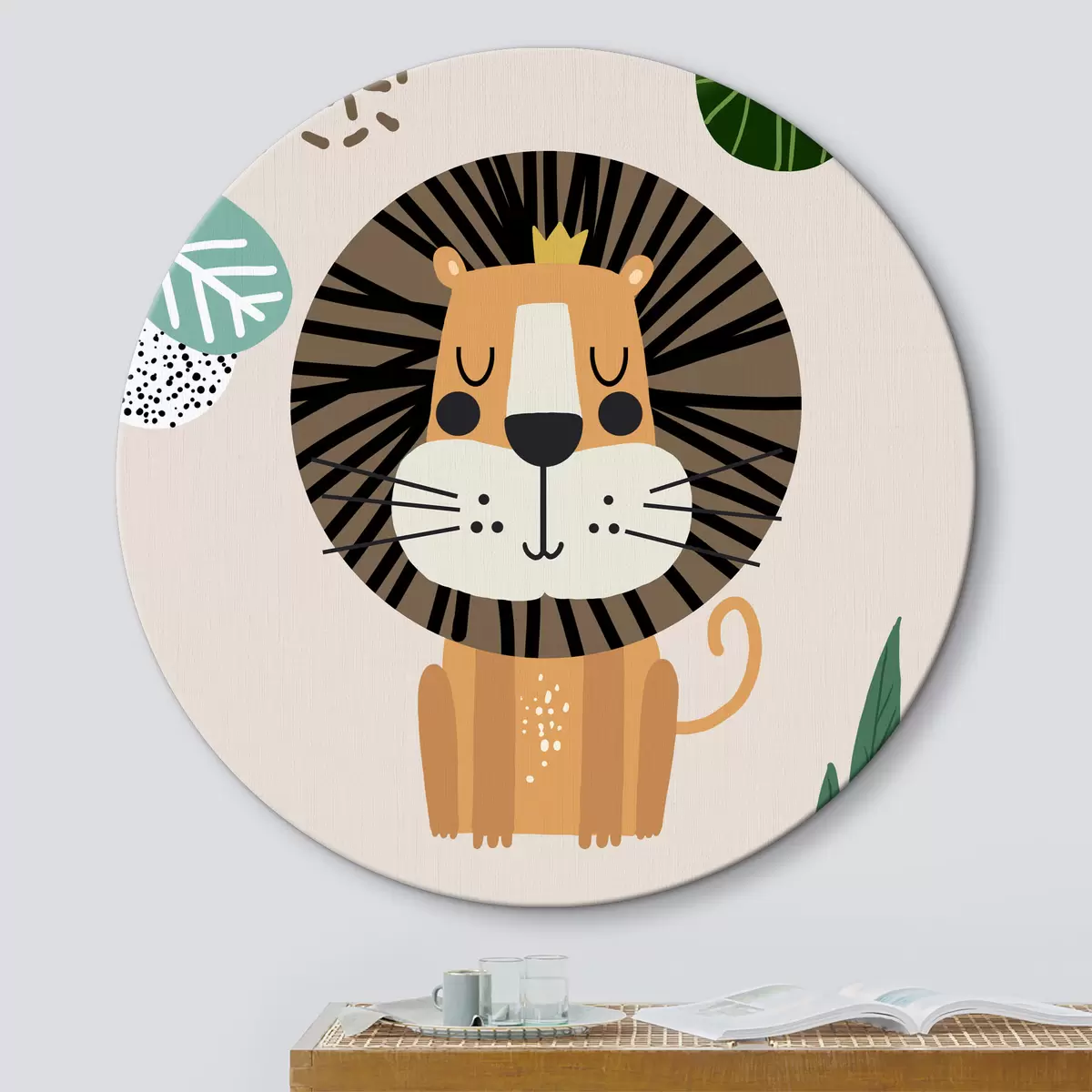 Runde Gemälde Löwe im Dschungel im Safari-Stil, Boho r39095