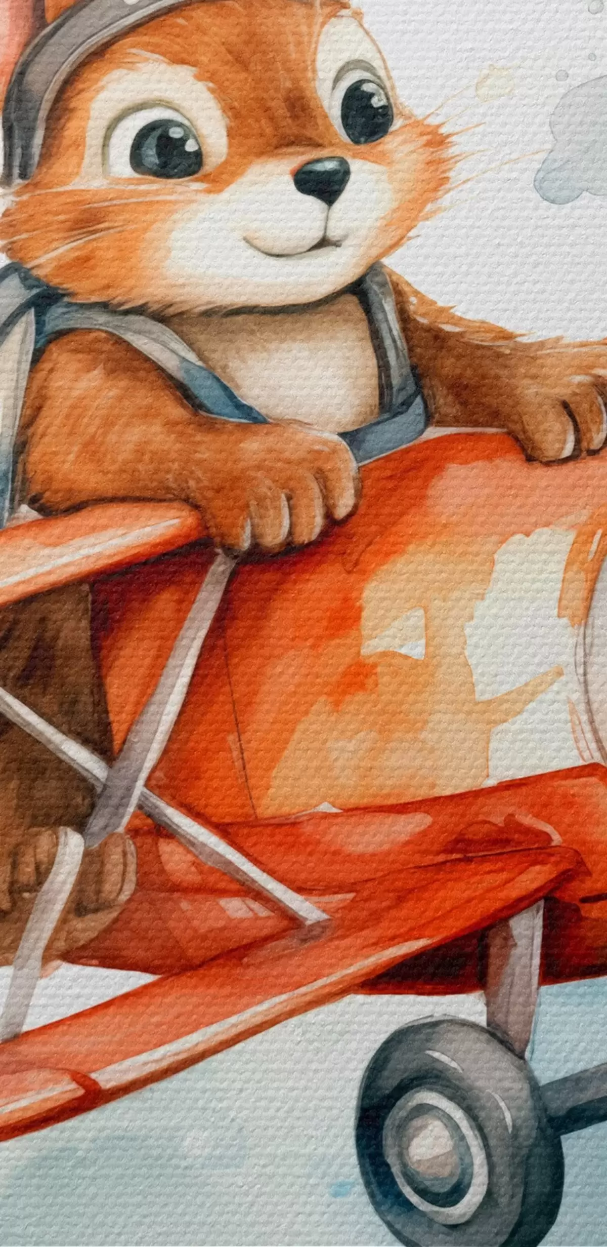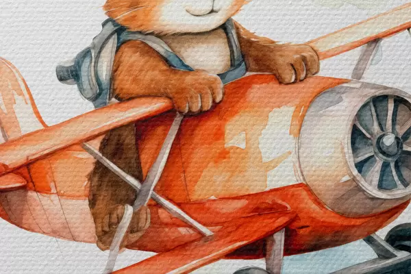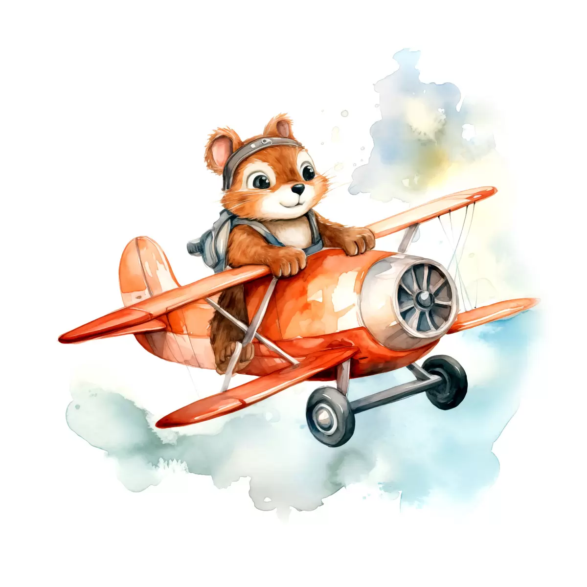 Bild Baby-Eichhörnchen fliegt in einem roten Flugzeug Kinder Illustration Aquarell Nr r39116