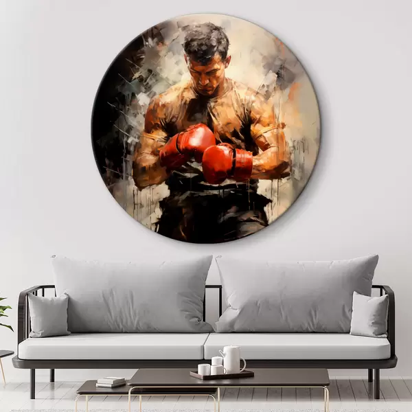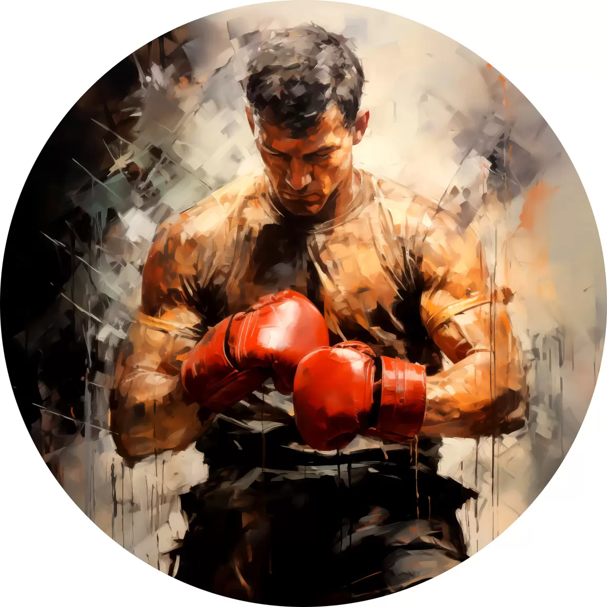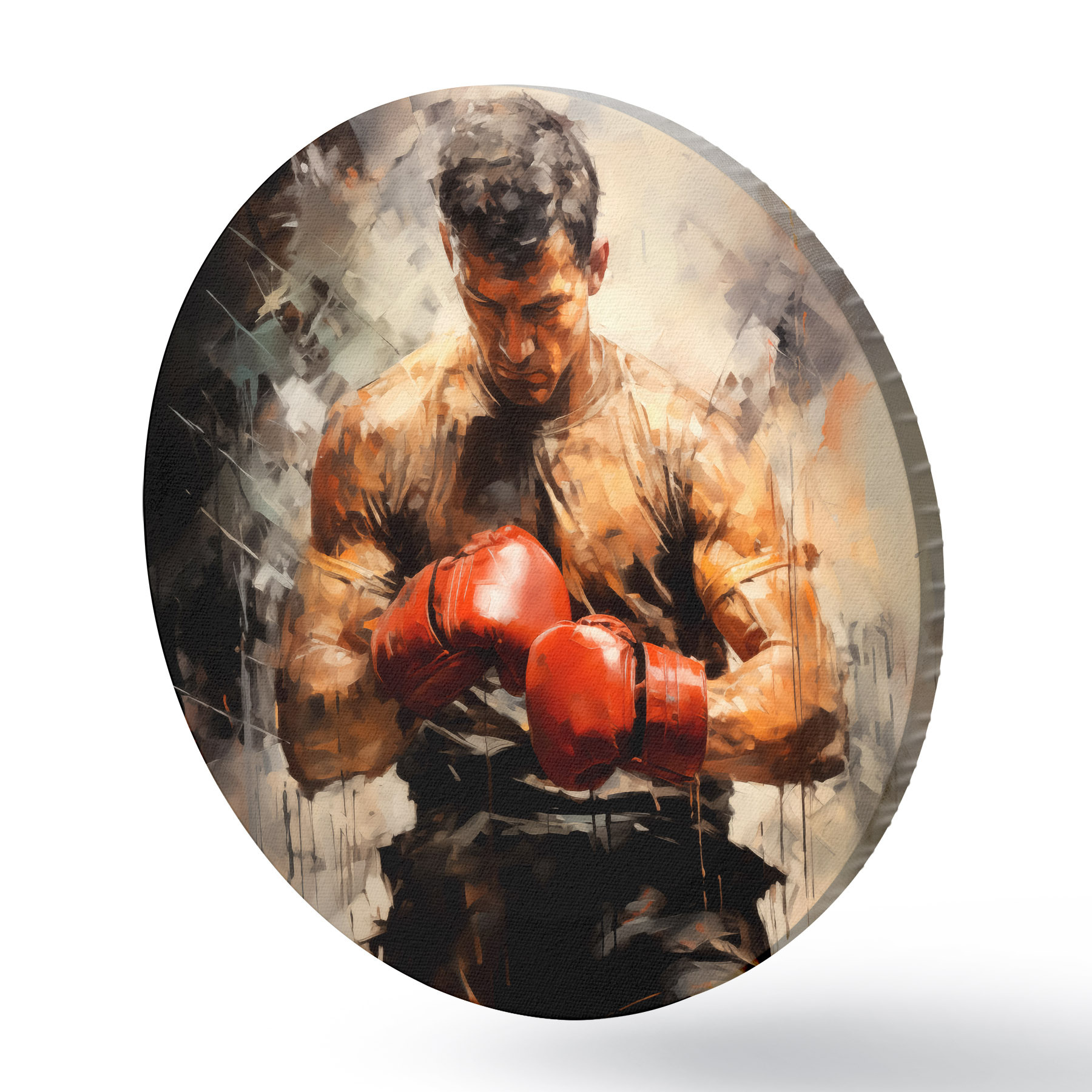Runde Gemälde Boxer in roten Handschuhen Ölgemälde r39180