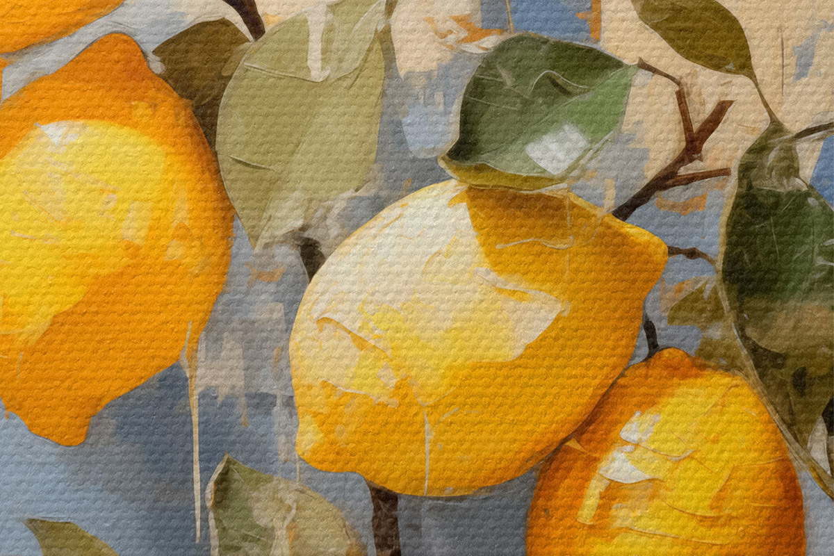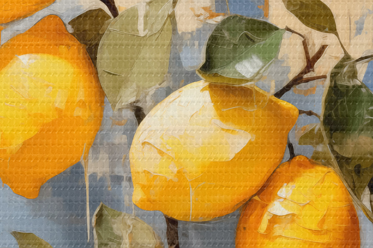Bild Zweig mit reifen Zitronen Ölgemälde abstrakte Kunst, gelb, blau und grün Nr r39186