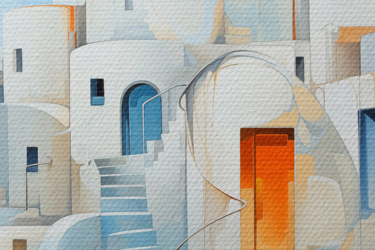 Bild Abstrakte weiße Stadt am Meer, Architektur, Gebäude, blaue Farbe Nr r39188