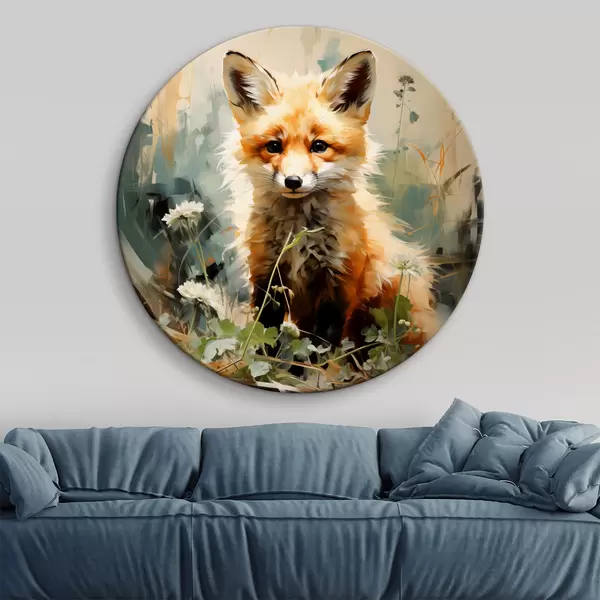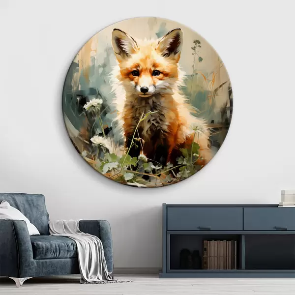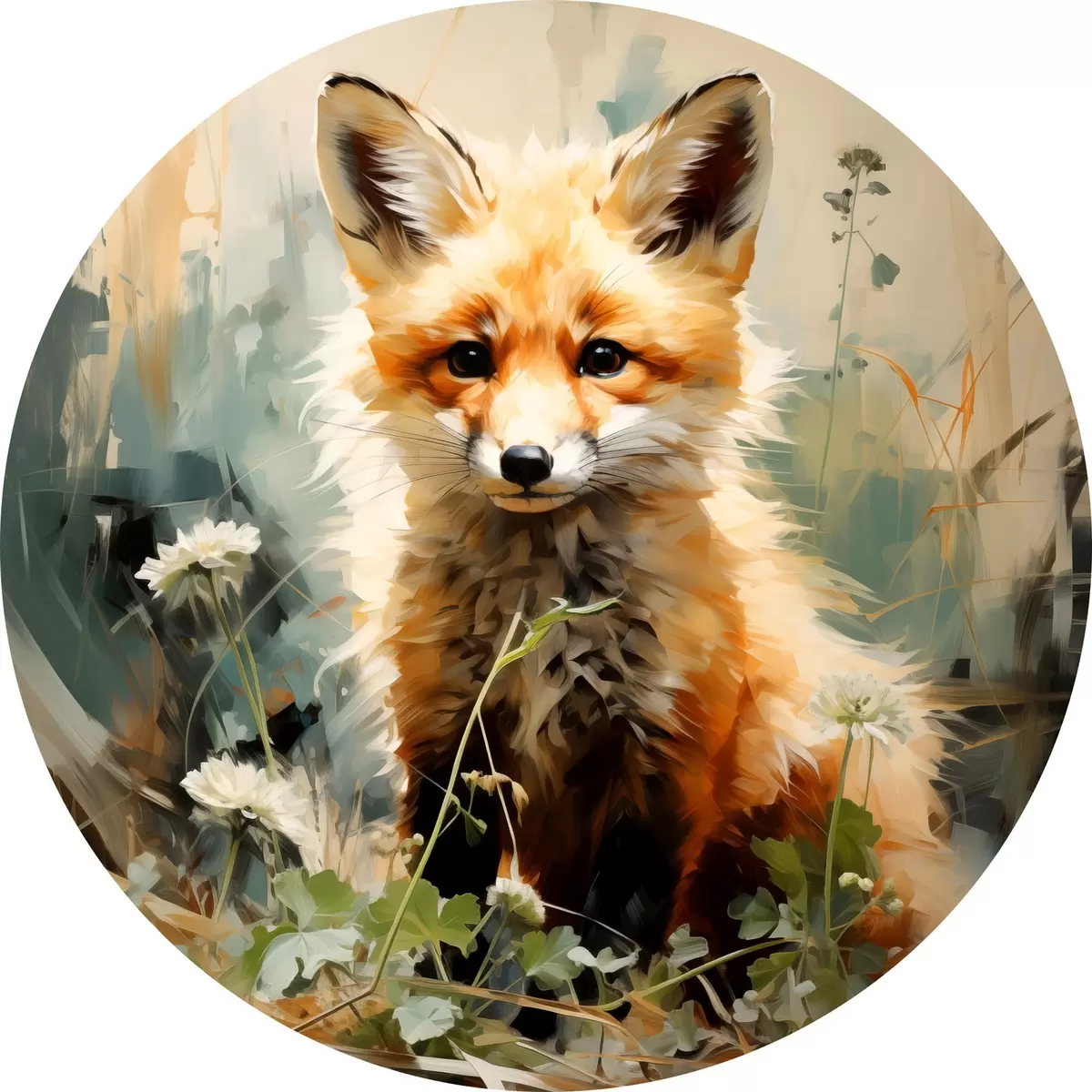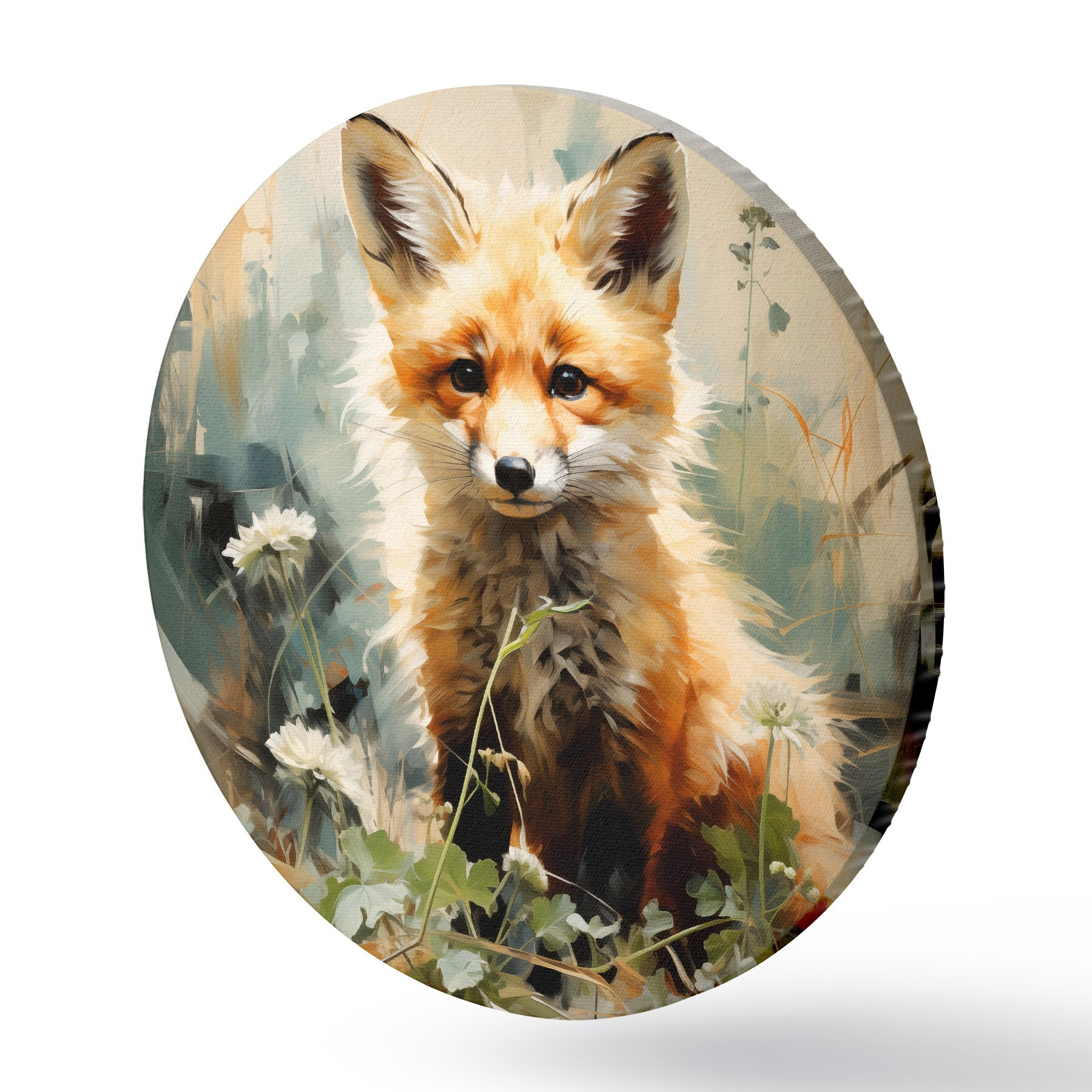 Runde Gemälde Roter Fuchs sitzt im trockenen Gras auf einem grünen Hintergrund Ölgemälde r39191