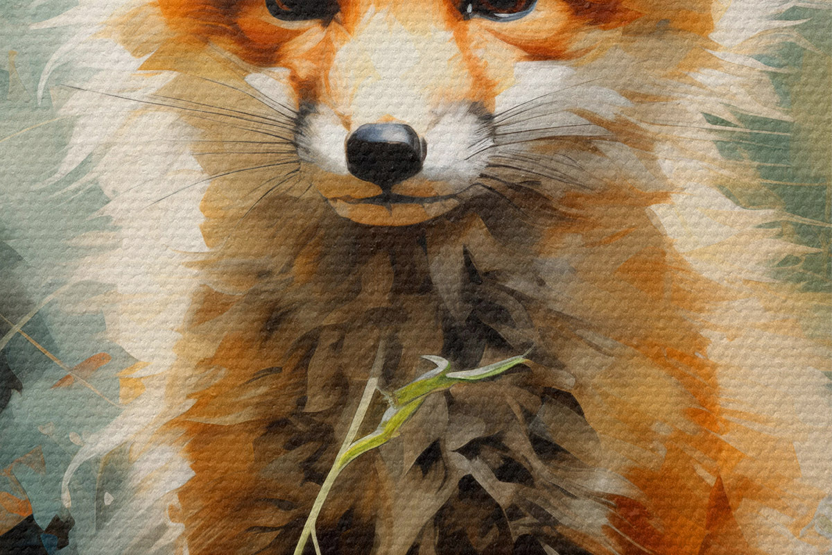 Bild Roter Fuchs sitzt im trockenen Gras auf einem grünen Hintergrund Ölgemälde Nr r39191