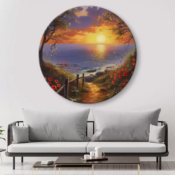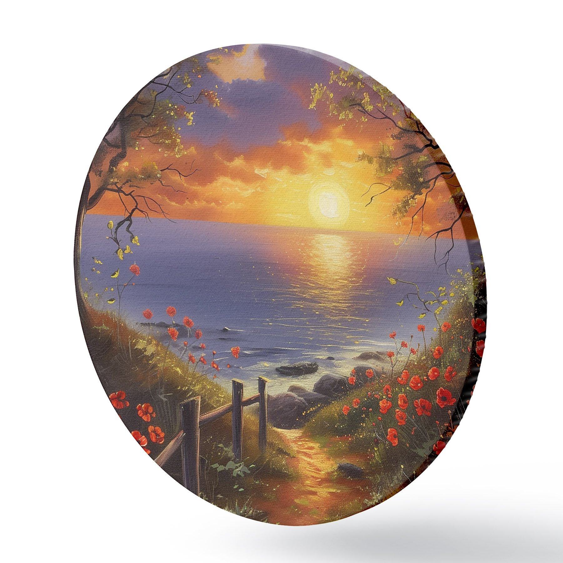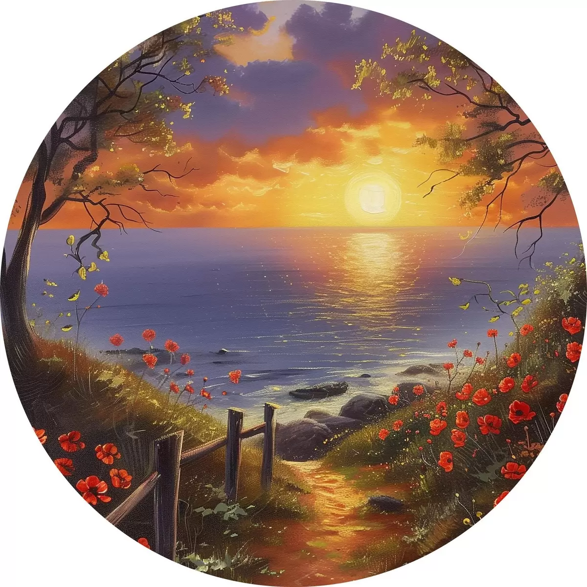 Runde Gemälde Wunderschöner Sonnenuntergang am Wasser r39200