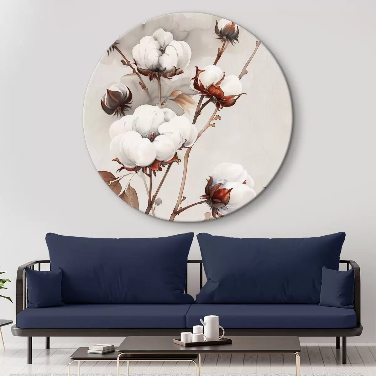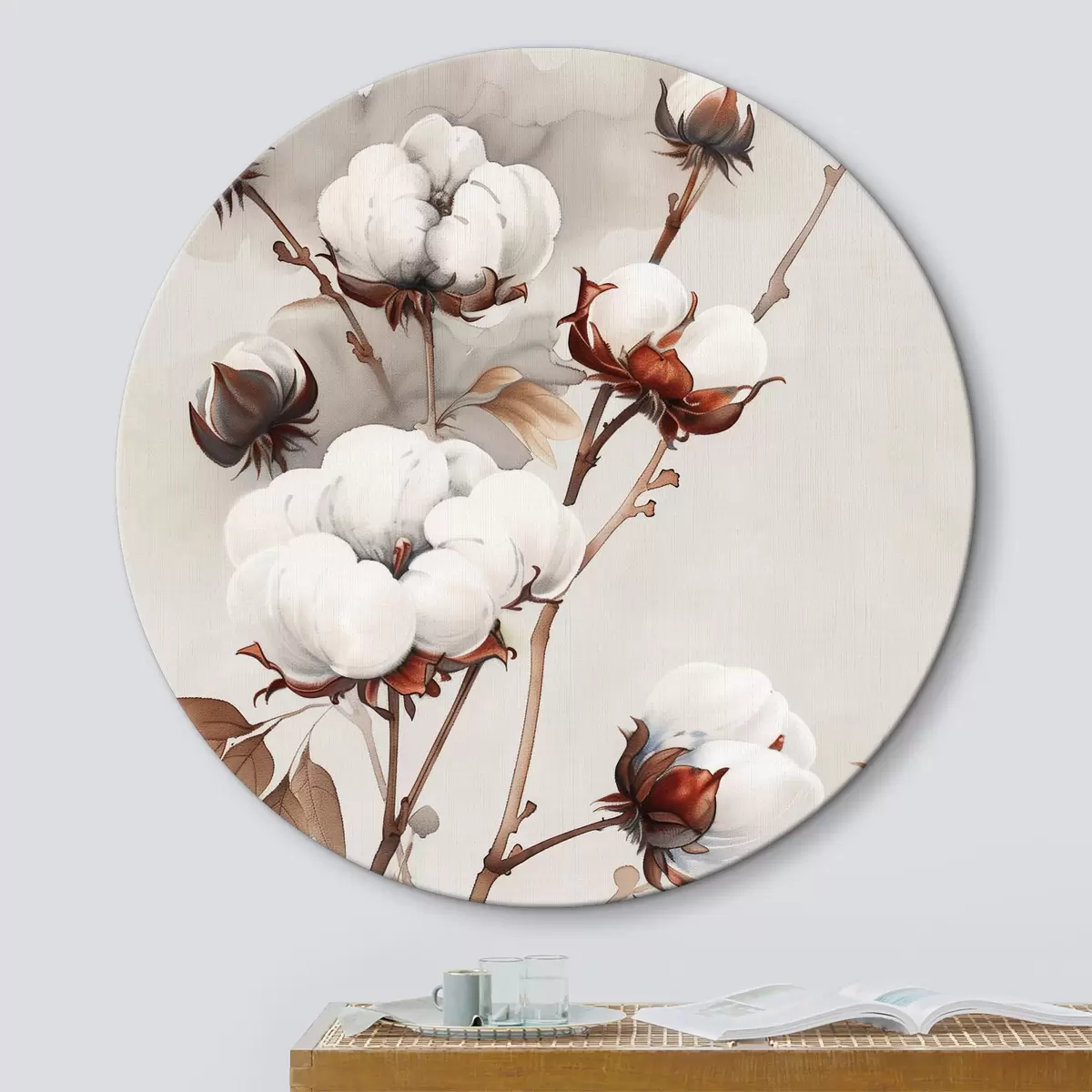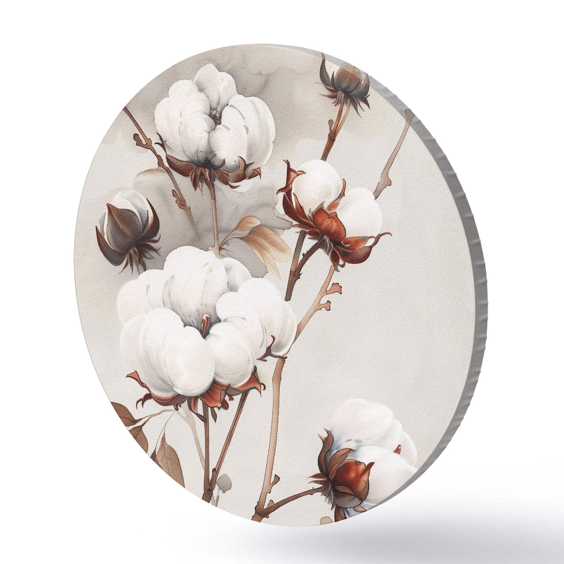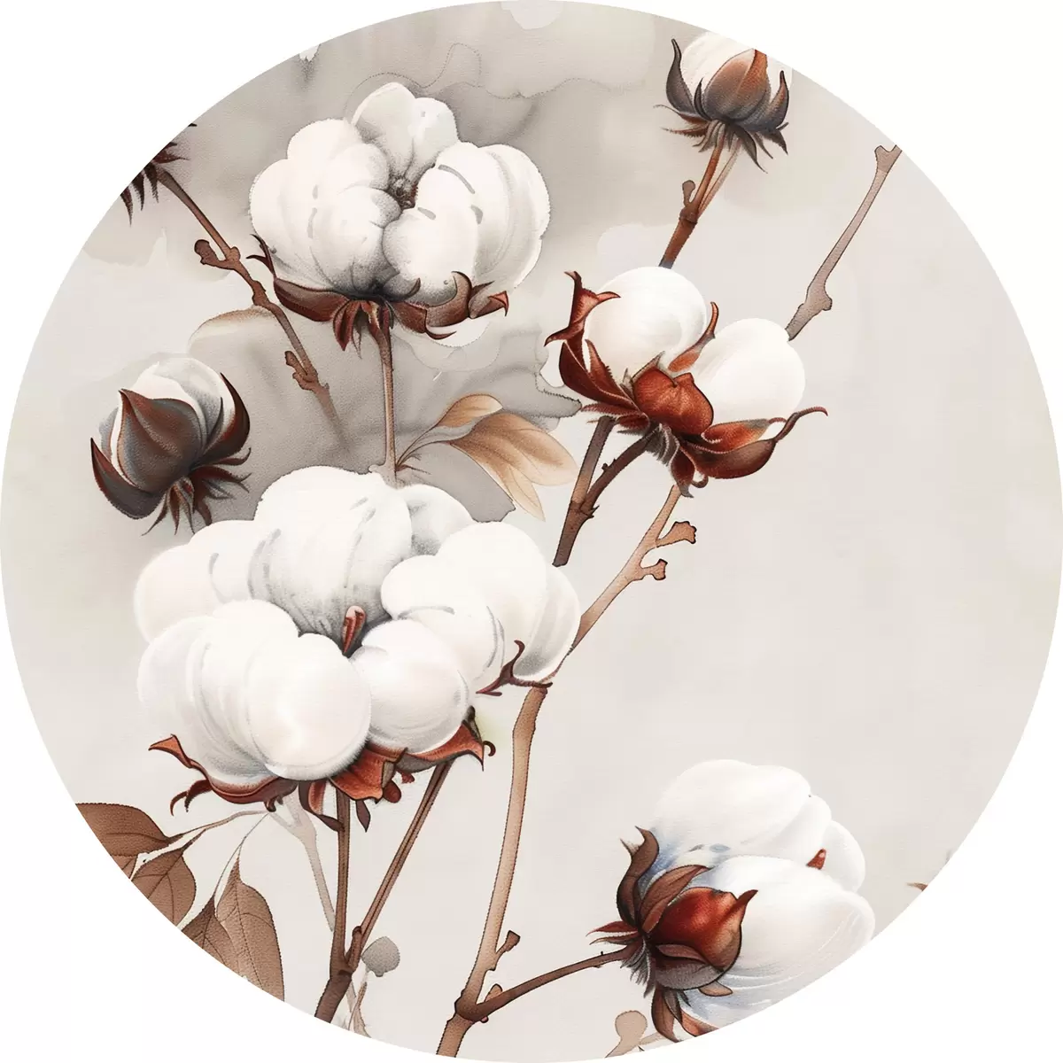 Runde Gemälde Baumwollzweige im Aquarellstil r39215