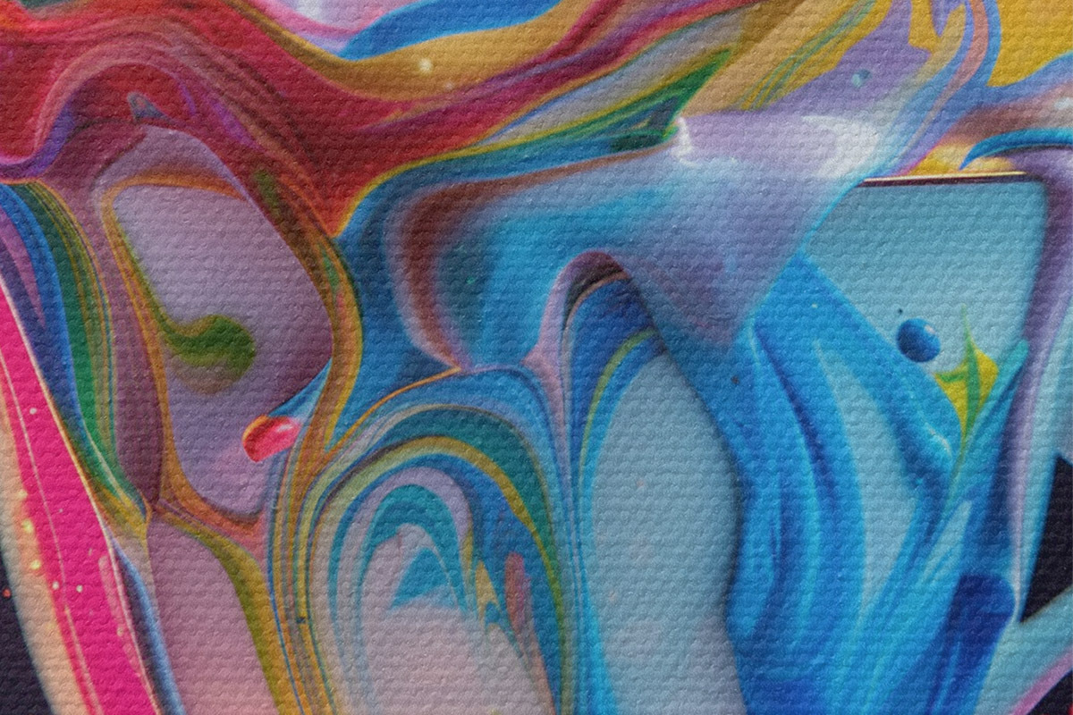 Um die Leinwand auf Keilrahmen zu spannen, ohne das Bild zu beschädigen, verwenden wir ein gespiegeltes Bild.