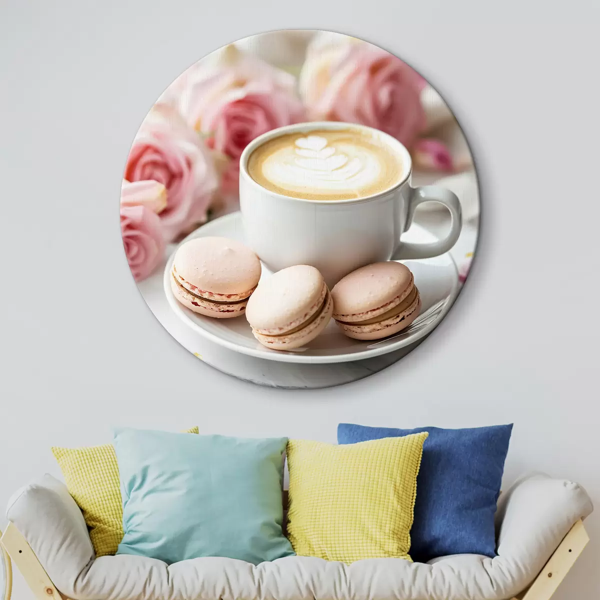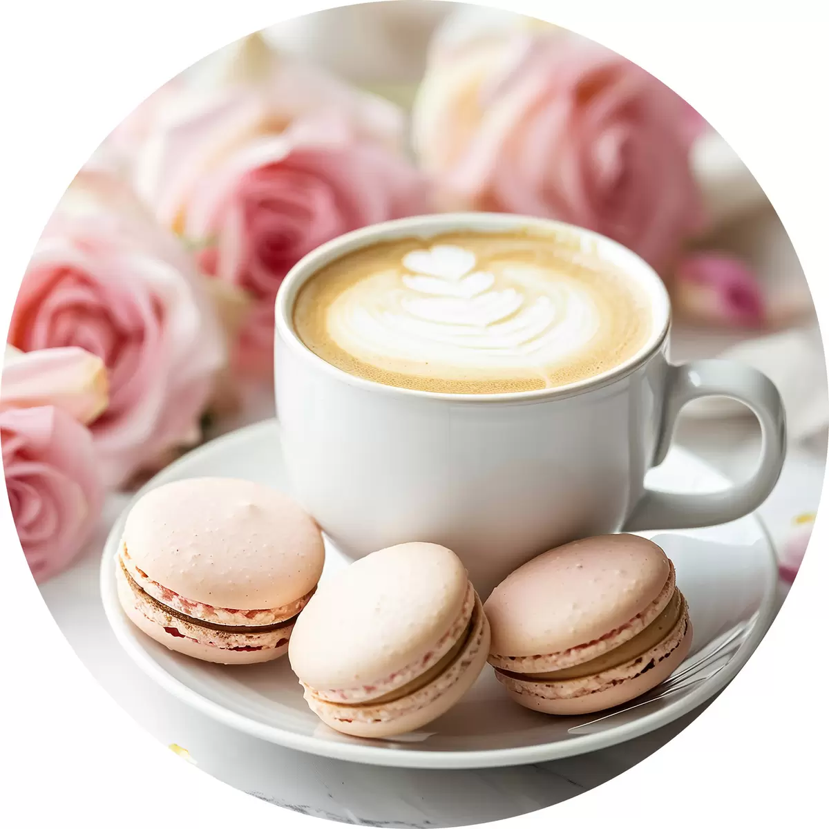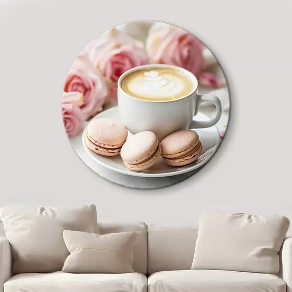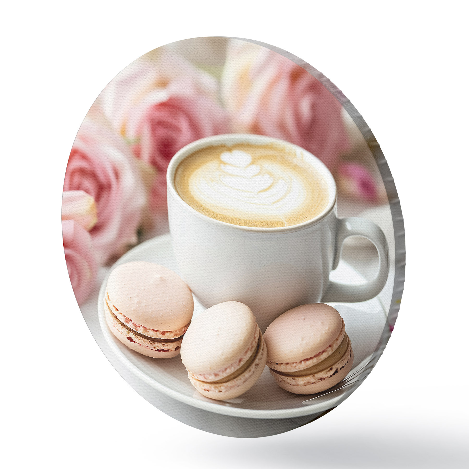 Runde Gemälde Tasse Kaffee auf einem zarten floralen Hintergrund r39232