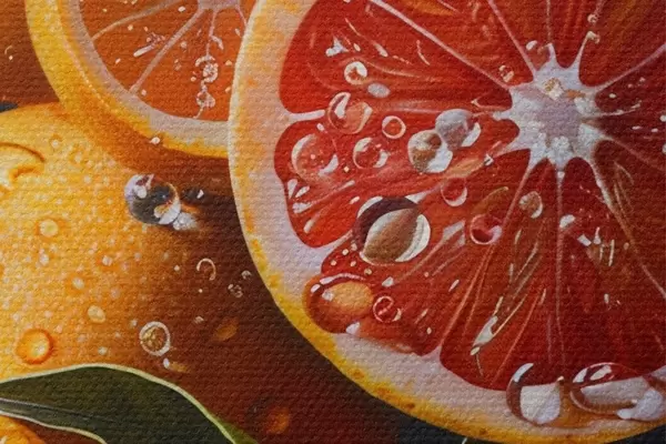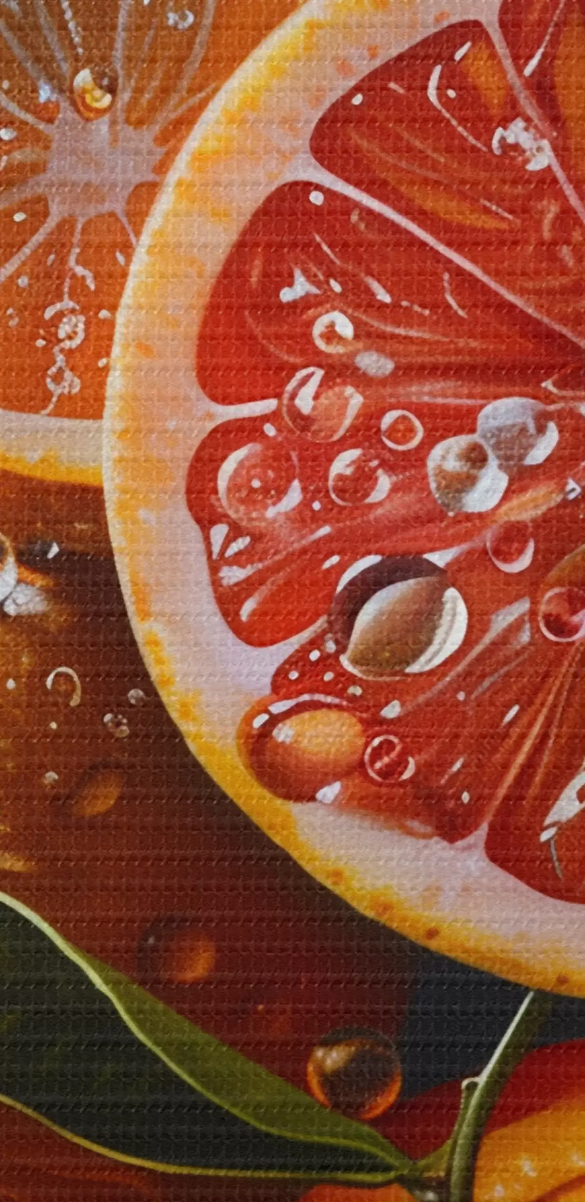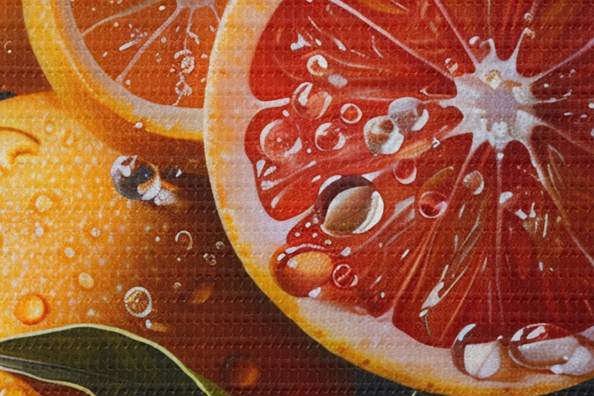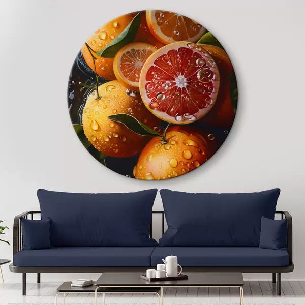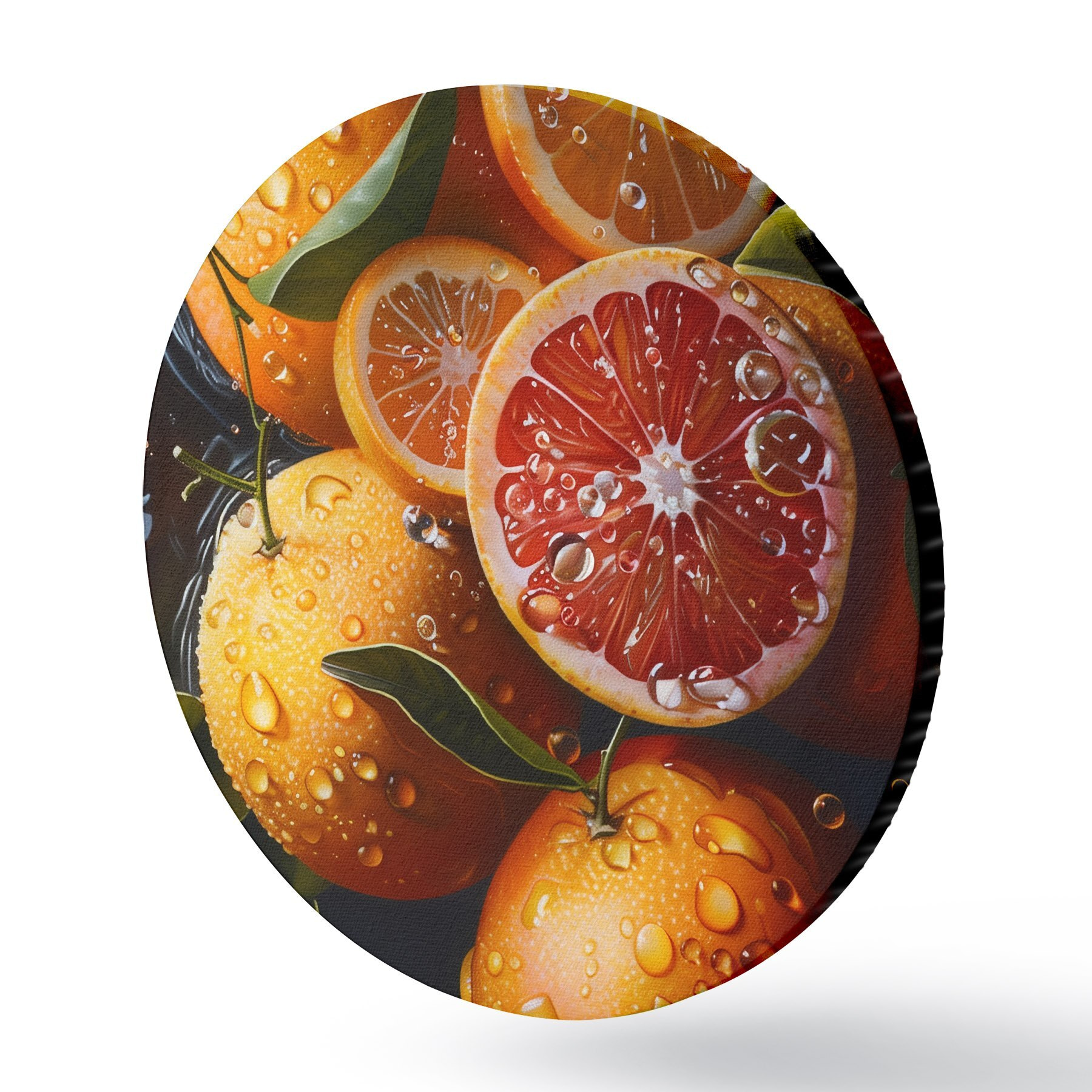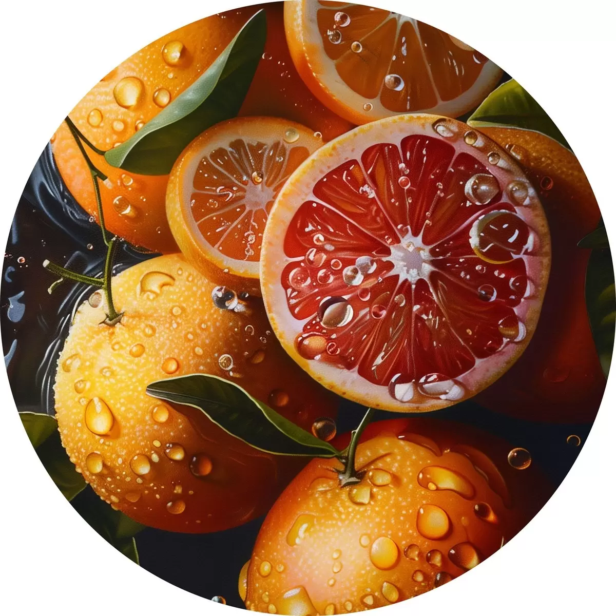 Runde Gemälde Orangen und Grapefruit auf dunklem Hintergrund r39238