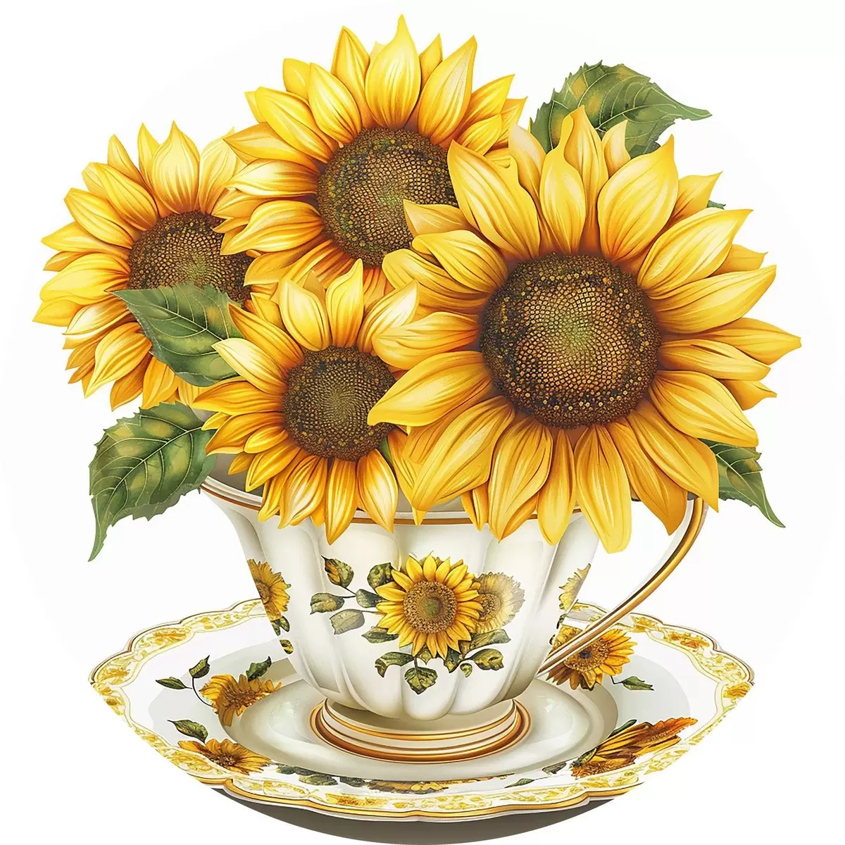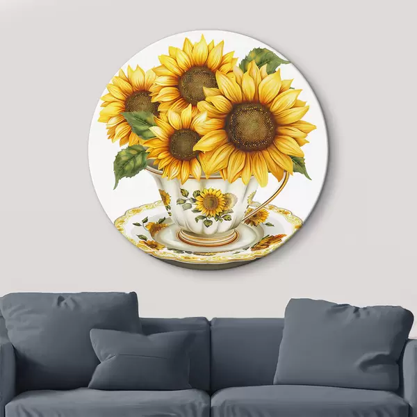 Runde Gemälde Sonnenblumen in einer Tasse r39241