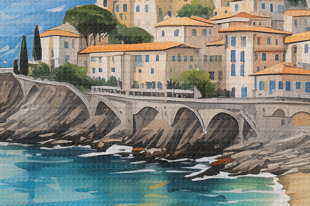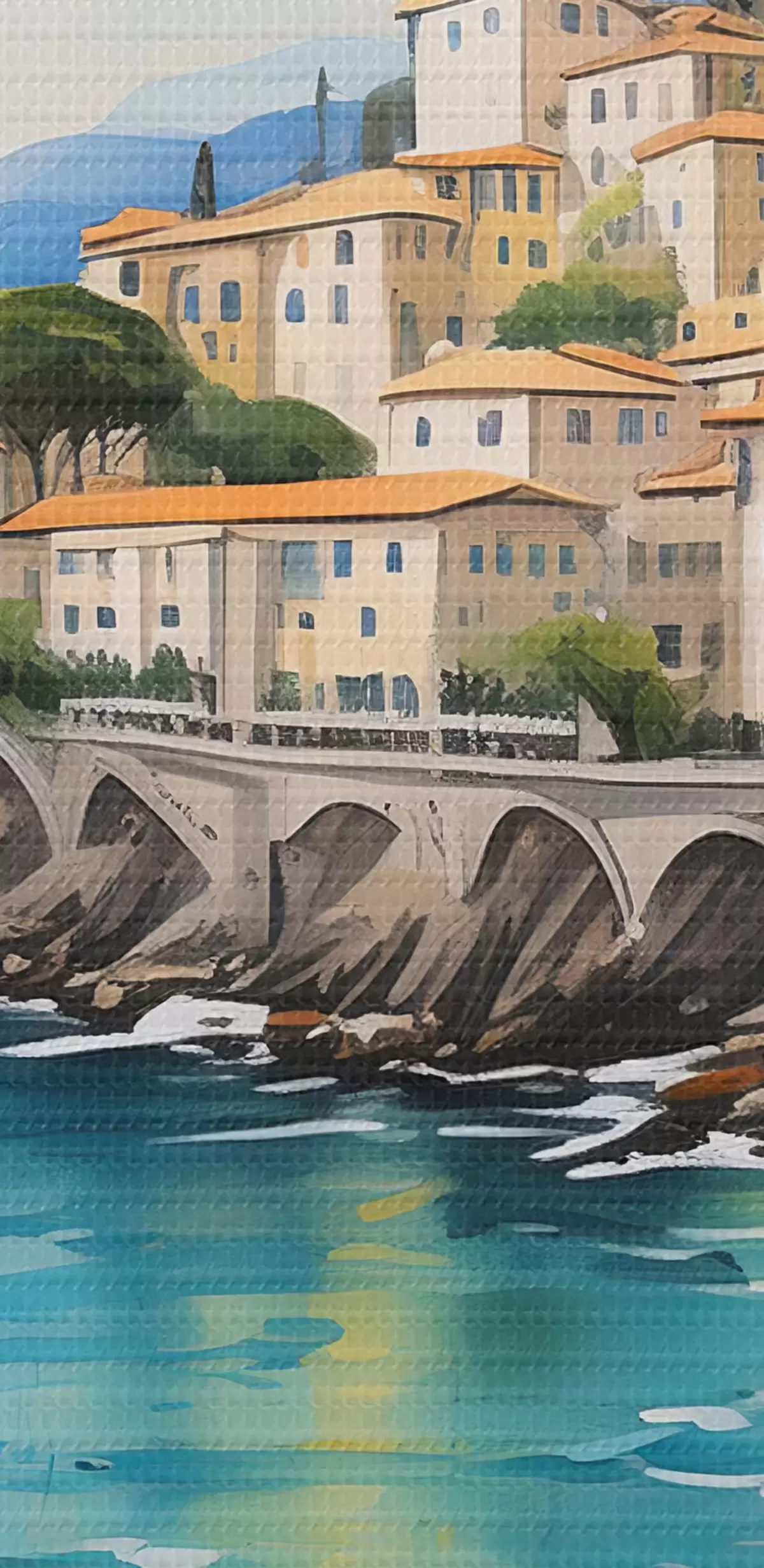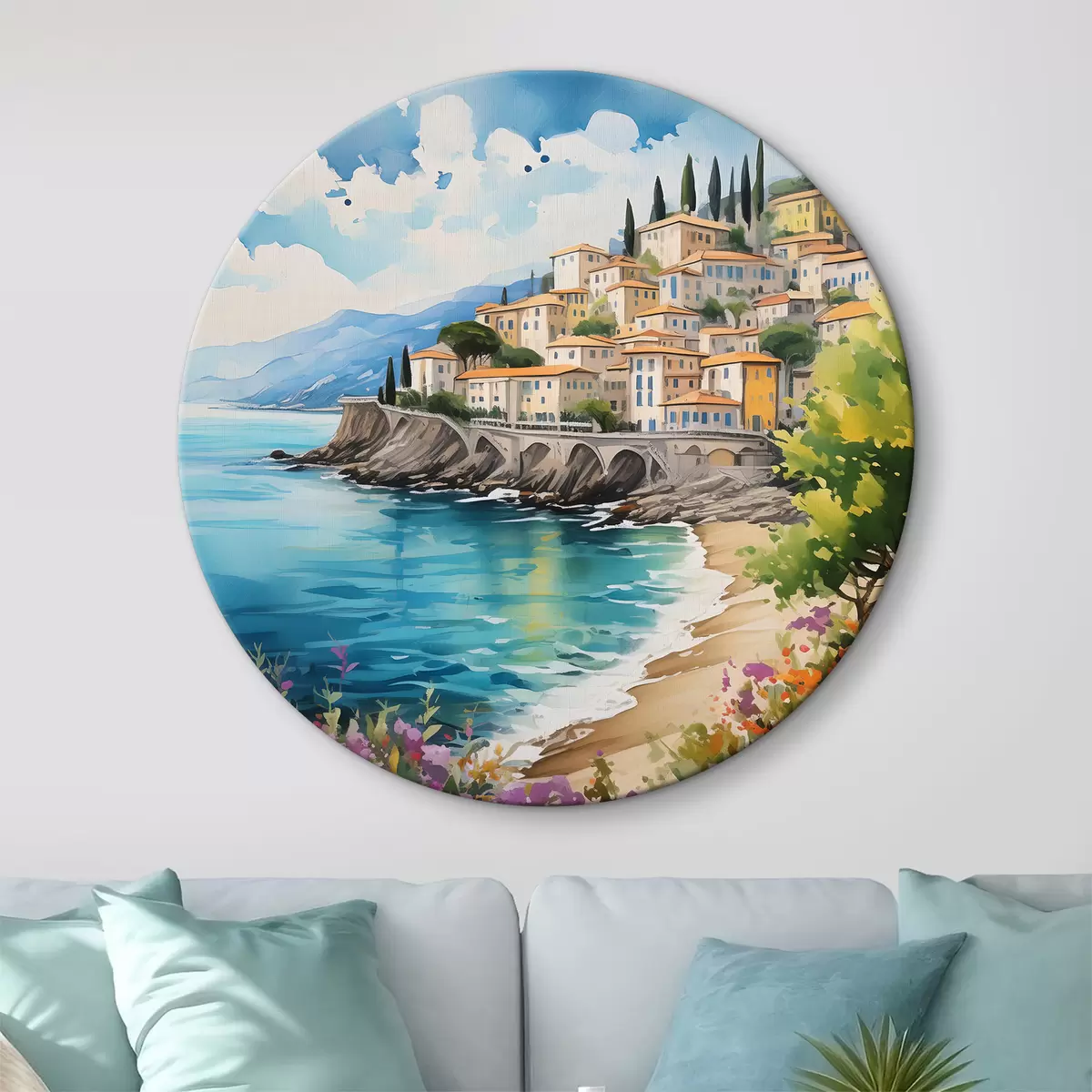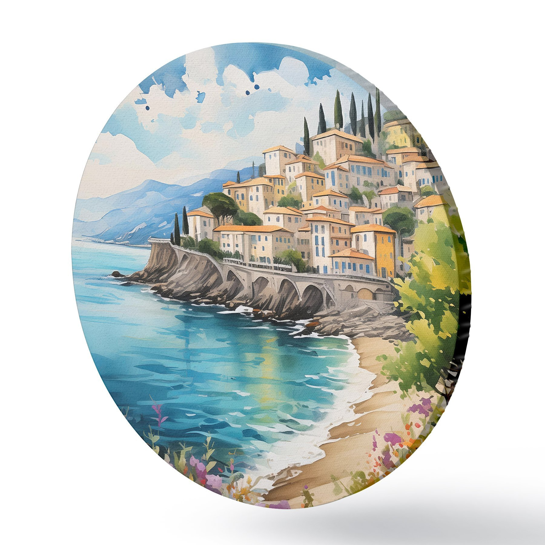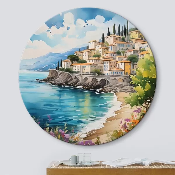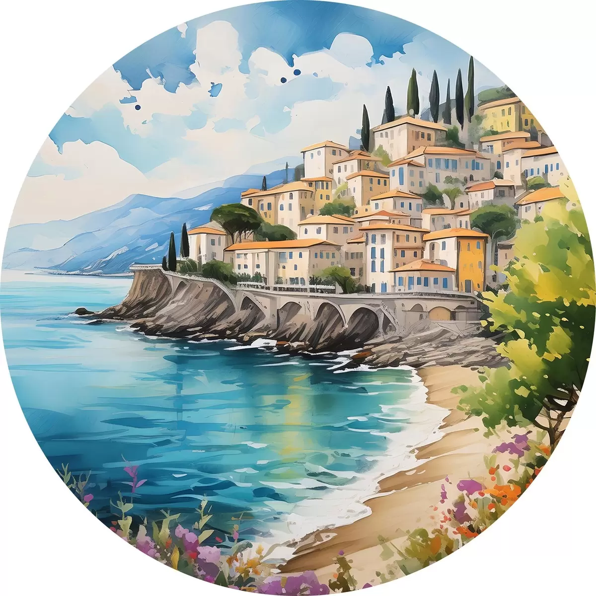 Runde Gemälde malerische Küste in einer italienischen Stadt r39298