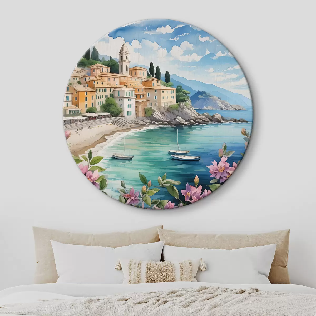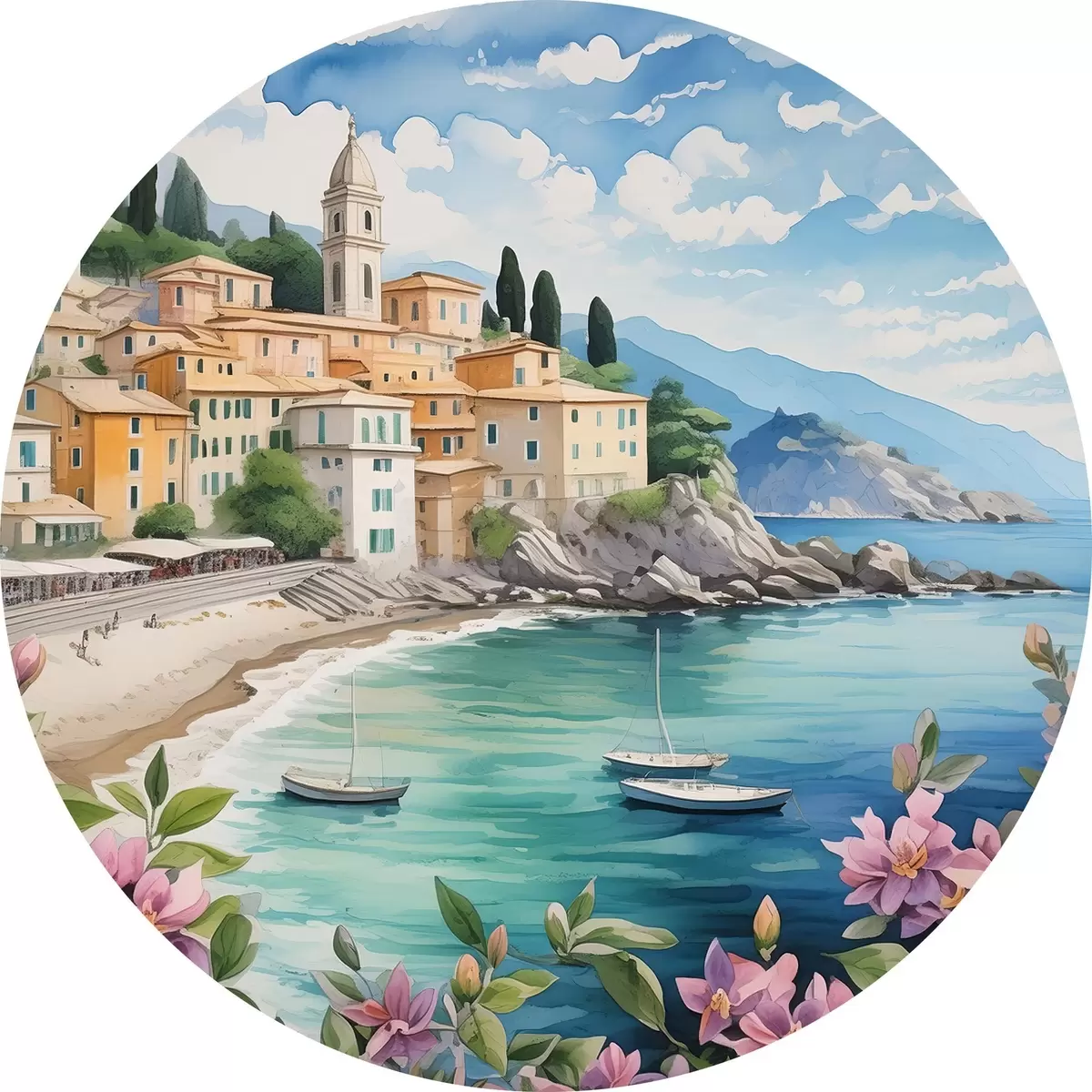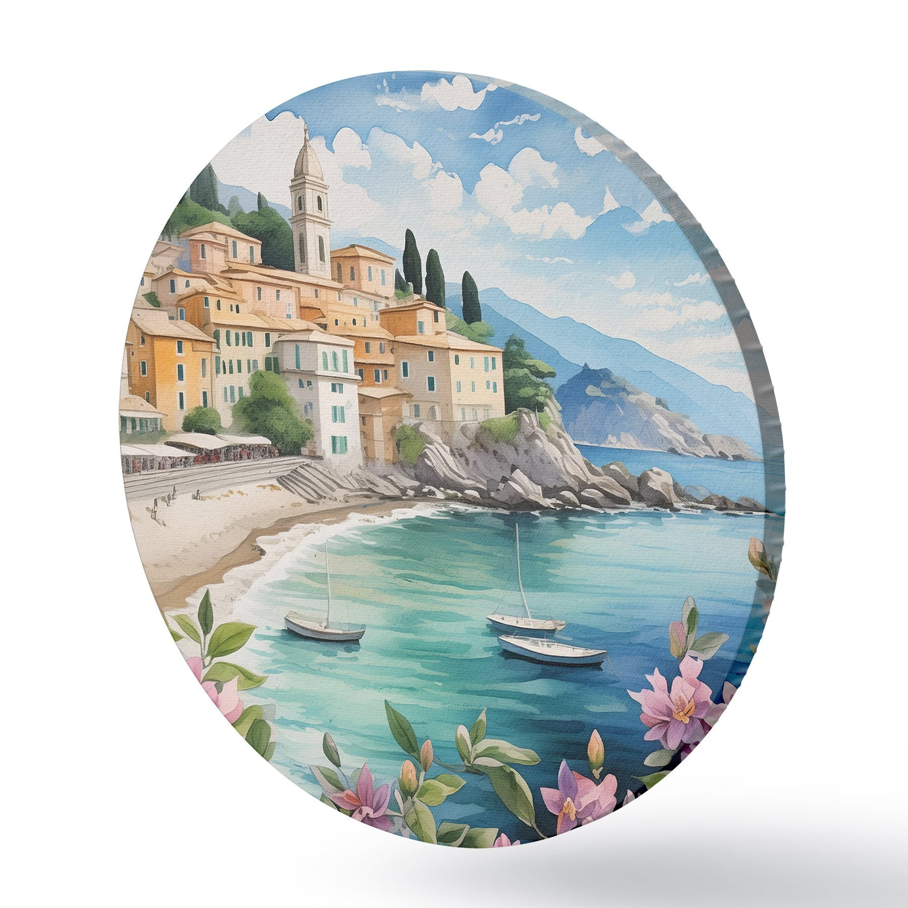Runde Gemälde eine Stadt am Meer im Sommer r39299