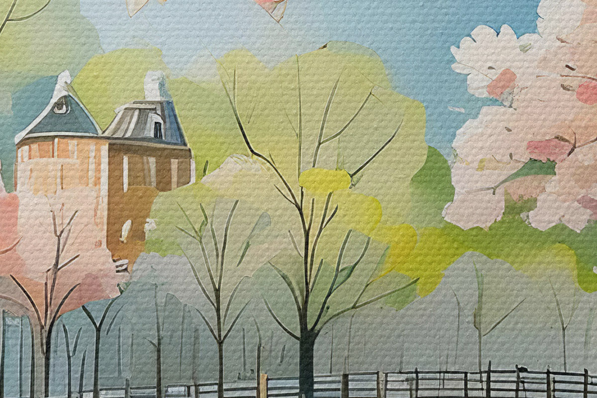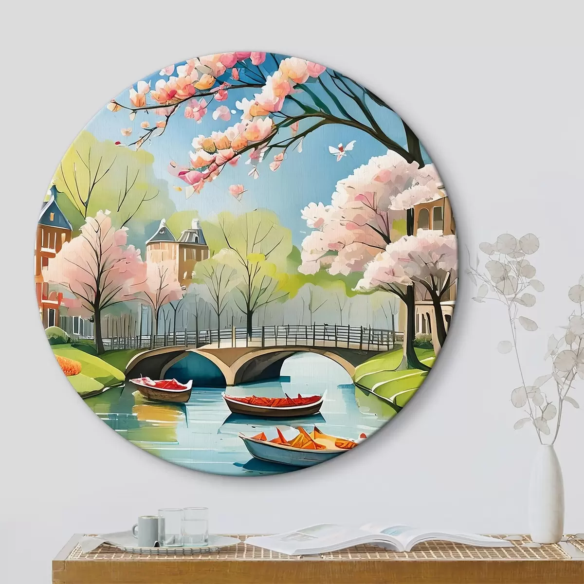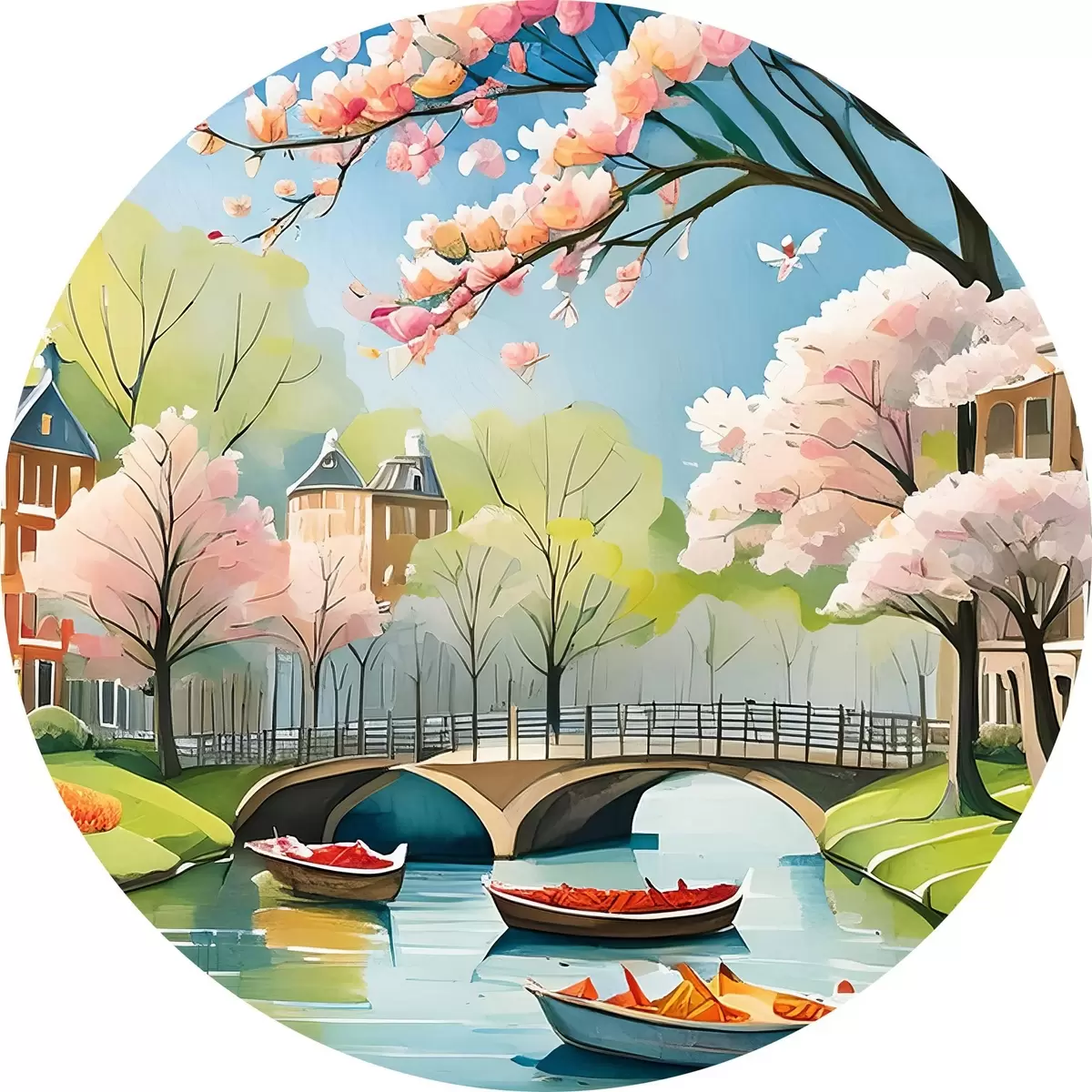 Runde Gemälde blühende Bäume in Amsterdam im Frühling r39301